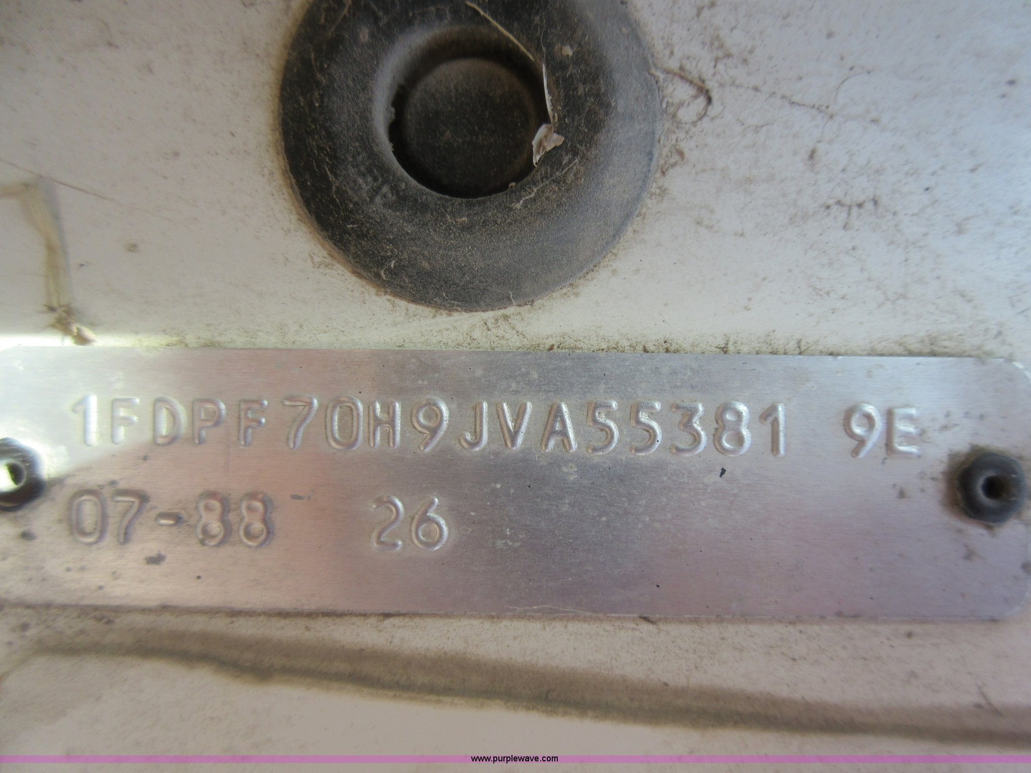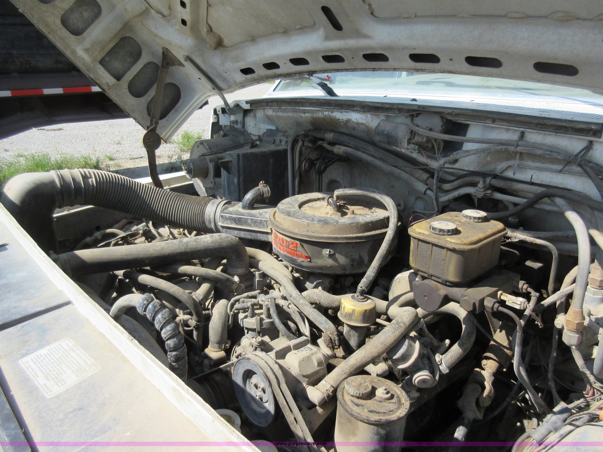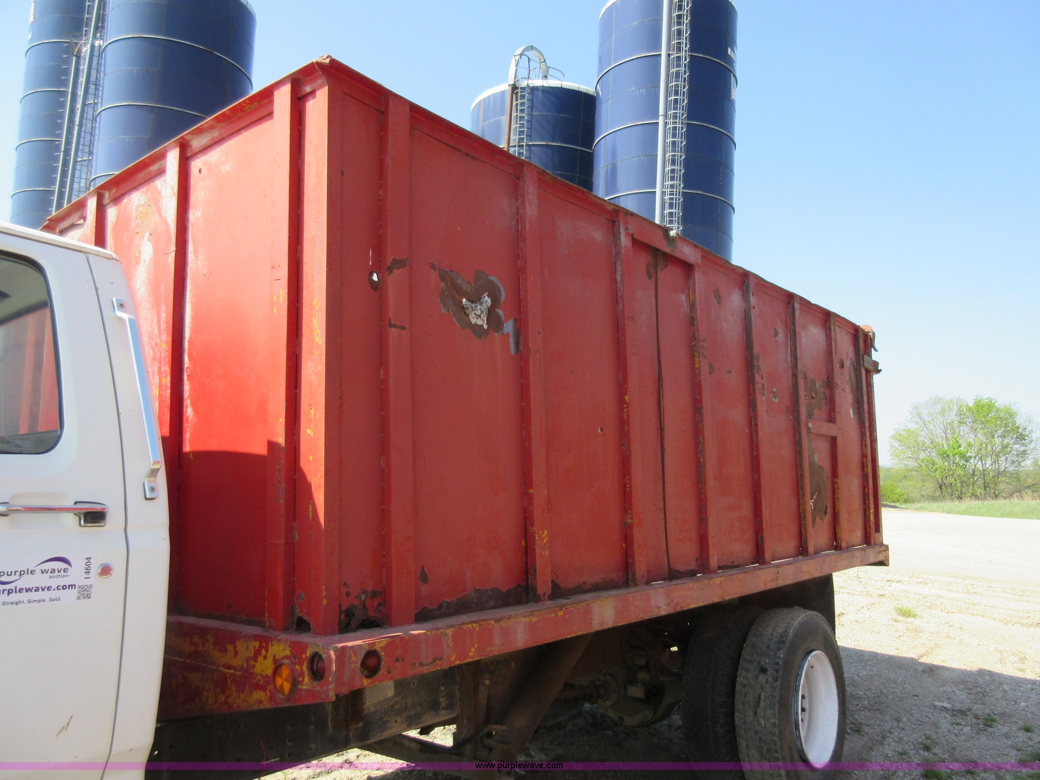 Purple Wave is selling a used Grain Truck in Missouri. This item is a 1988 Ford F700 grain truck with the following: 15,629 miles on odometer, Ford 6.1L V8 gas engine, Five speed manual transmission, Two speed rear end, Heat, 16'L x 8'W x 5'H dump bed, PTO, Spring suspension, Hydraulic brakes, 207" wheelbase, 11R22.5 tires, Flat tire, Unknown operating condition