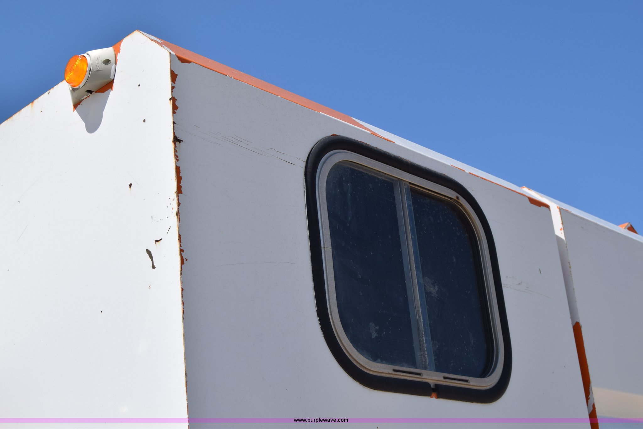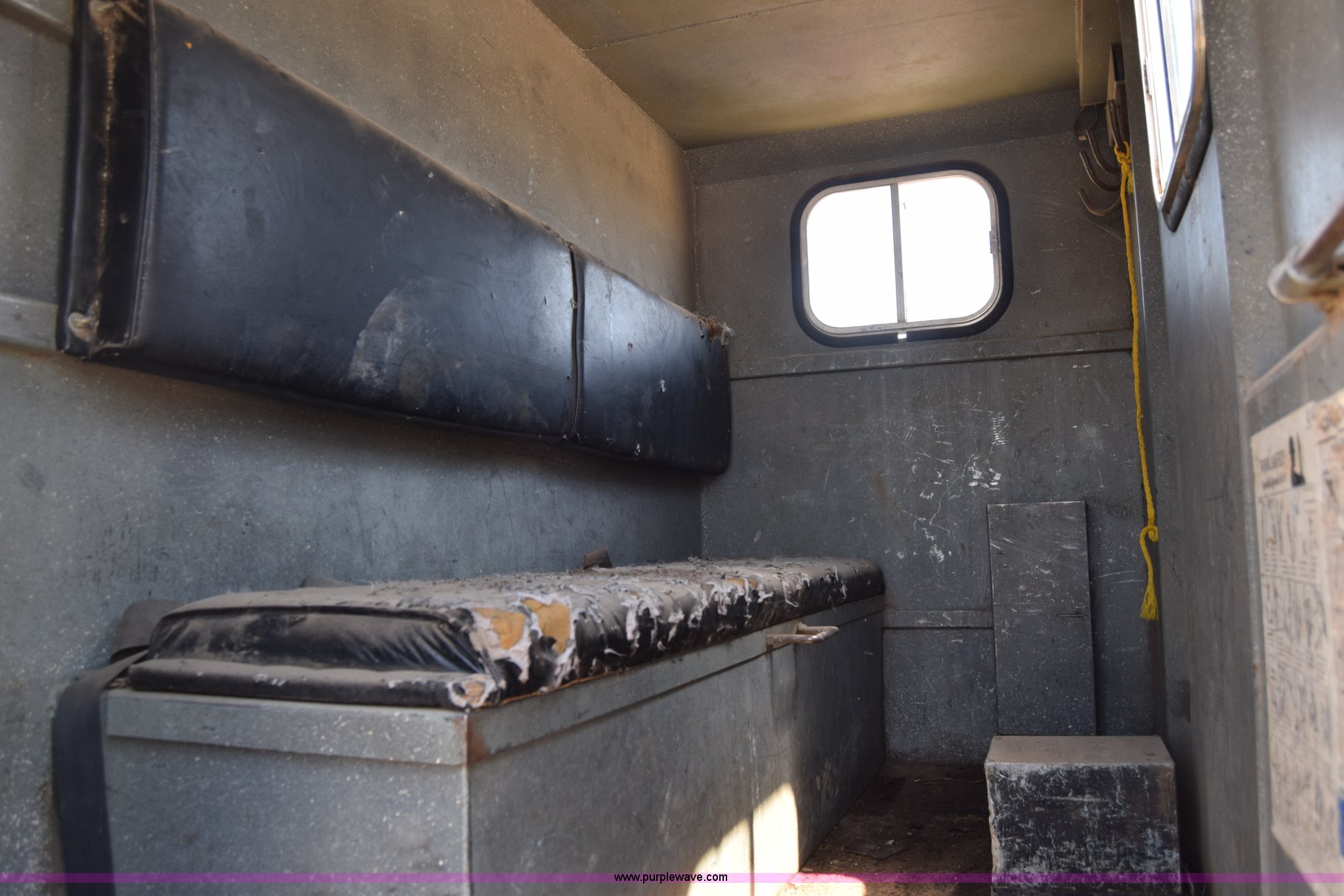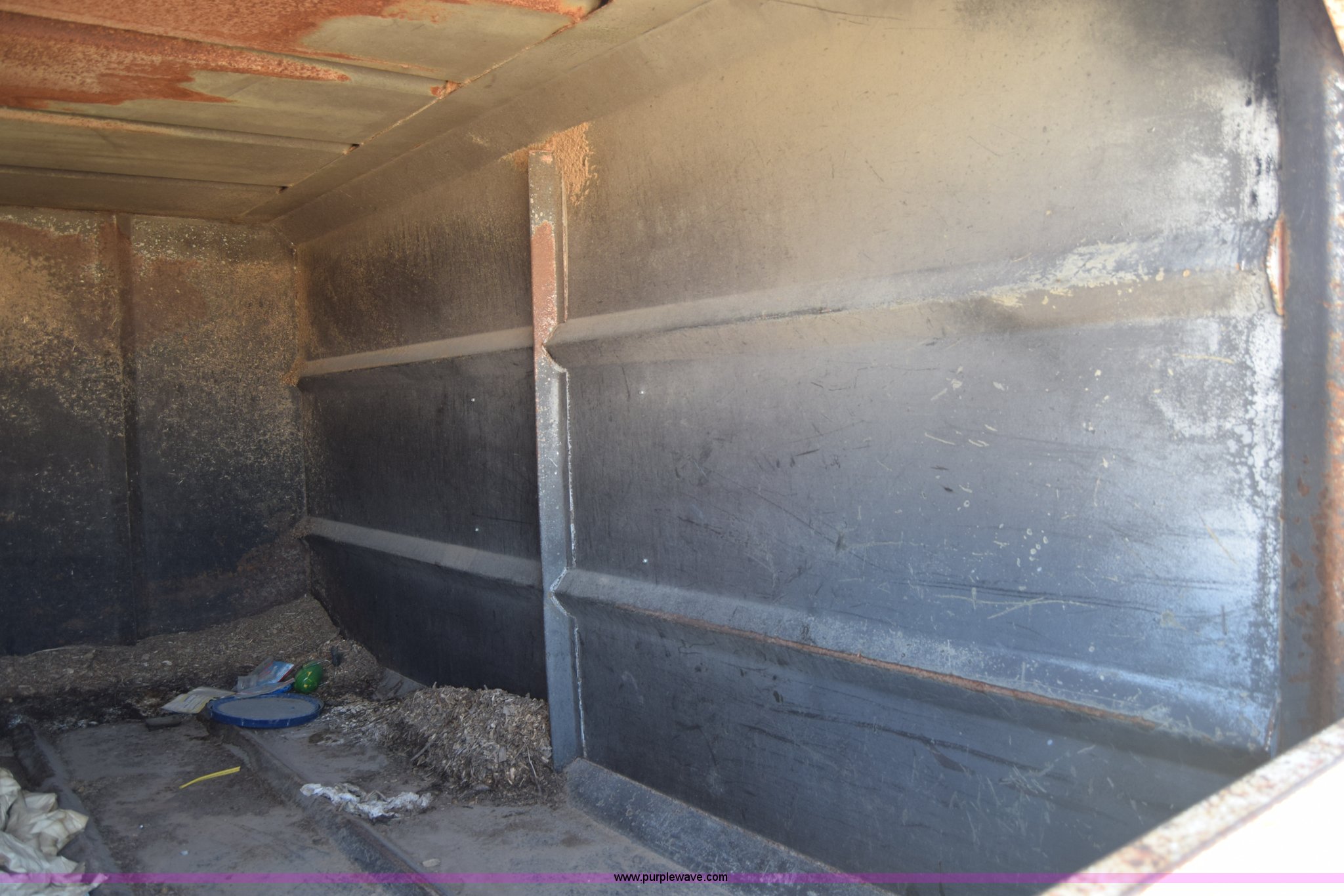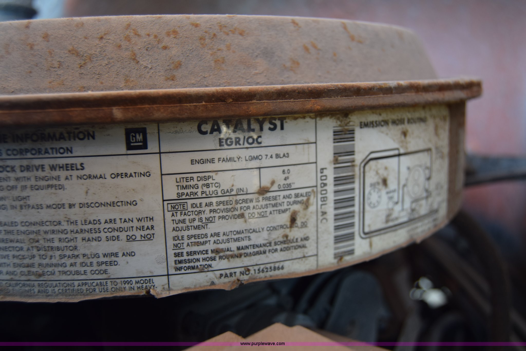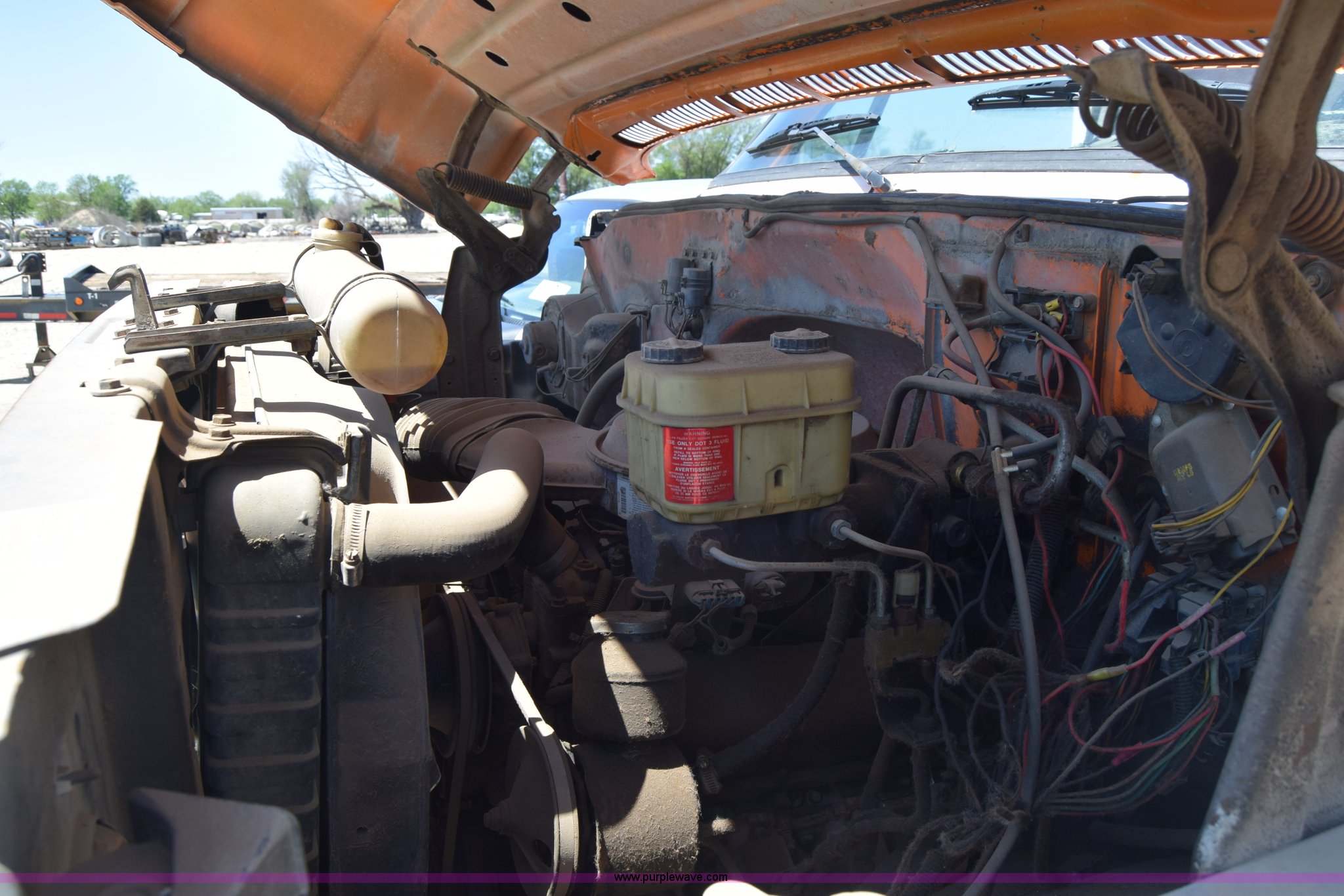 Purple Wave is selling a used Box Truck in Kansas. This item is a 1990 GMC TopKick chipper truck with the following: 27,103 miles on odometer, Actual mileage unknown, 6.0L V8 gas engine, Four speed manual transmission, Heat, Manual windows and locks, Cloth interior, Muncie PTO, 14'8"L x 7'9"W x 5'H chipper bed, Side storage, Pintle hitch ball hitch combo, 295/75R22.5 tires, Dash damaged, Rust