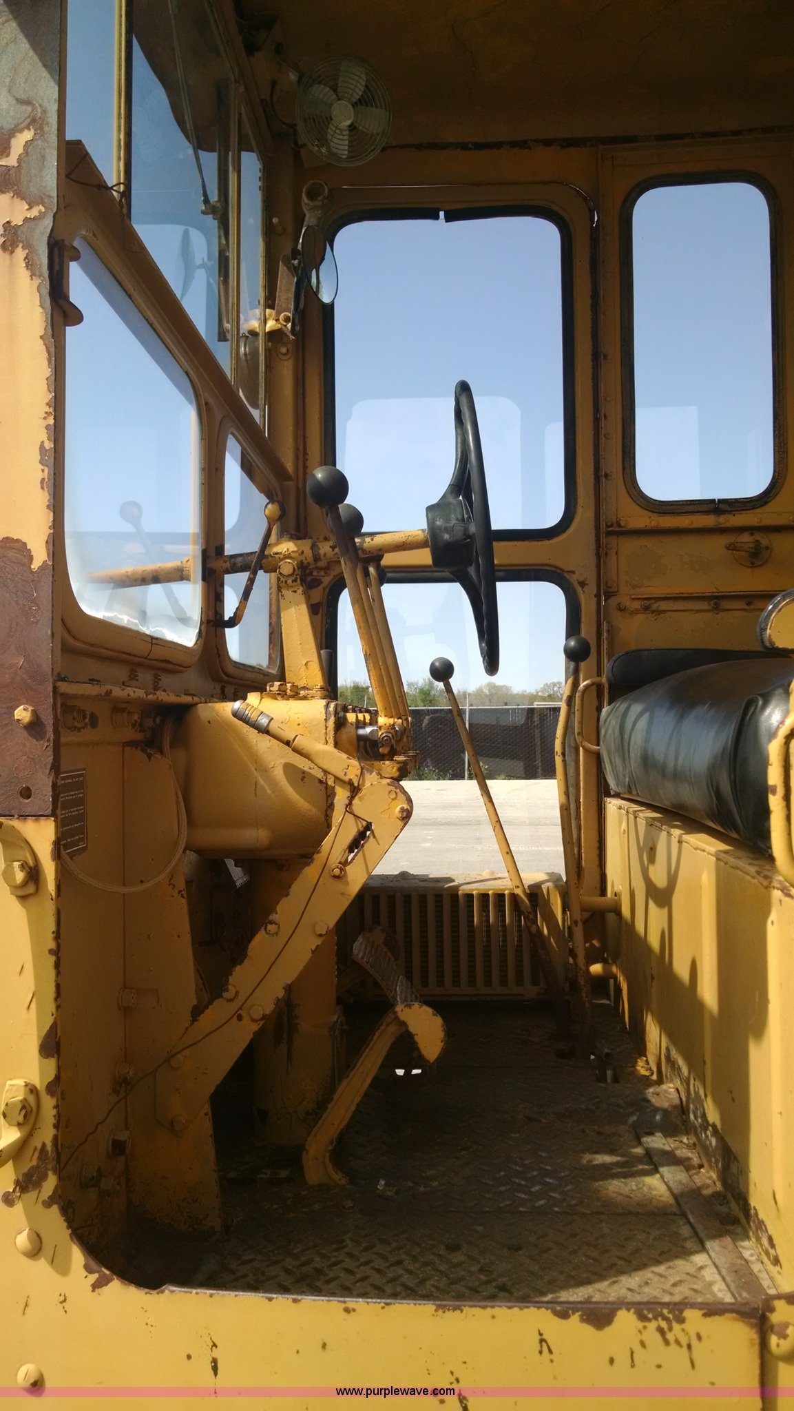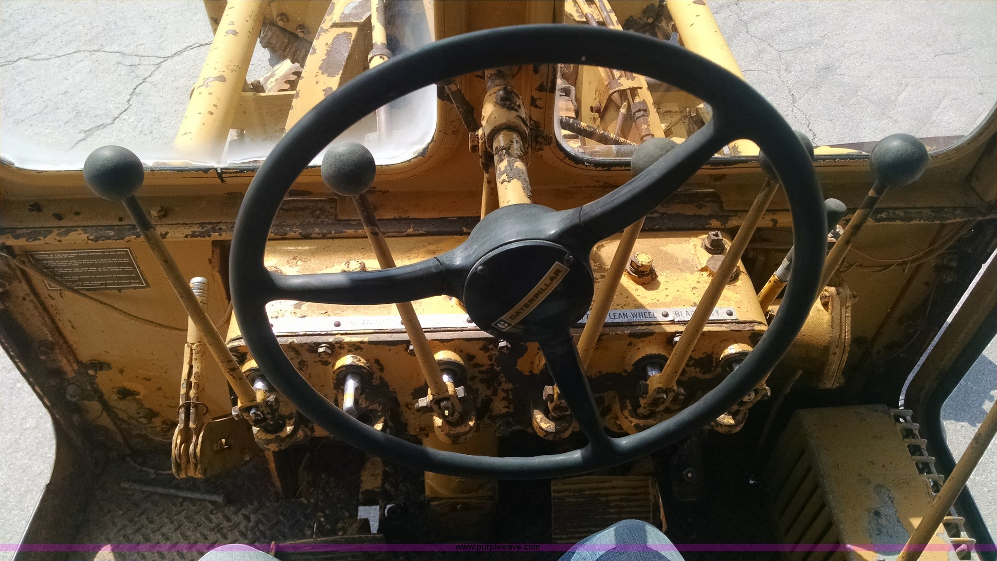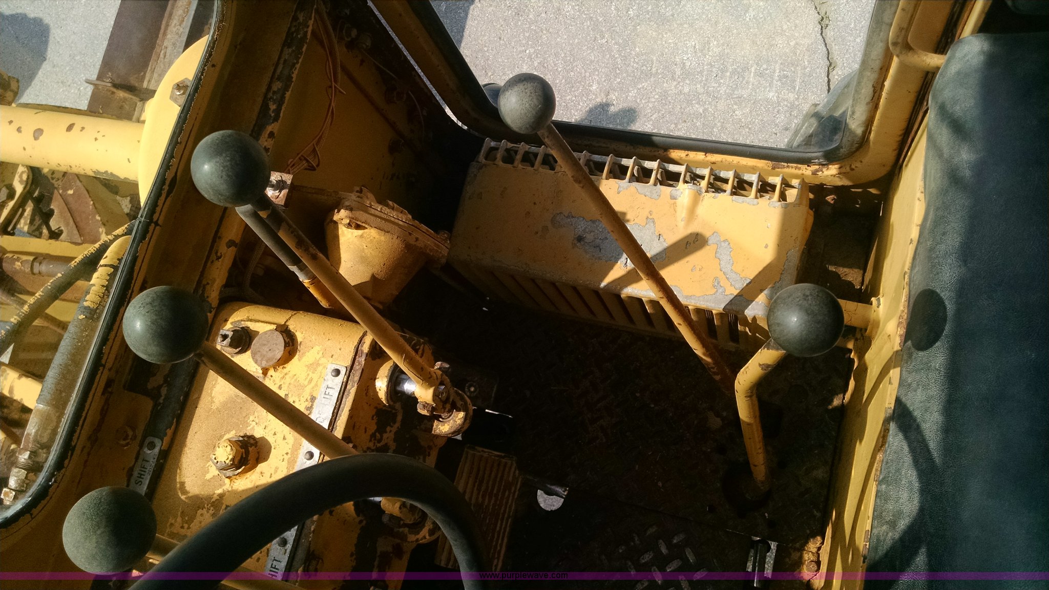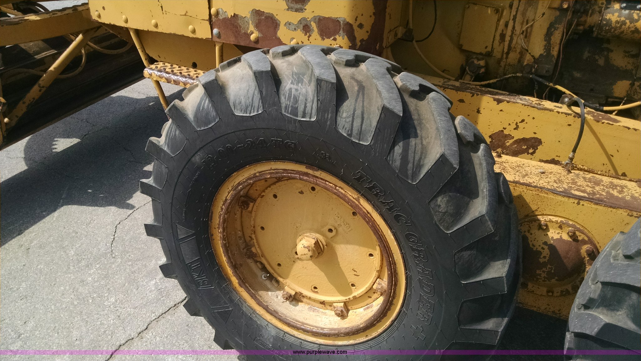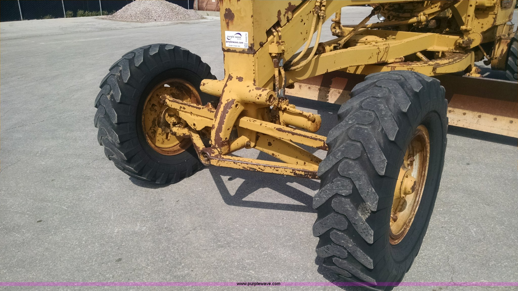 Purple Wave is selling a used Motor Grader in Missouri. This item is a 1968 Caterpillar 112E motor grader with the following: 6,308 hours on meter, Caterpillar four cylinder diesel engine, Direct-drive transmission, 6F-2R gears, Enclosed cab, Front and rear work lights, Moldboard, Side shift, Rigid frame, Pin hitch, 13-24 tires, Recently replaced cutting edges, Serial 91G765
