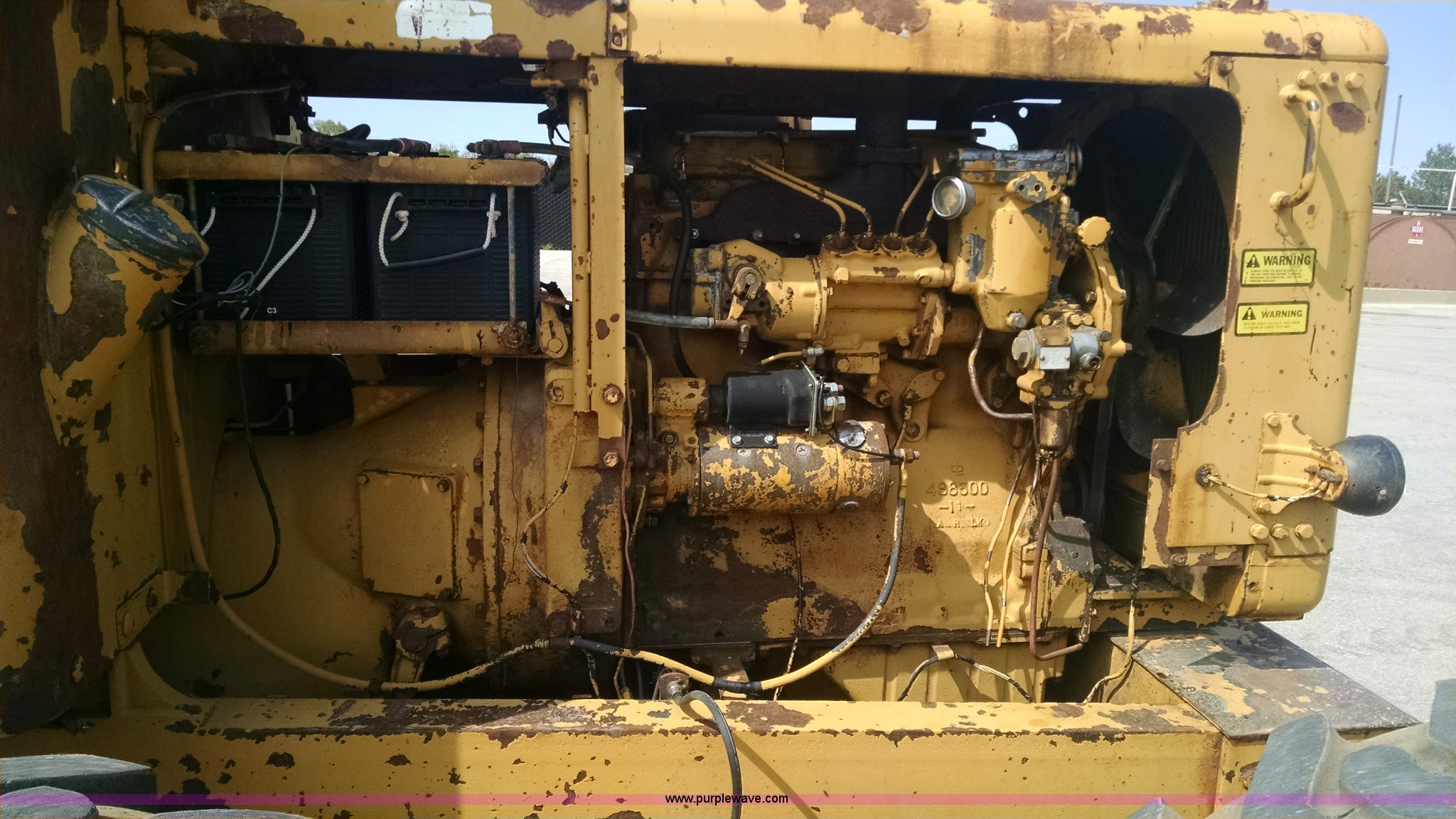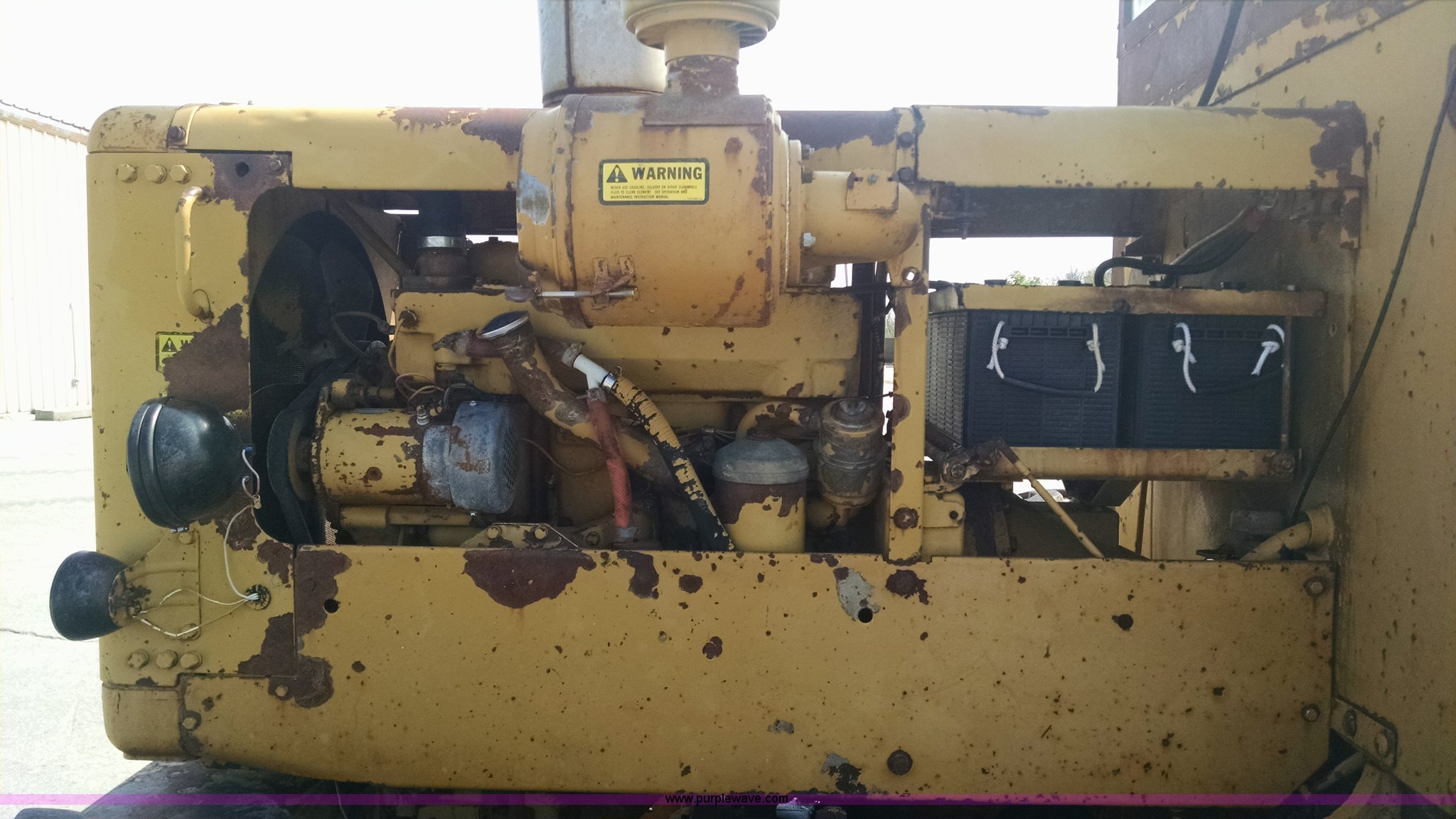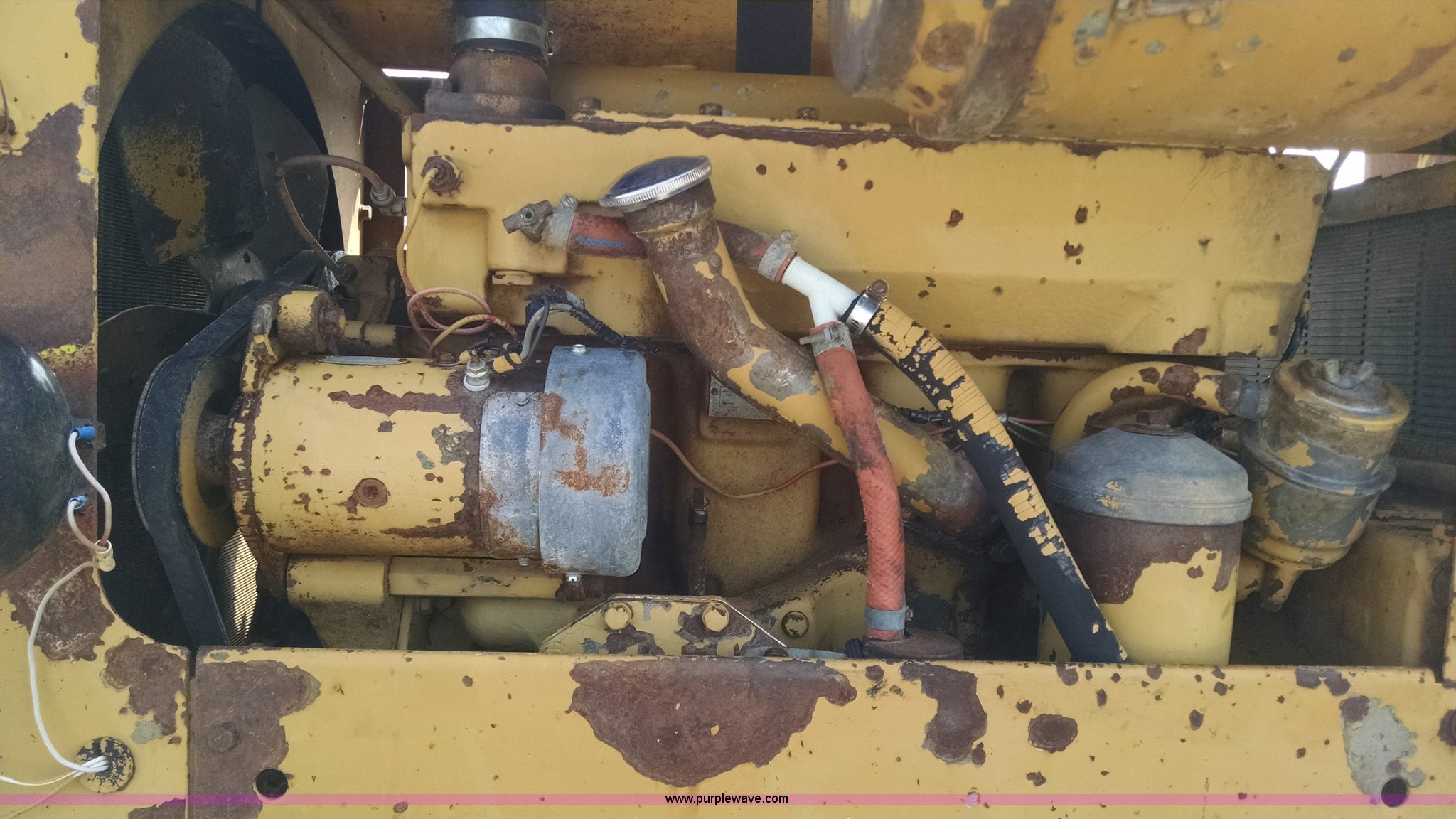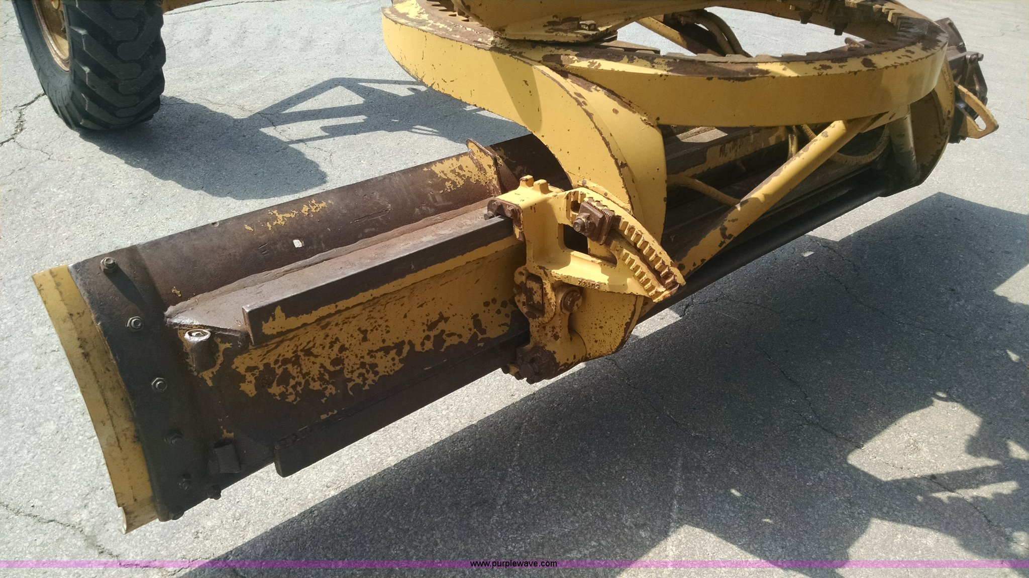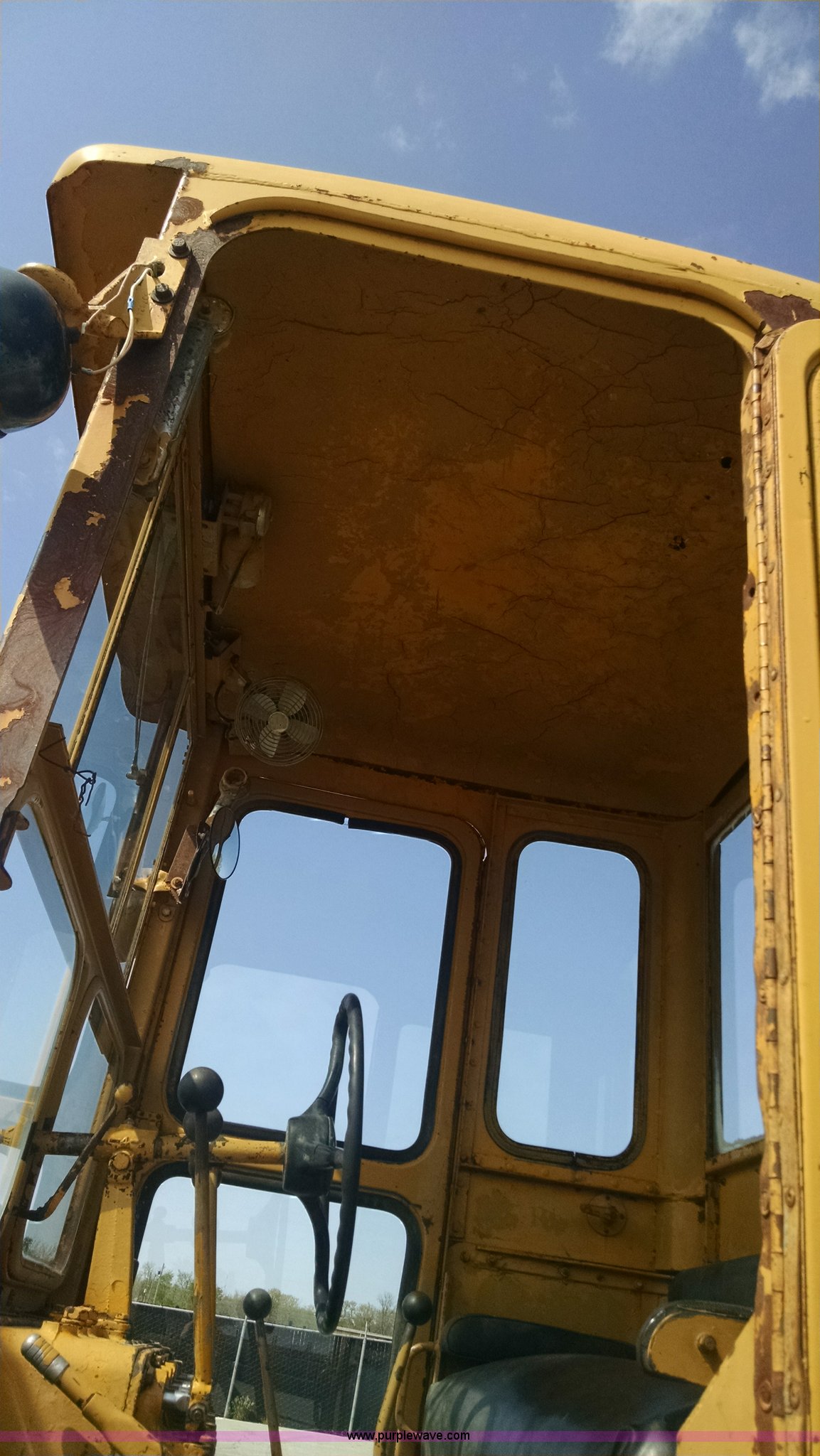 Purple Wave is selling a used Motor Grader in Missouri. This item is a 1968 Caterpillar 112E motor grader with the following: 6,308 hours on meter, Caterpillar four cylinder diesel engine, Direct-drive transmission, 6F-2R gears, Enclosed cab, Front and rear work lights, Moldboard, Side shift, Rigid frame, Pin hitch, 13-24 tires, Recently replaced cutting edges, Serial 91G765