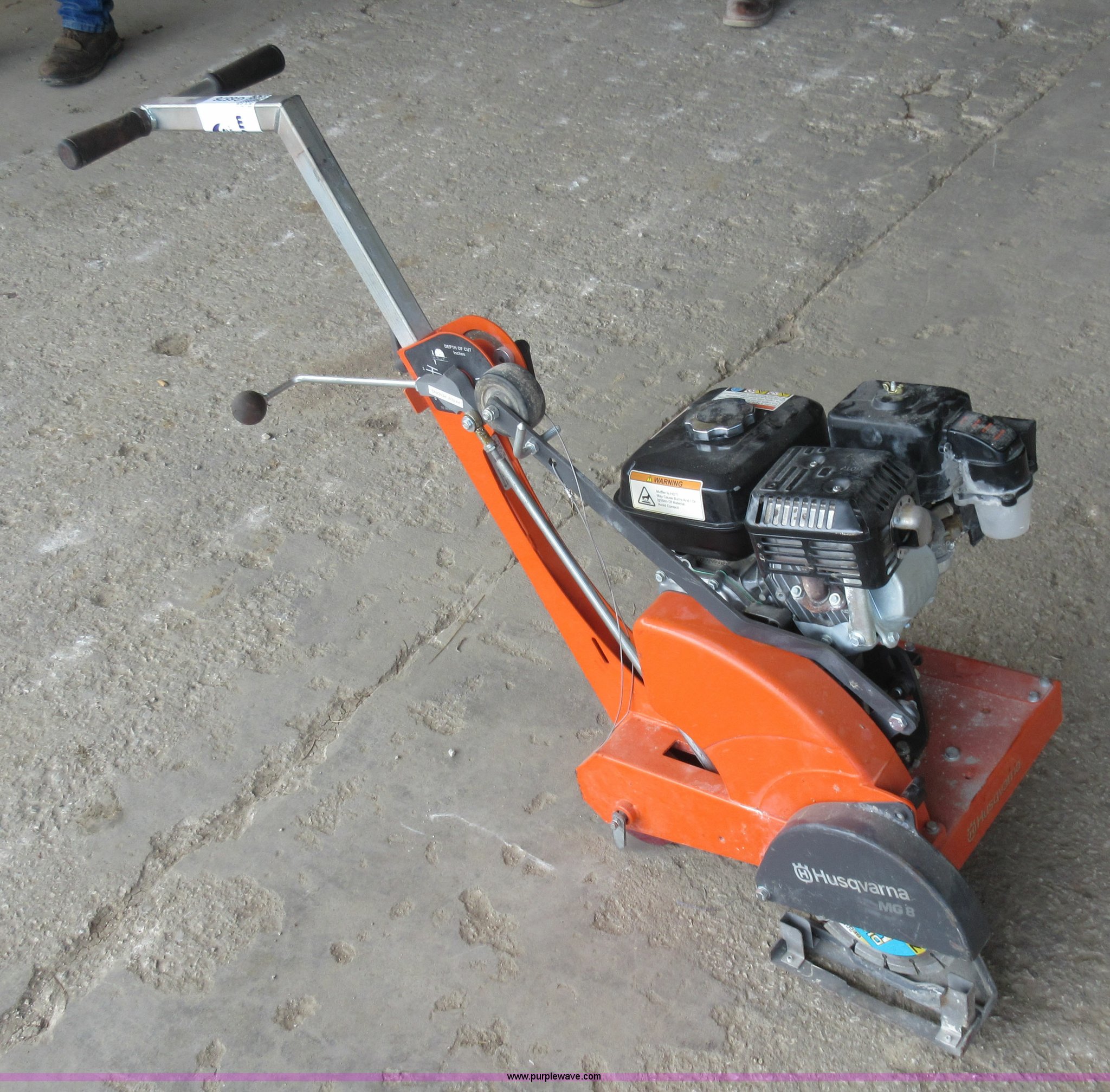 Purple Wave is selling a used Concrete Equip. or Acces. in Missouri. This item is a Husqvarna MG8 soft-cut saw with the following: Honda GX120 single cylinder gas engine, 8" blade