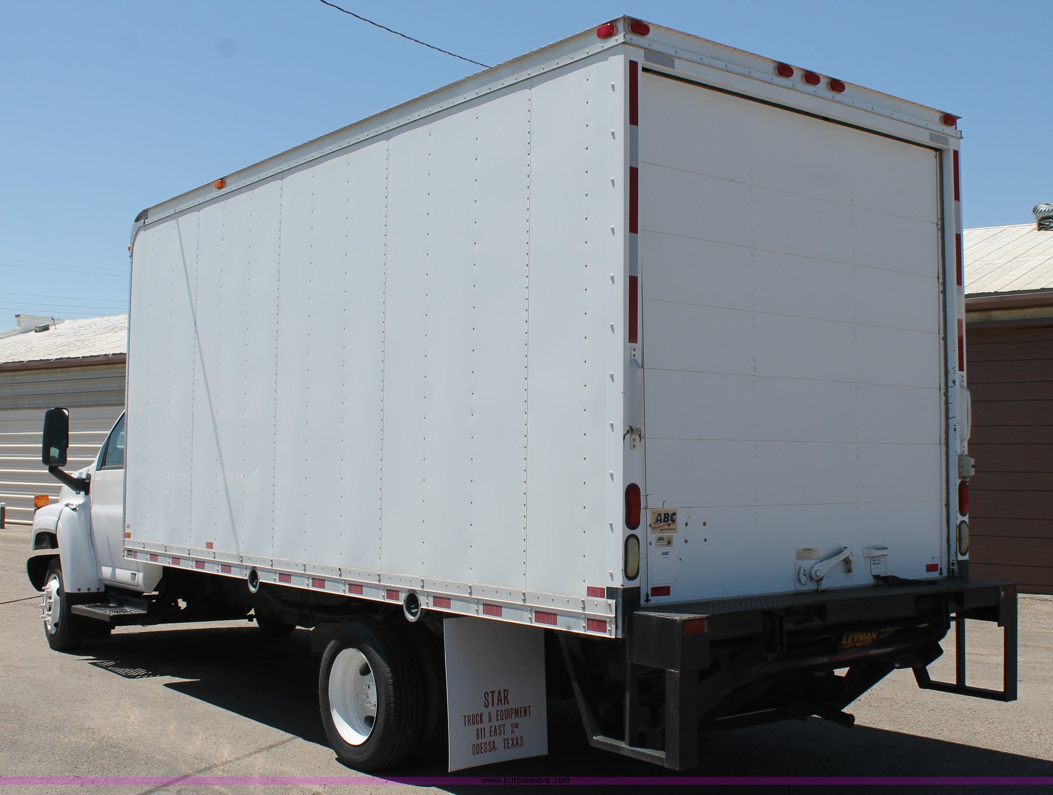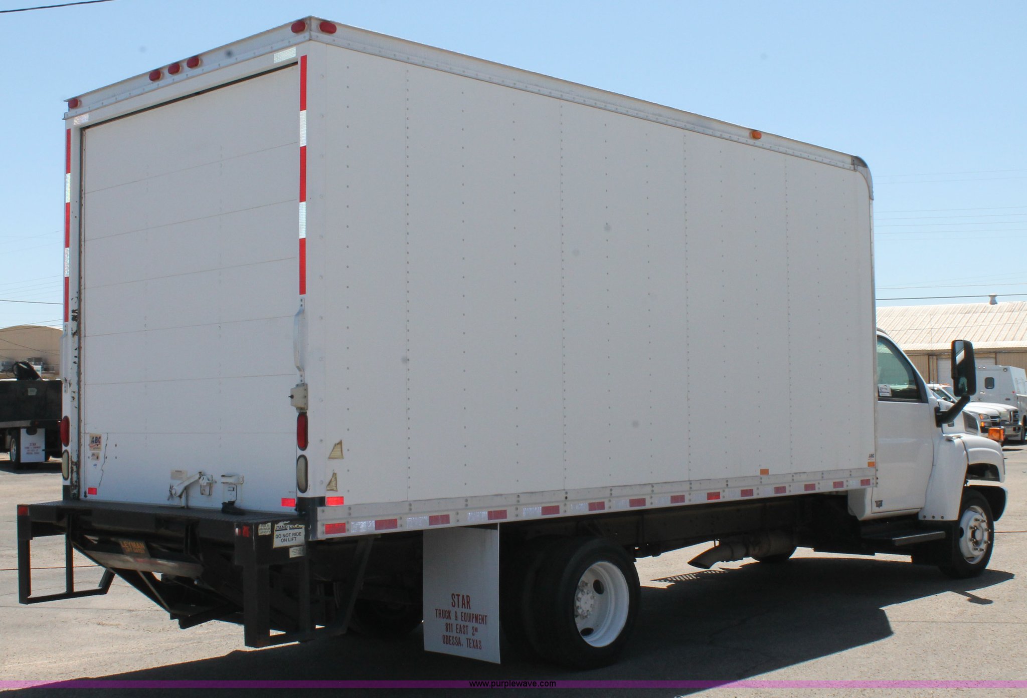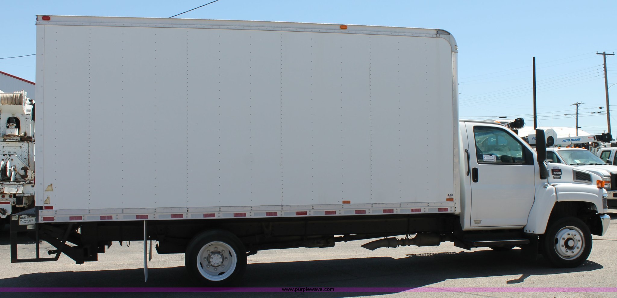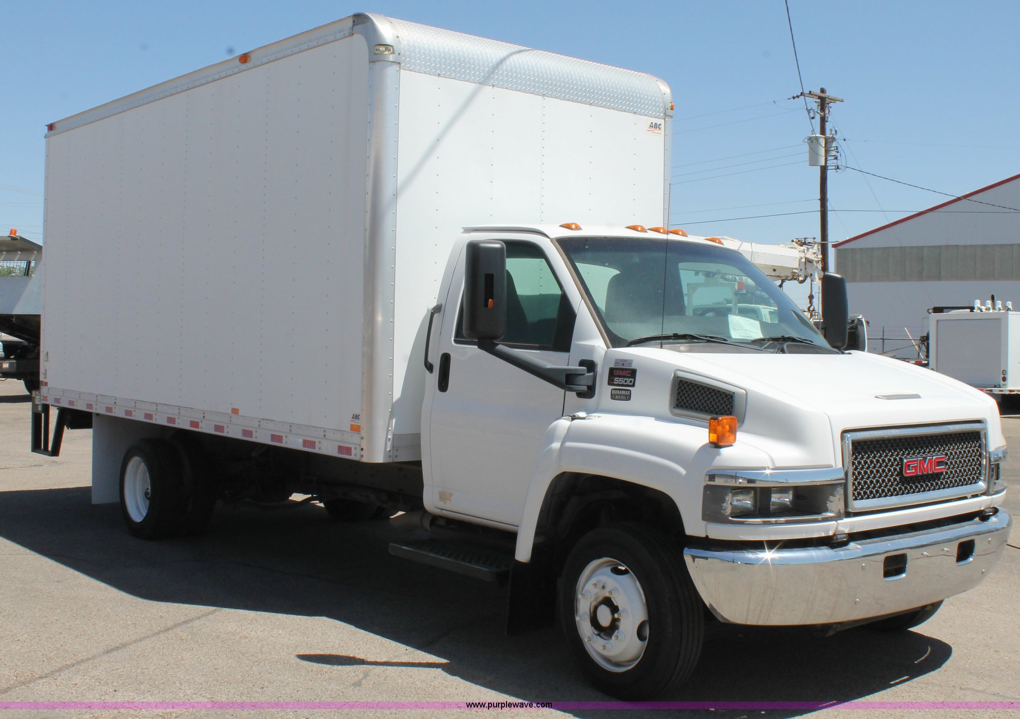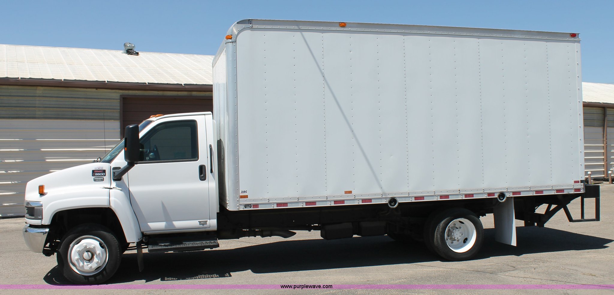 Purple Wave is selling a used Box Truck in Texas. This item is a 2008 GMC C5500 box truck with the following: 192,056 actual miles, 6.6L V8 diesel engine, Automatic transmission, AC and heat, Tilt, Cruise, AM/FM, Spring suspension seat, 18.5'L x 8'W box, Leyman lift gate, Spring suspension, Air brakes, 204" wheelbase, 225/70R19.5 tires, GVWR 19,500 lbs, FAWR 7,000 lbs, RAWR 13,500 lbs