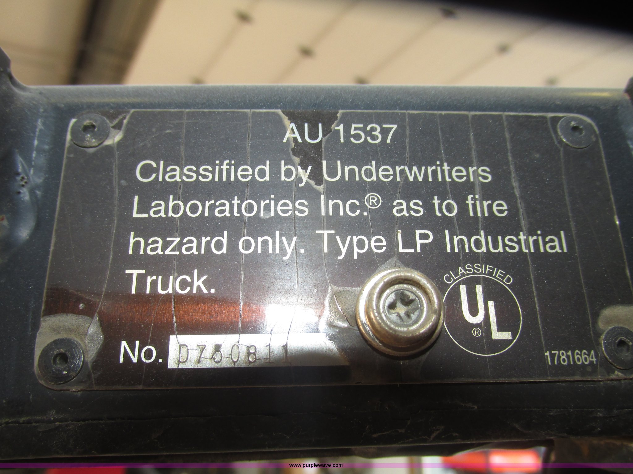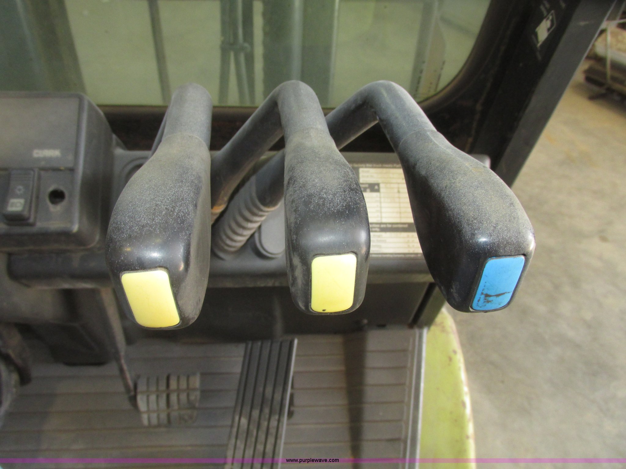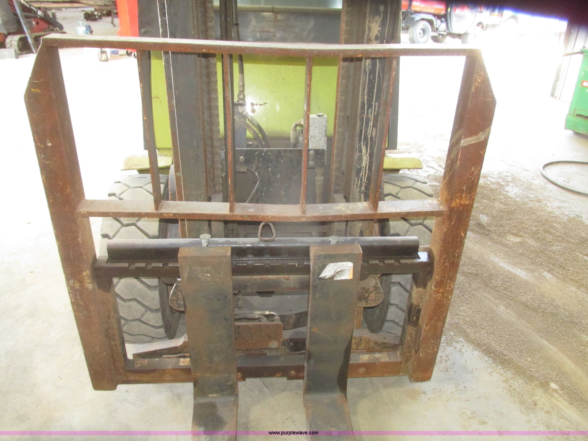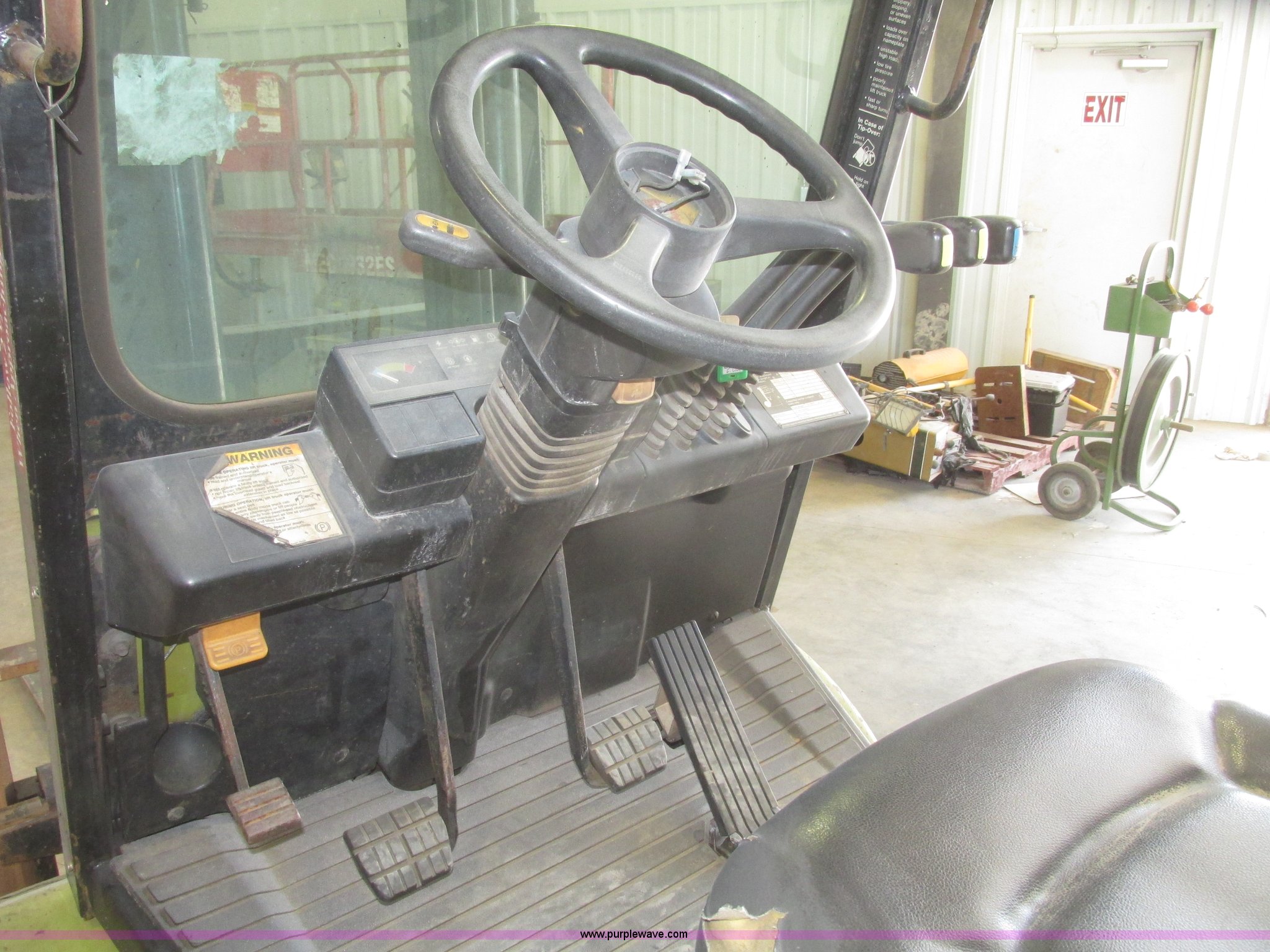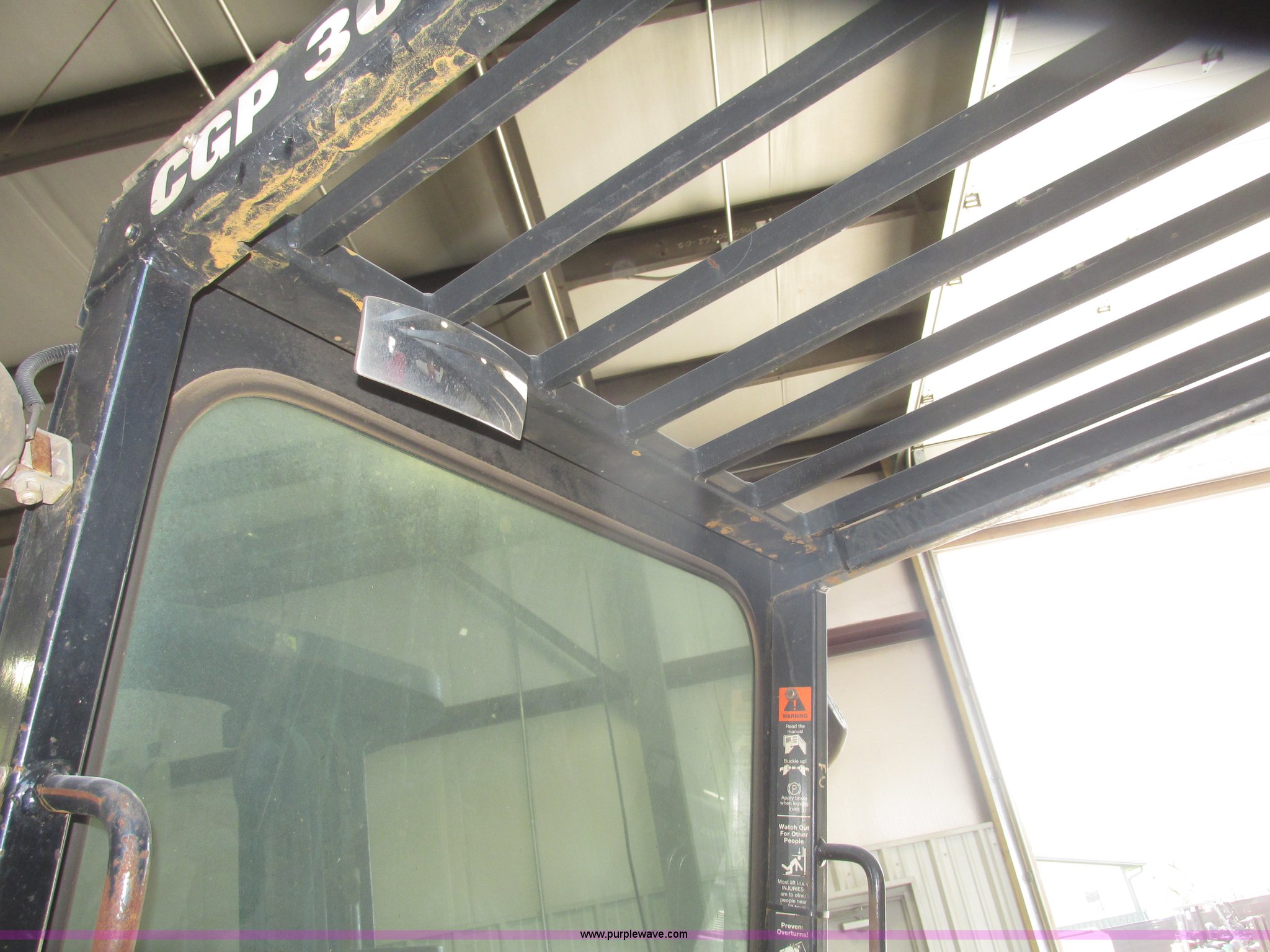 Purple Wave is selling a used Warehouse Forklift in Nebraska. This item is a Clark CGP30 forklift with the following: 2,261 hours on meter, Four cylinder propane engine, Hydrostatic transmission, OROPS, Serial D750811, Tilt steering wheel, Vinyl seat, 6,000 lbs maximum lift capacity at 24" on center, 130" maximum lift height, Two boom sections, Approximately 87" lowered height, 72"L x 6"W adjustable forks, 47"W x 46"H carriage, Side shift, Front and rear work lights, Warning beacon, Backup alarm, Michelin 225/75R15 front pneumatic tires, Michelin 6.50R10 rear pneumatic tires, 9,387 lbs. base operating weight, Propane bottle is not included, Serial P365LI-0043-9527FB