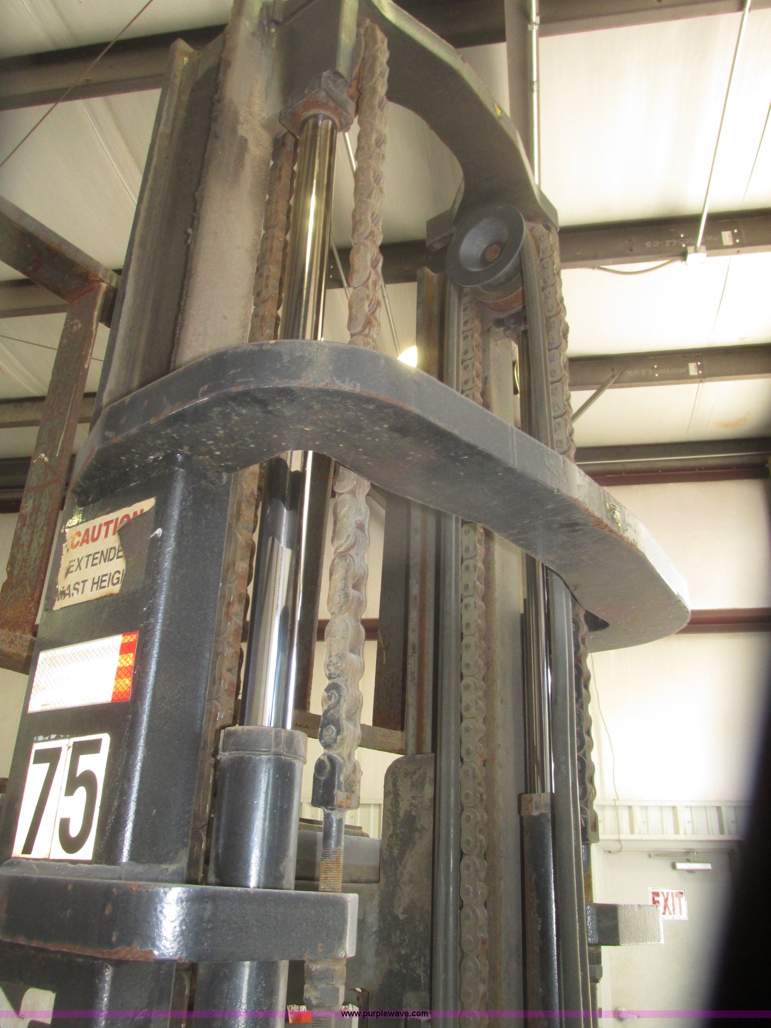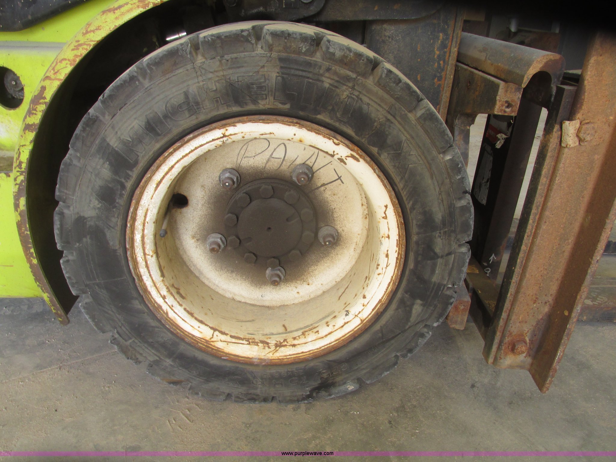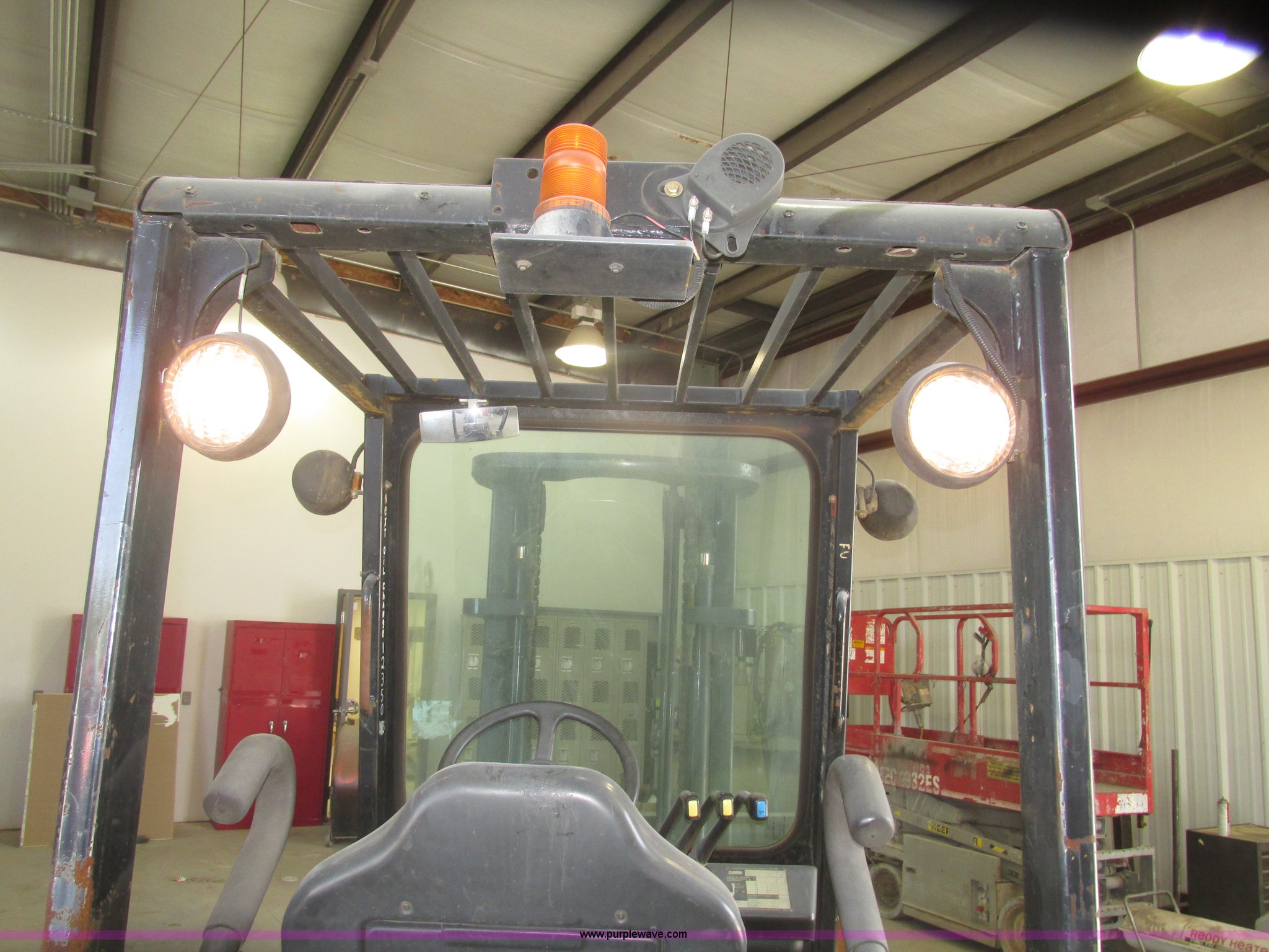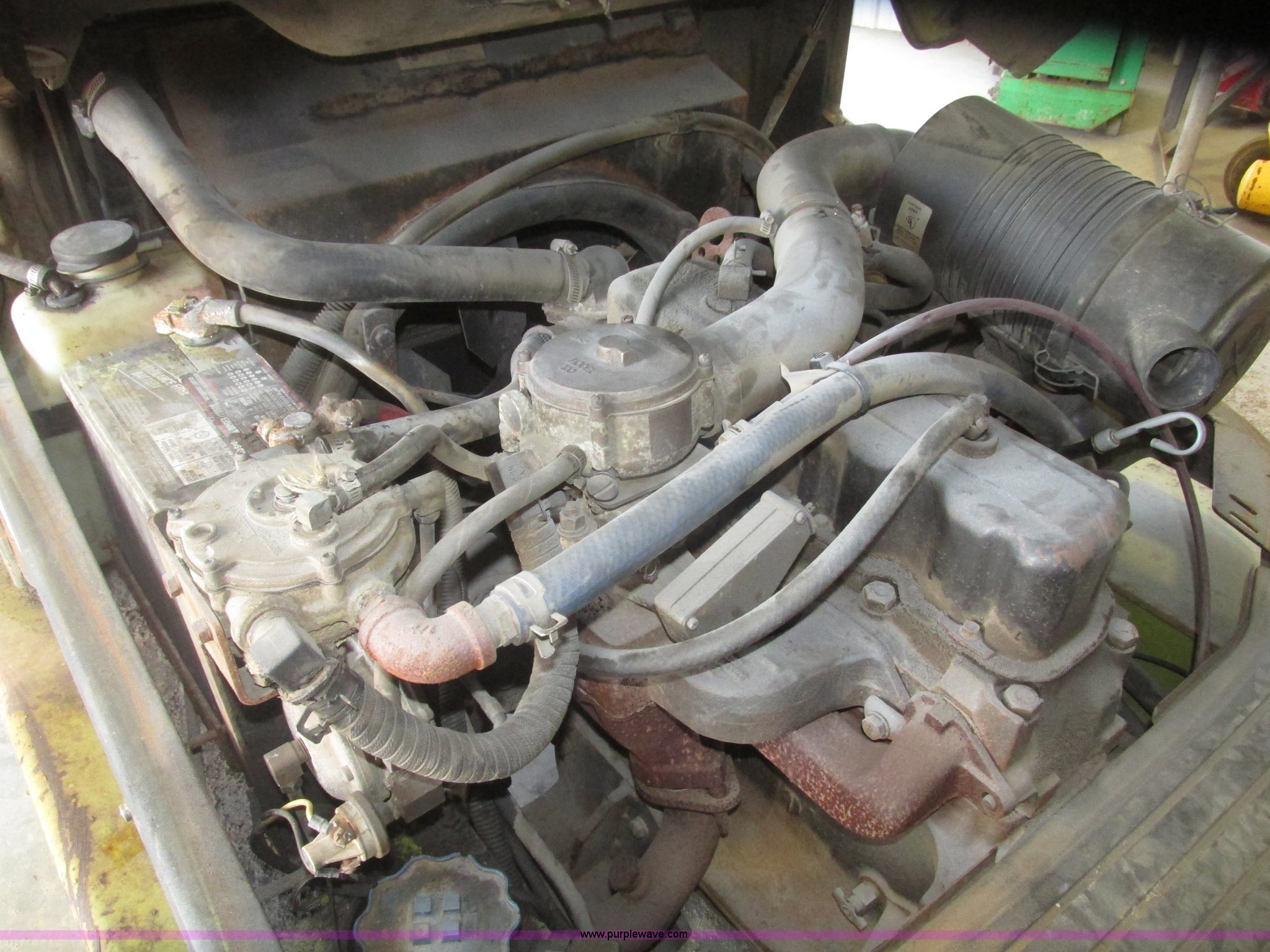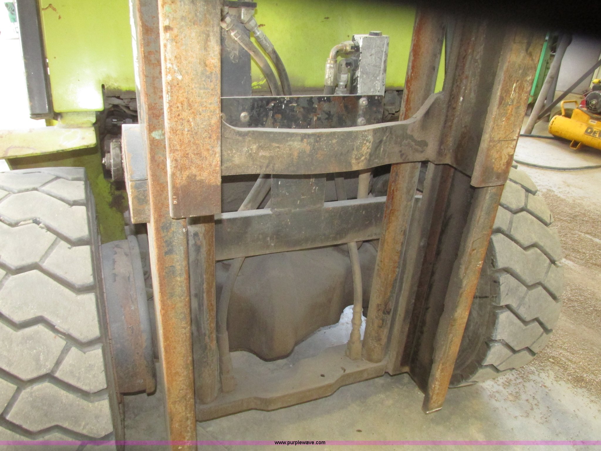 Purple Wave is selling a used Warehouse Forklift in Nebraska. This item is a Clark CGP30 forklift with the following: 2,261 hours on meter, Four cylinder propane engine, Hydrostatic transmission, OROPS, Serial D750811, Tilt steering wheel, Vinyl seat, 6,000 lbs maximum lift capacity at 24" on center, 130" maximum lift height, Two boom sections, Approximately 87" lowered height, 72"L x 6"W adjustable forks, 47"W x 46"H carriage, Side shift, Front and rear work lights, Warning beacon, Backup alarm, Michelin 225/75R15 front pneumatic tires, Michelin 6.50R10 rear pneumatic tires, 9,387 lbs. base operating weight, Propane bottle is not included, Serial P365LI-0043-9527FB