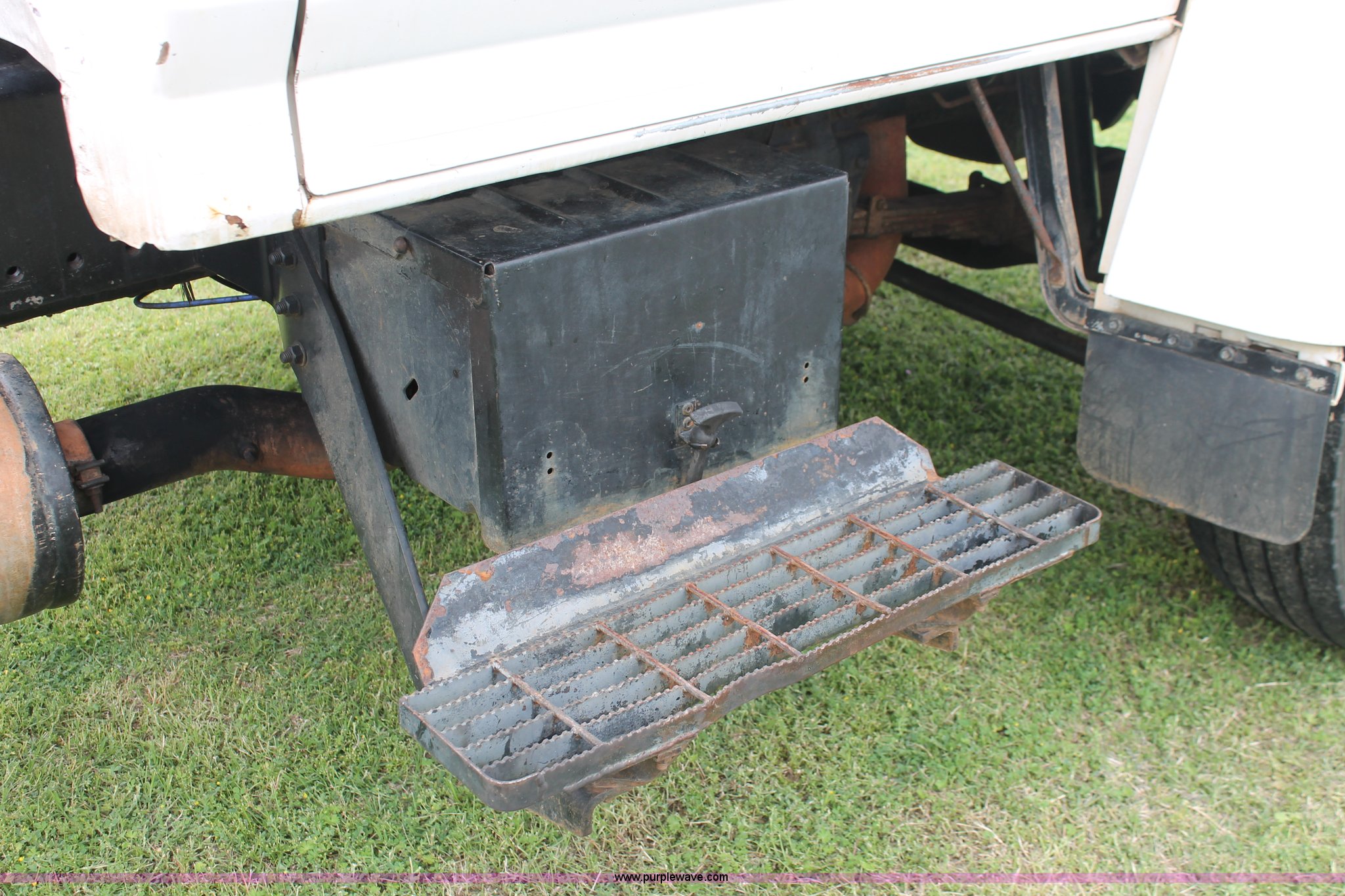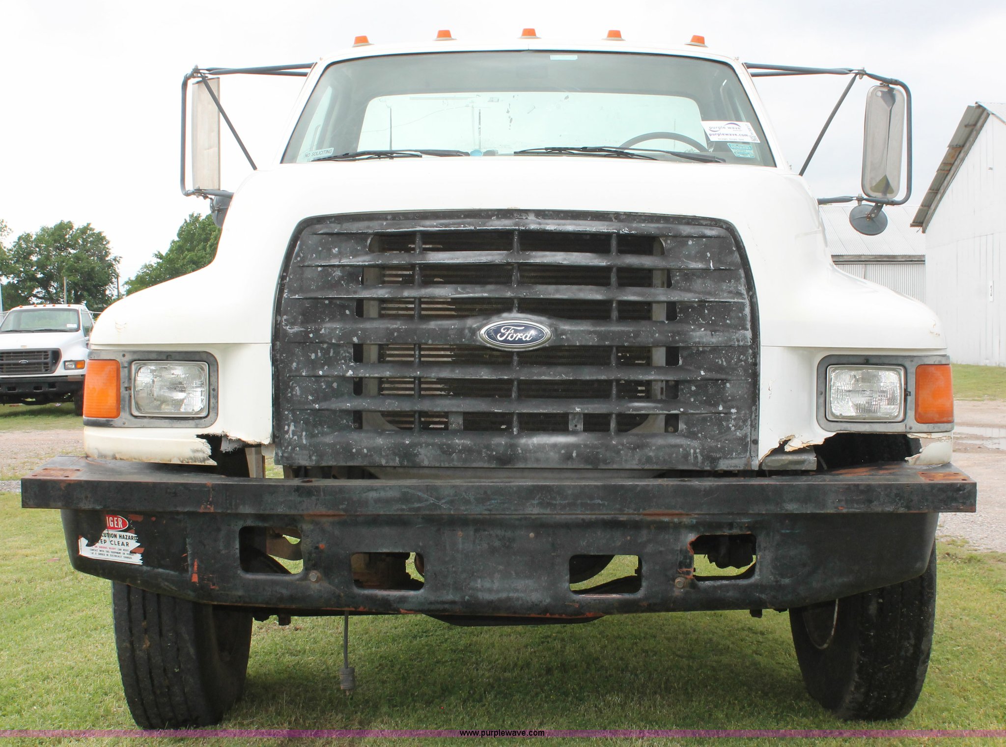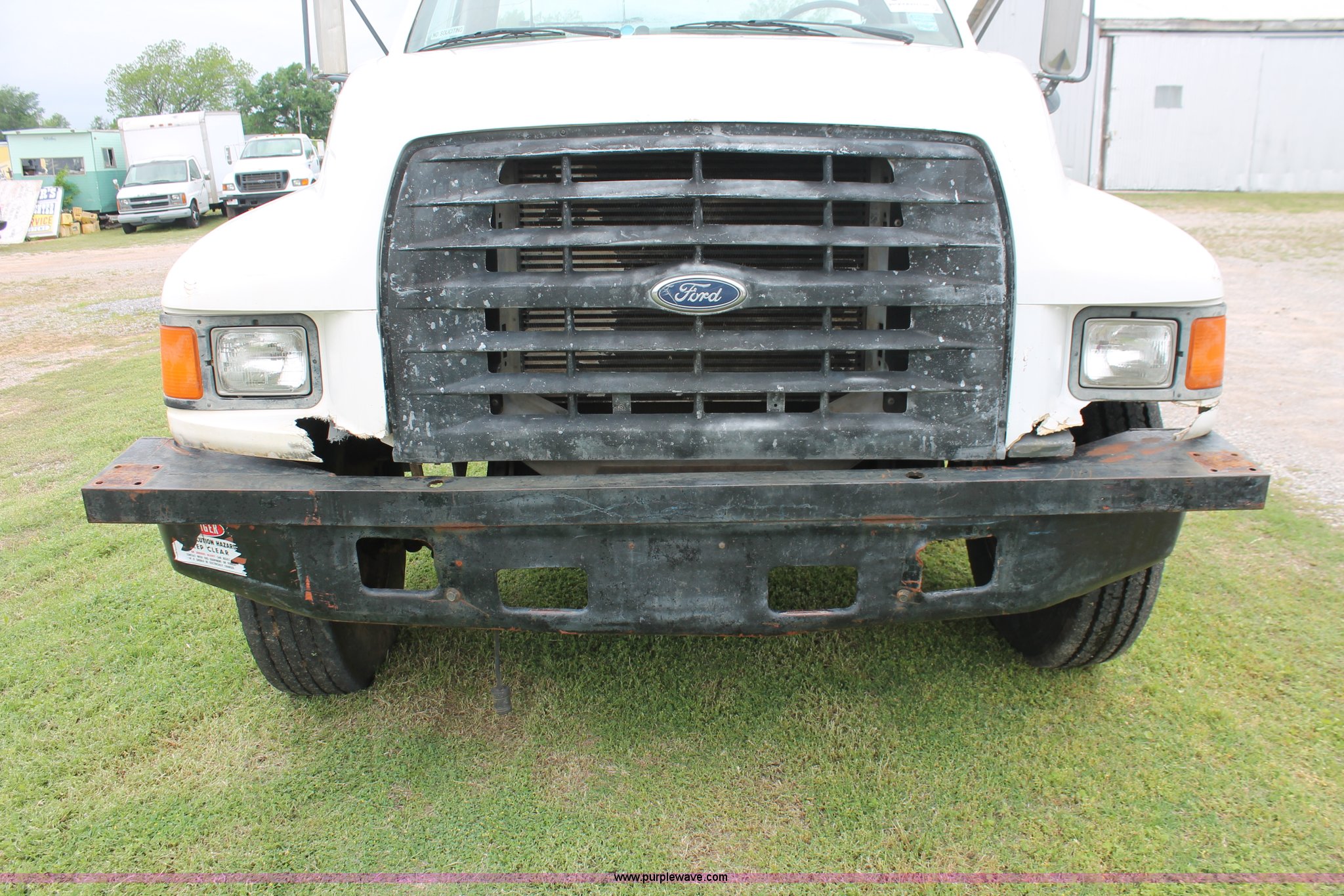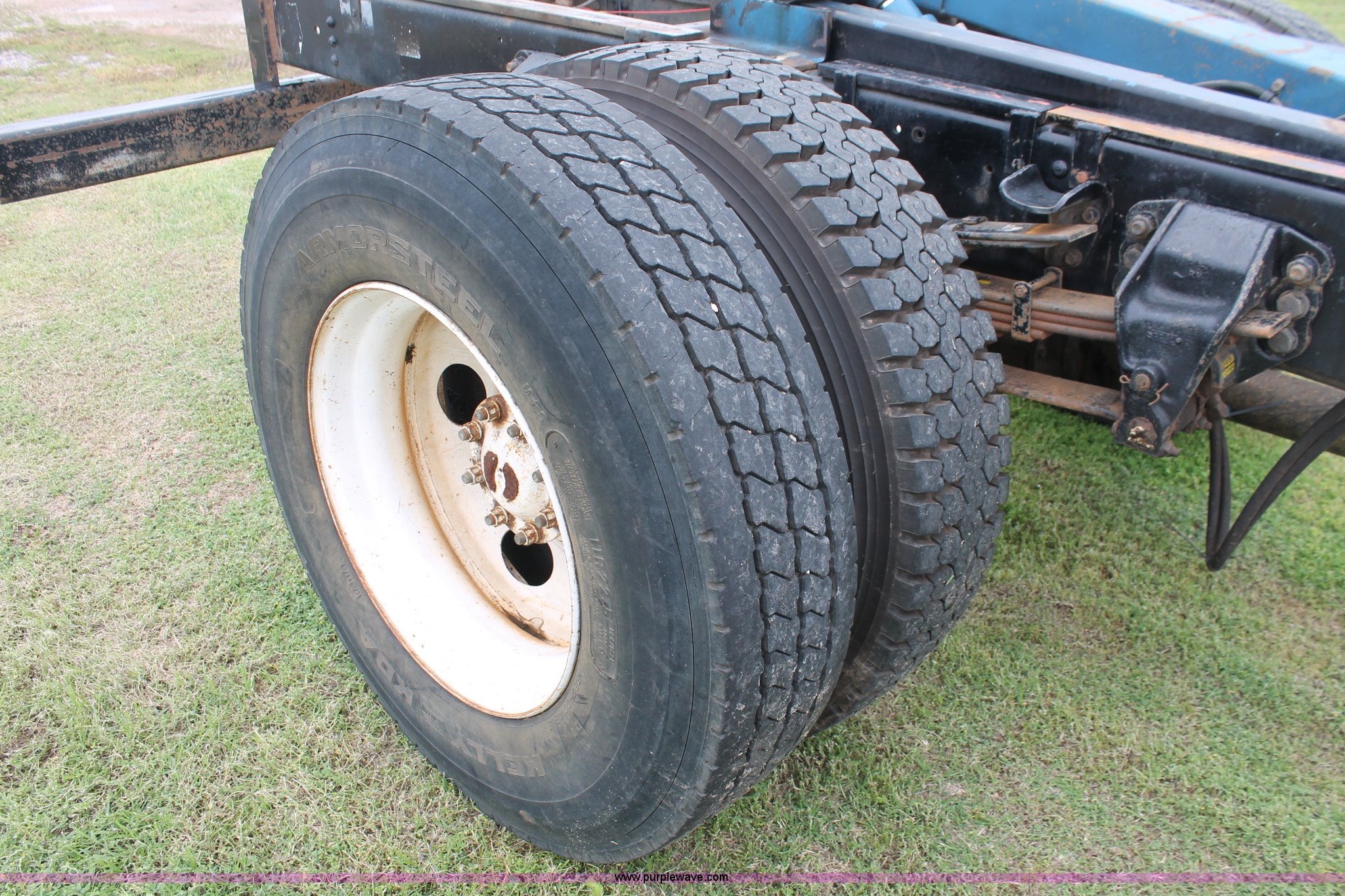 Purple Wave is selling a used Truck Chassis in Oklahoma. This item is a 1998 Ford F800 truck cab and chassis with the following: 147,975 miles on odometer, Cummins B5.9-190 5.9L L6 12V diesel engine, 190 HP, Serial 56388989, Six speed manual transmission, Heat, Manual windows and locks, Vinyl interior, Backup alarm, Block heater, 50 gallon fuel tank, Harsh RL-E50 Rigid-Lift hydraulic hoist, Dual ram cylinders, Dual PTO, Single pump, Brake controller, Trailer electrical outlet, Hydraulic brakes, 189" wheelbase, 11R22.5 tires, GVWR 30,000 lbs