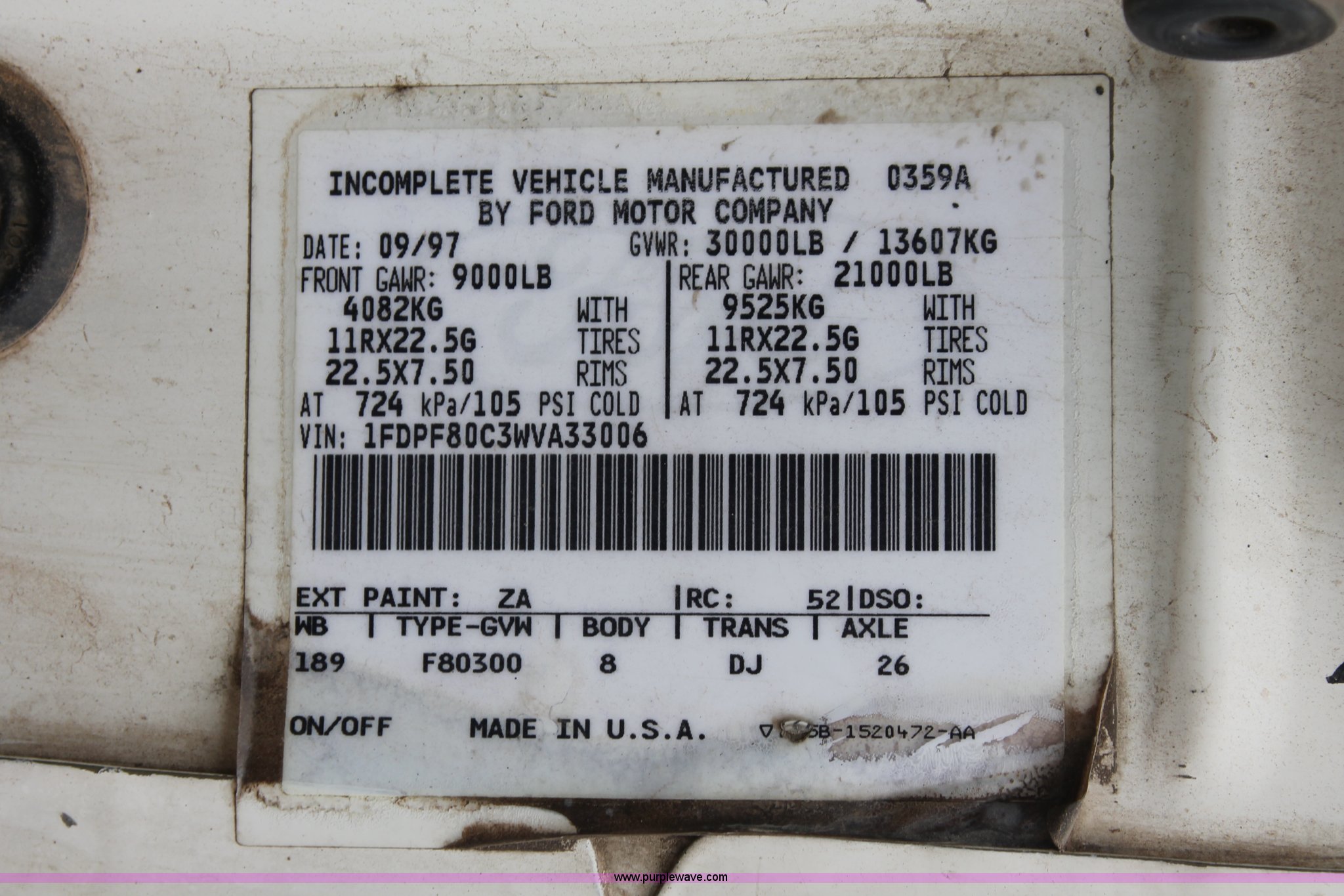 1998 Ford F800 truck cab and chassis has sold in Oklahoma City, Oklahoma for $4180. Item H5817 sold on May 28th, 2015.