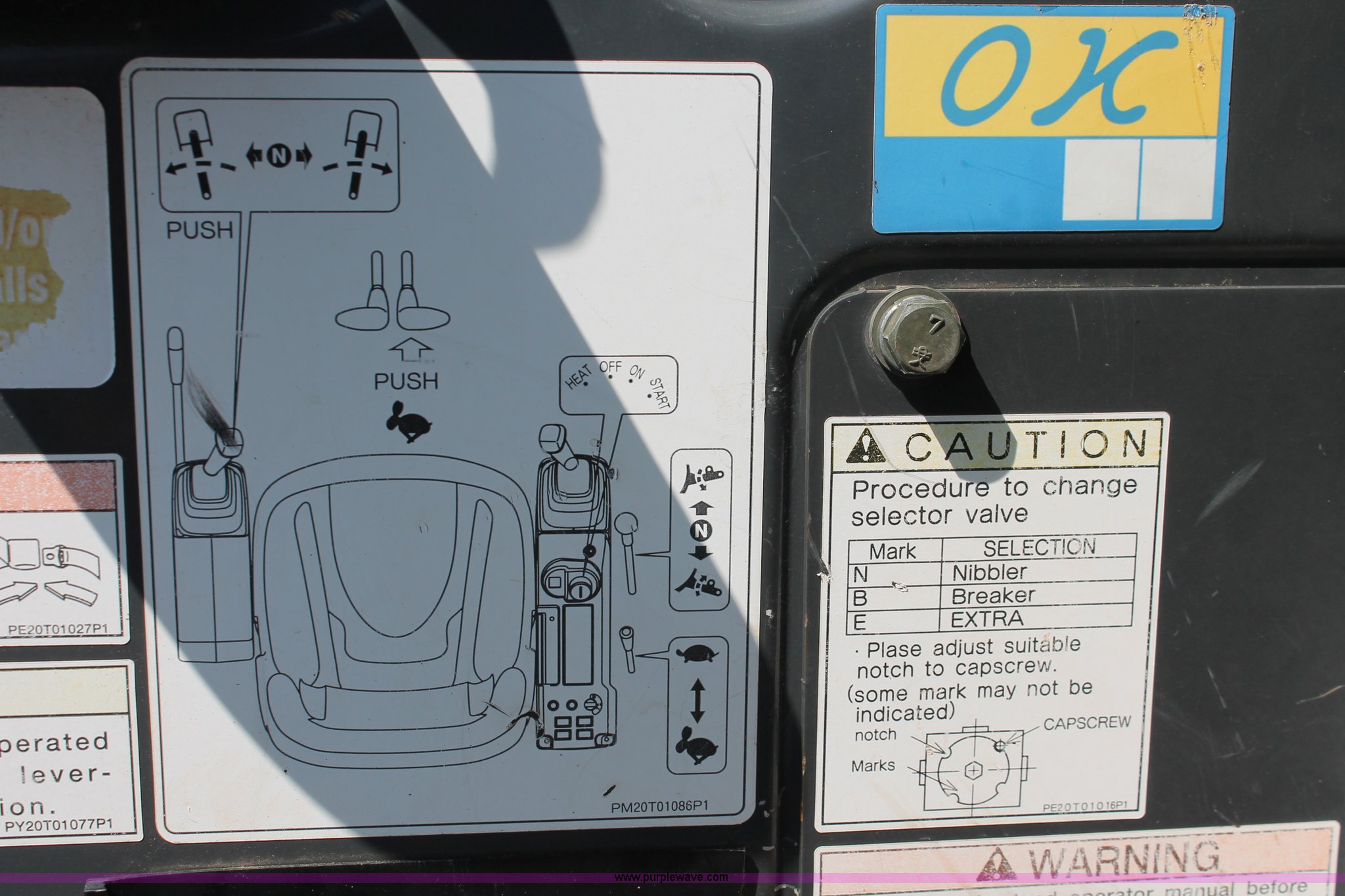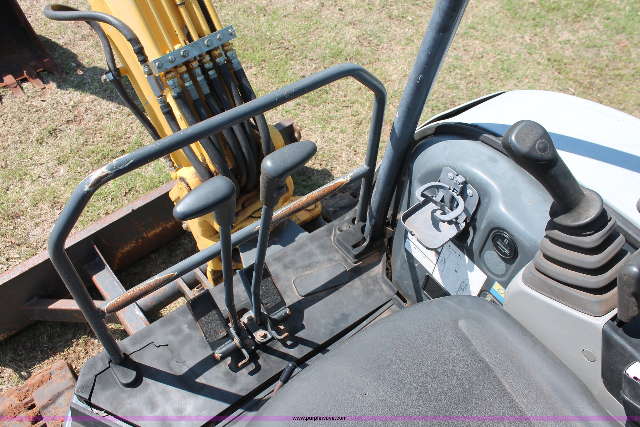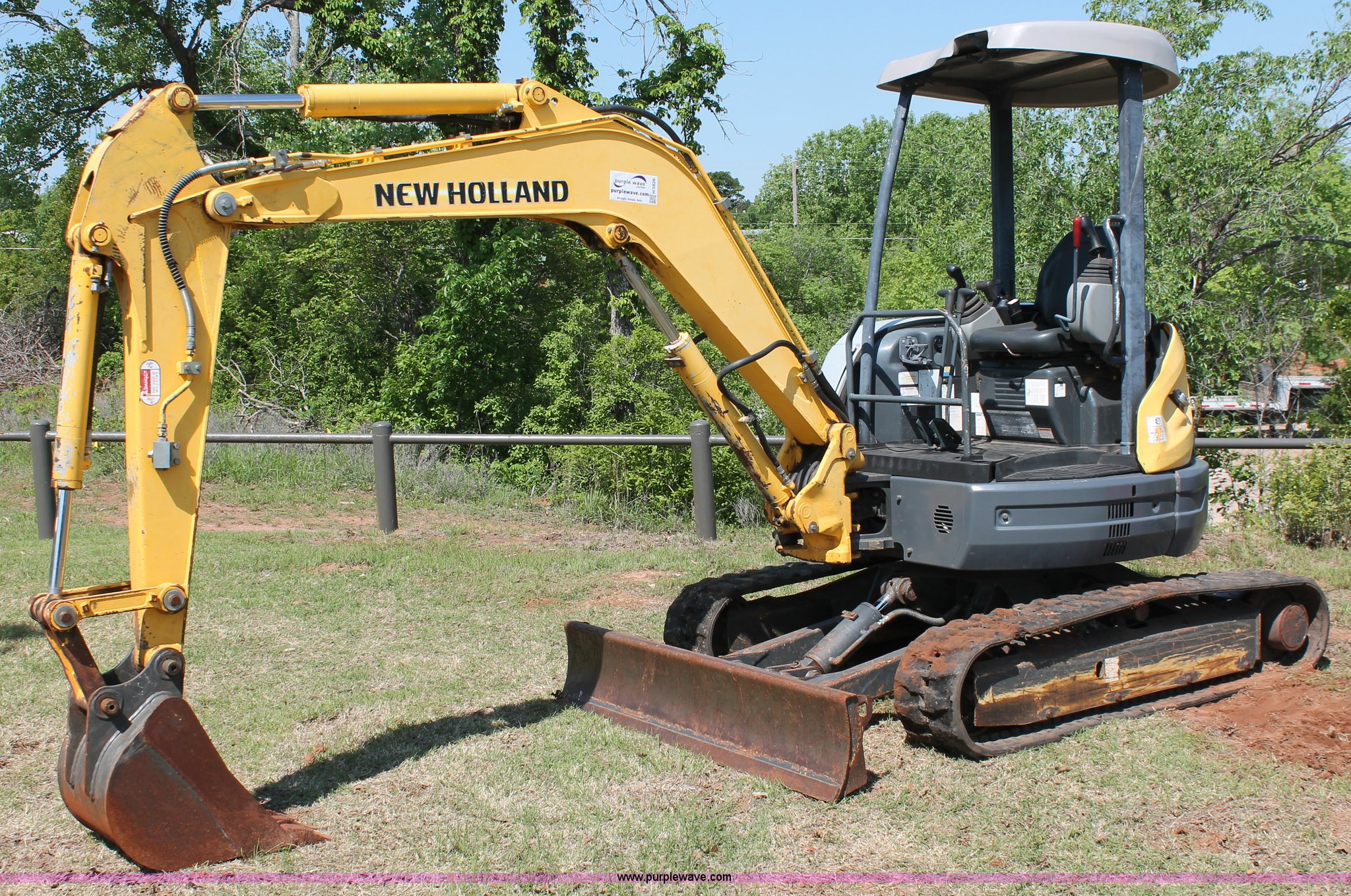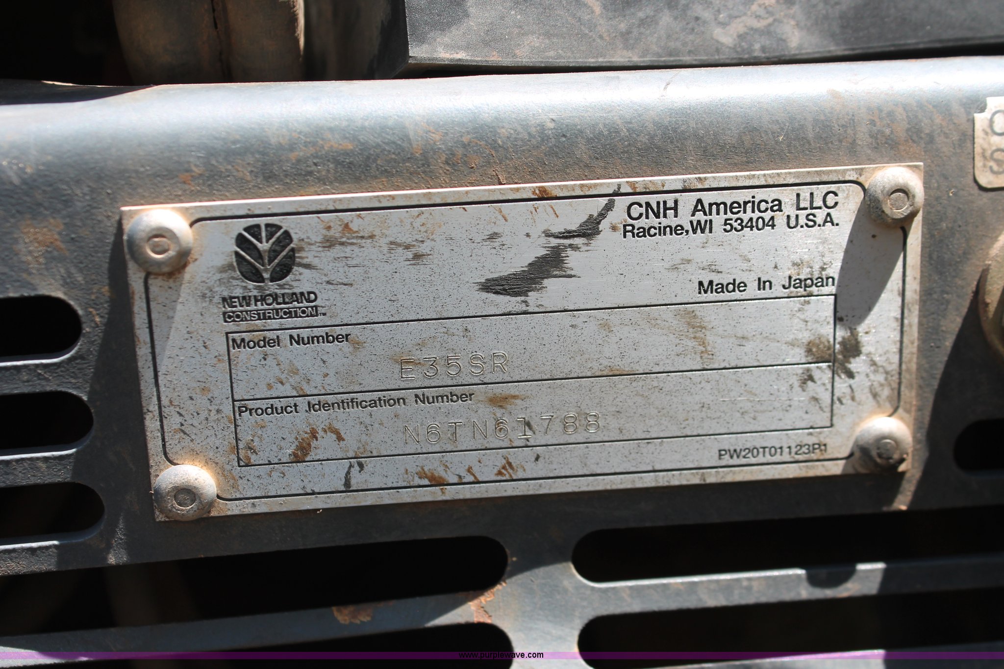 Purple Wave is selling a used Mini Excavator in Oklahoma. This item is a 2006 New Holland E35SR mini excavator with the following: 1,114 hours on meter, Yanmar 3TNV88-P 1.642L three cylinder diesel engine, 30 HP, Hydrostatic transmission, ROPS, Spring suspension seat, ROPS serial R33123, 50" stick length, 100" boom, USA Attachments 18"W four tooth bucket, Weld-on teeth, 68"W back fill blade, 12"W rubber tracks, 8,223 lbs. base operating weight, Serial N6TN61788