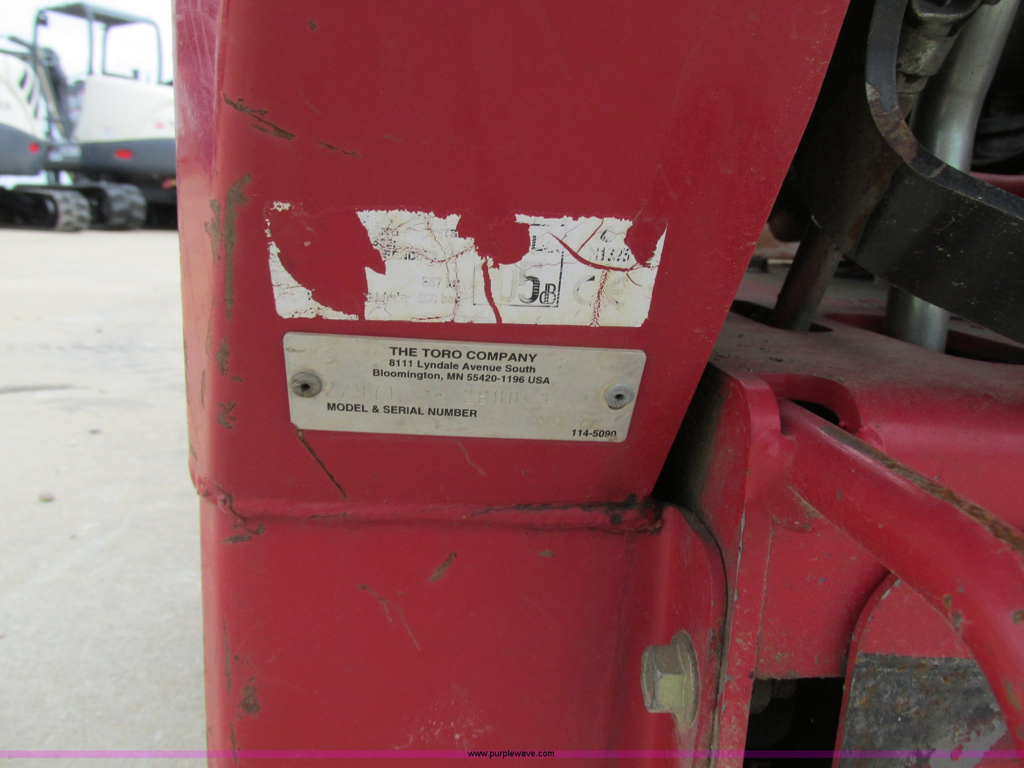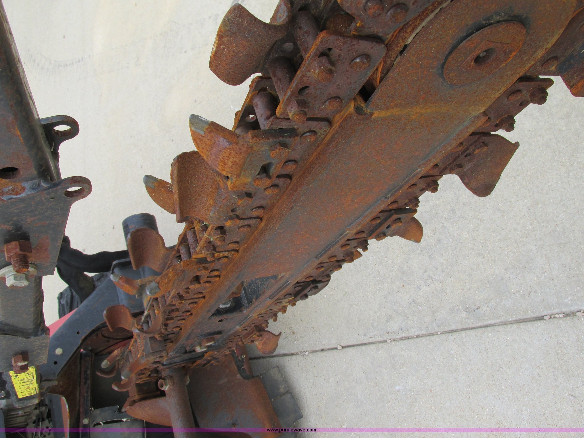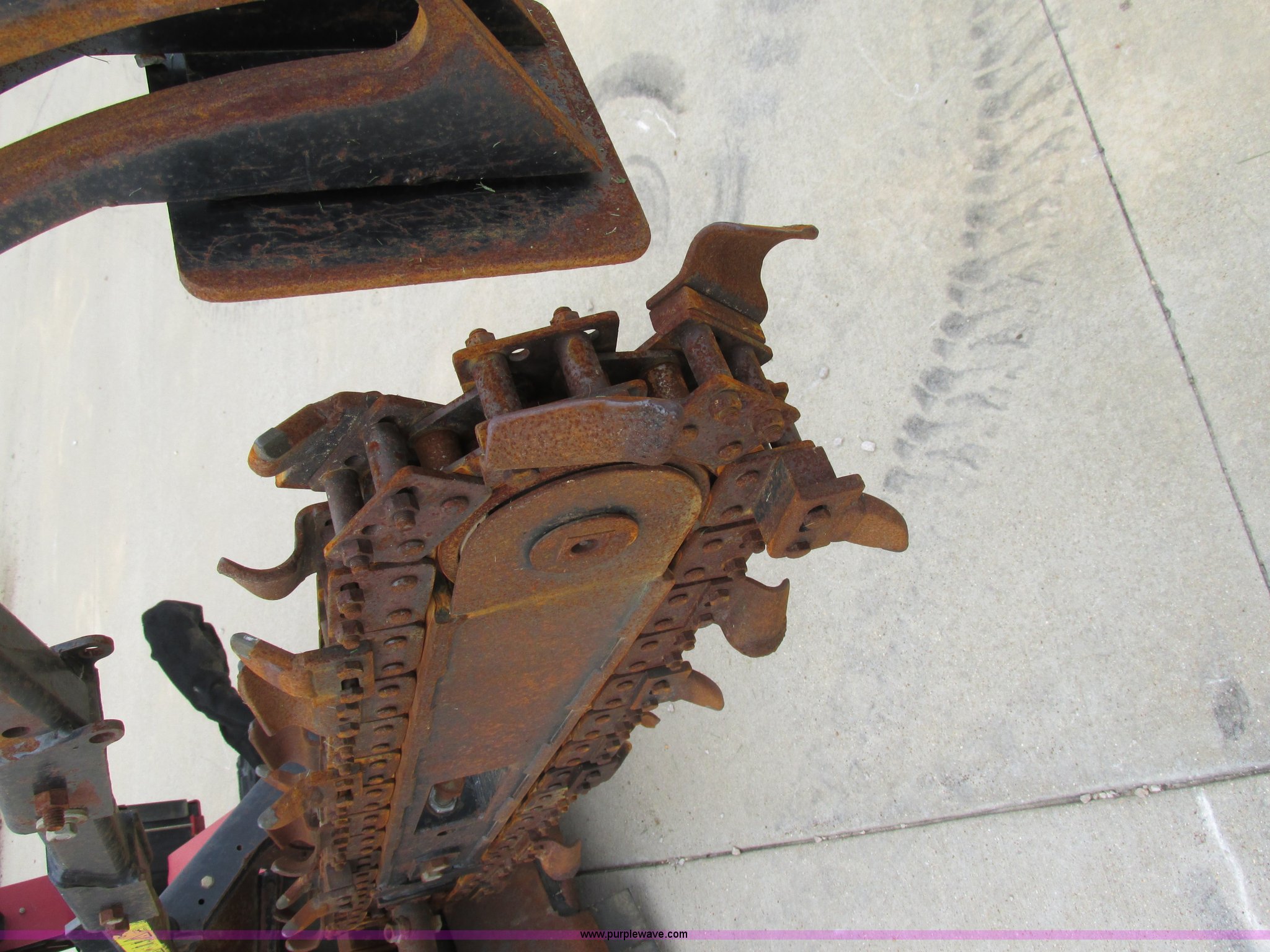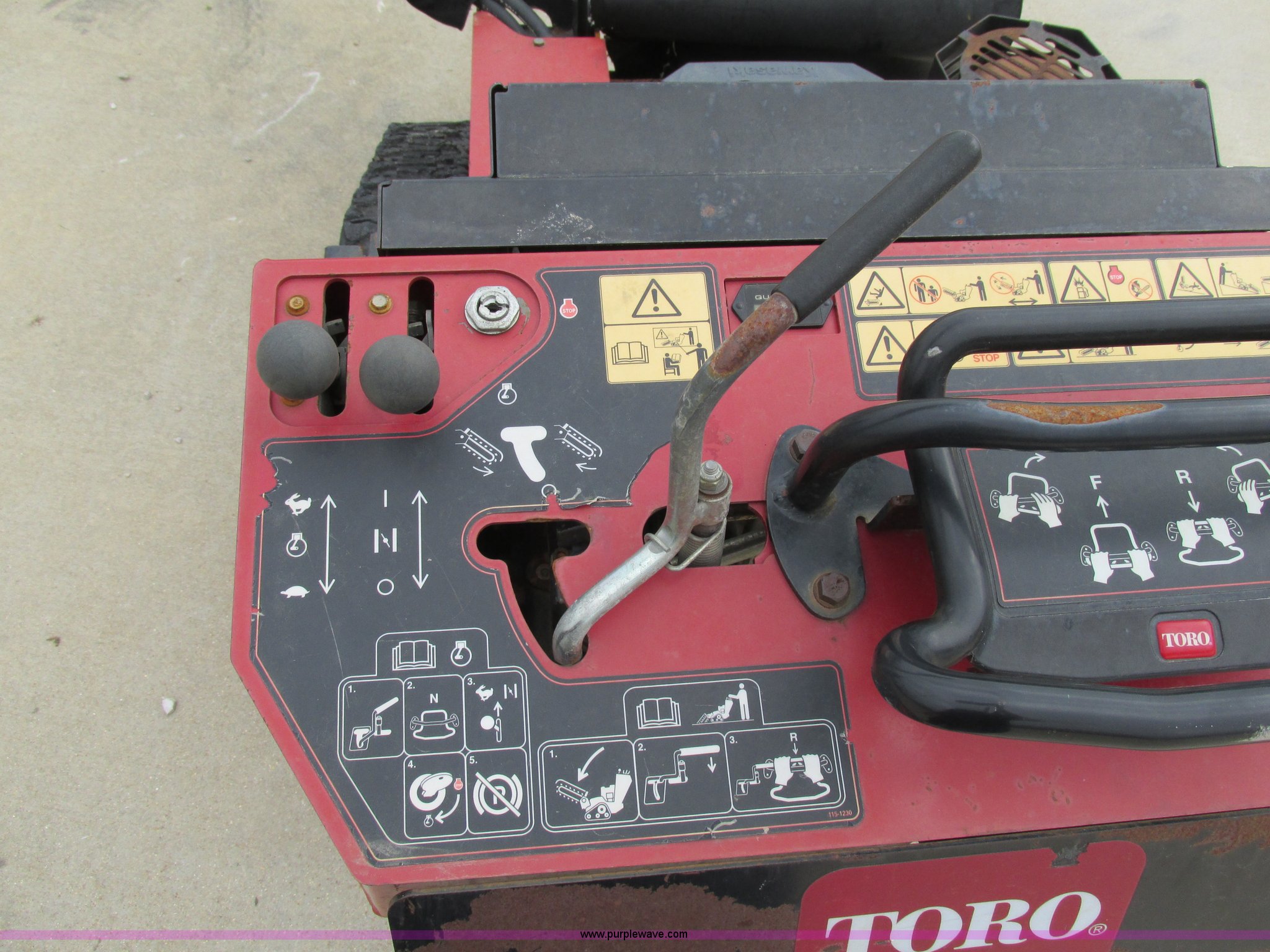 Purple Wave is selling a used Trencher or Rock Saw in Missouri. This item is a Toro TRX19 walk-behind trencher with the following: 555 hours on meter, Model 22971, Kawasaki gas engine, Electric start, Hydraulic driven transmission, 36" dig depth, Carbide tipped teeth, 5.5"W trench, Adjustable ditch cleaner/safety bar, Three bottom rollers, 6"W rubber tracks, Serial 22971-280000