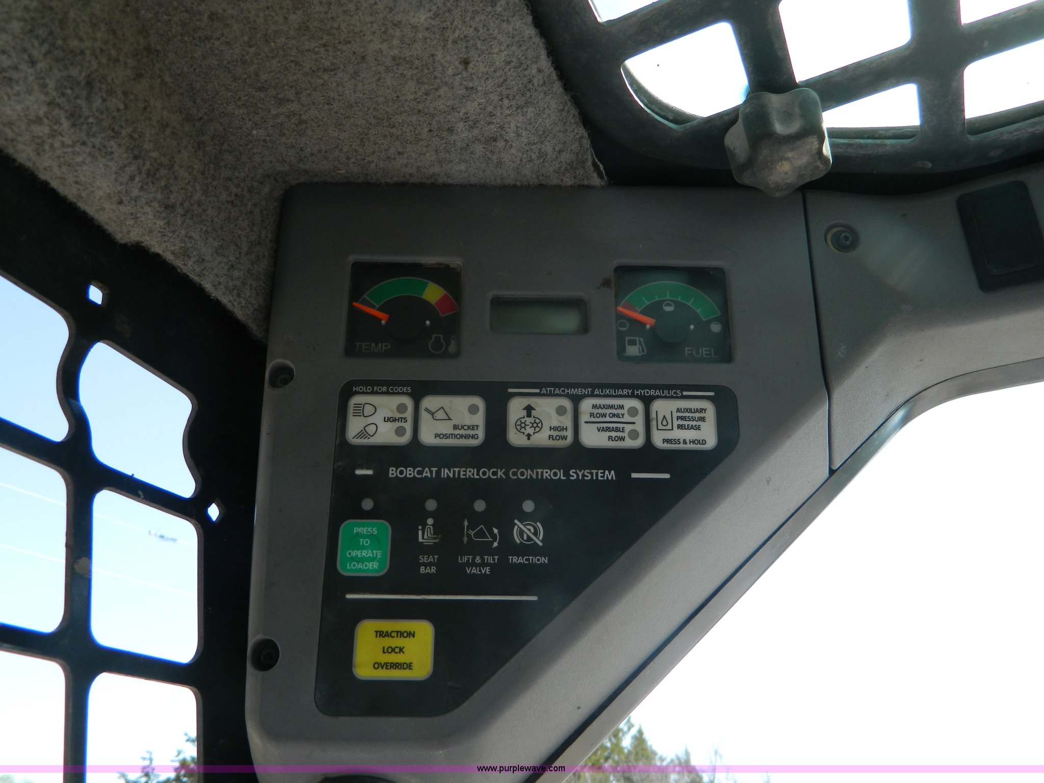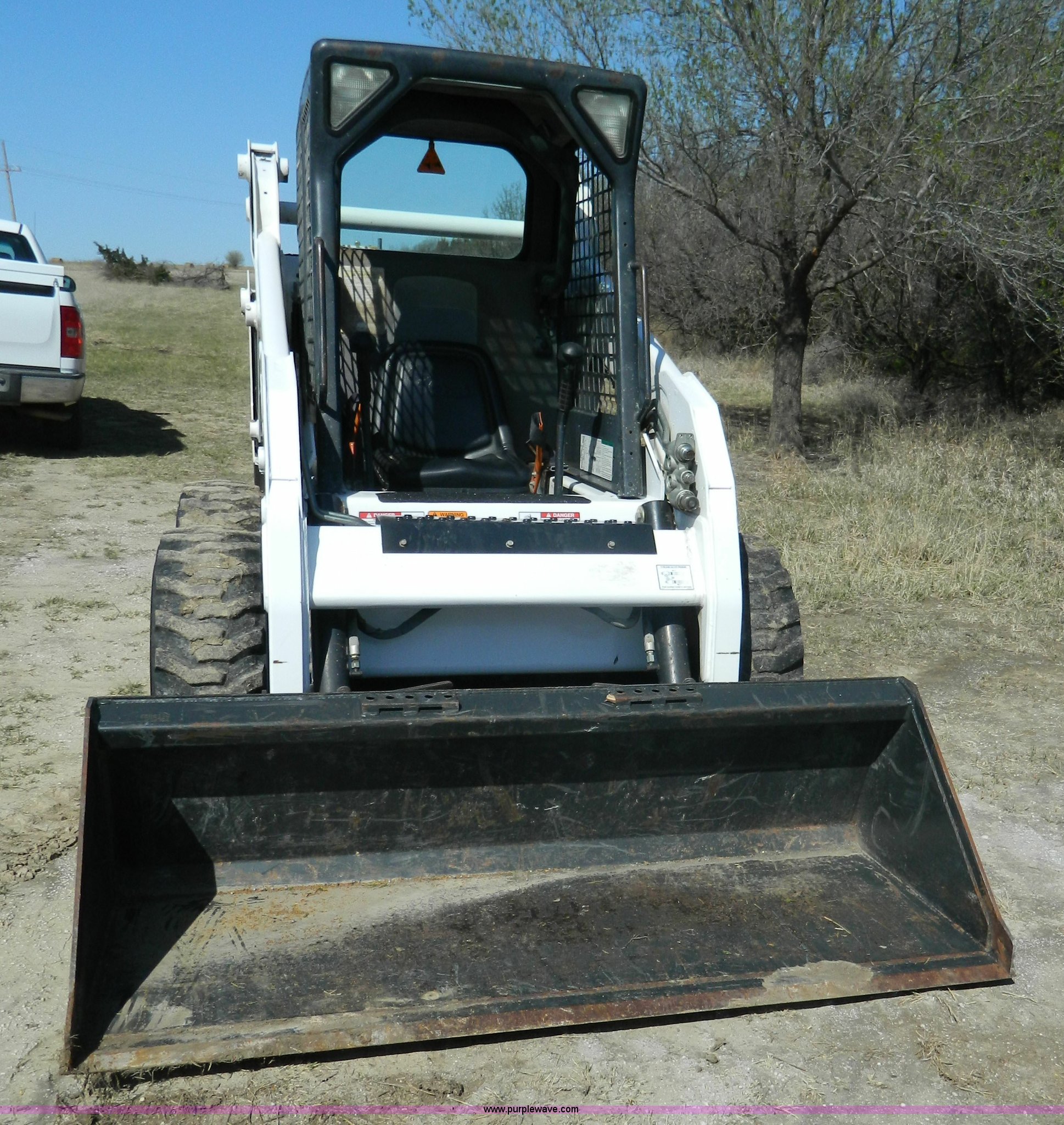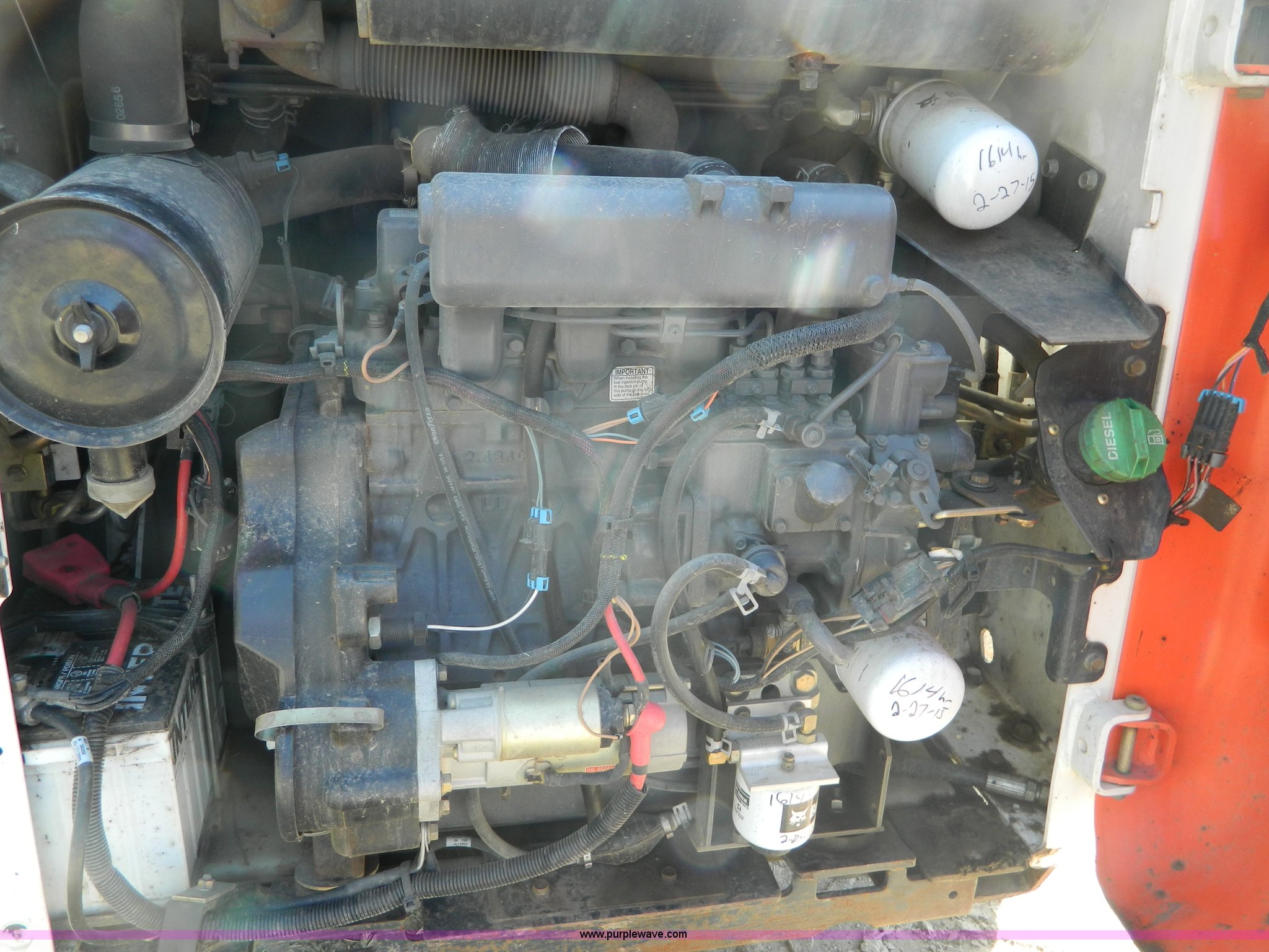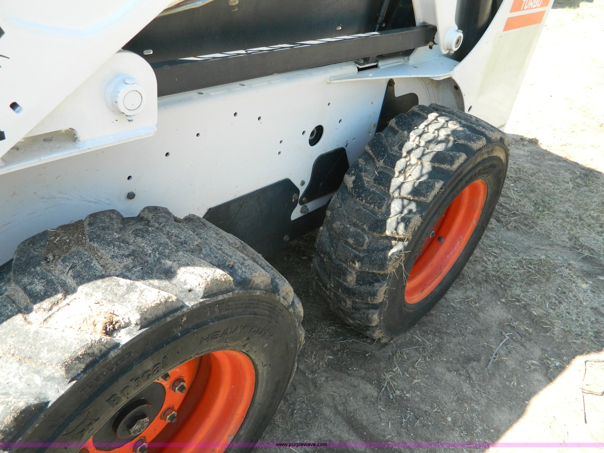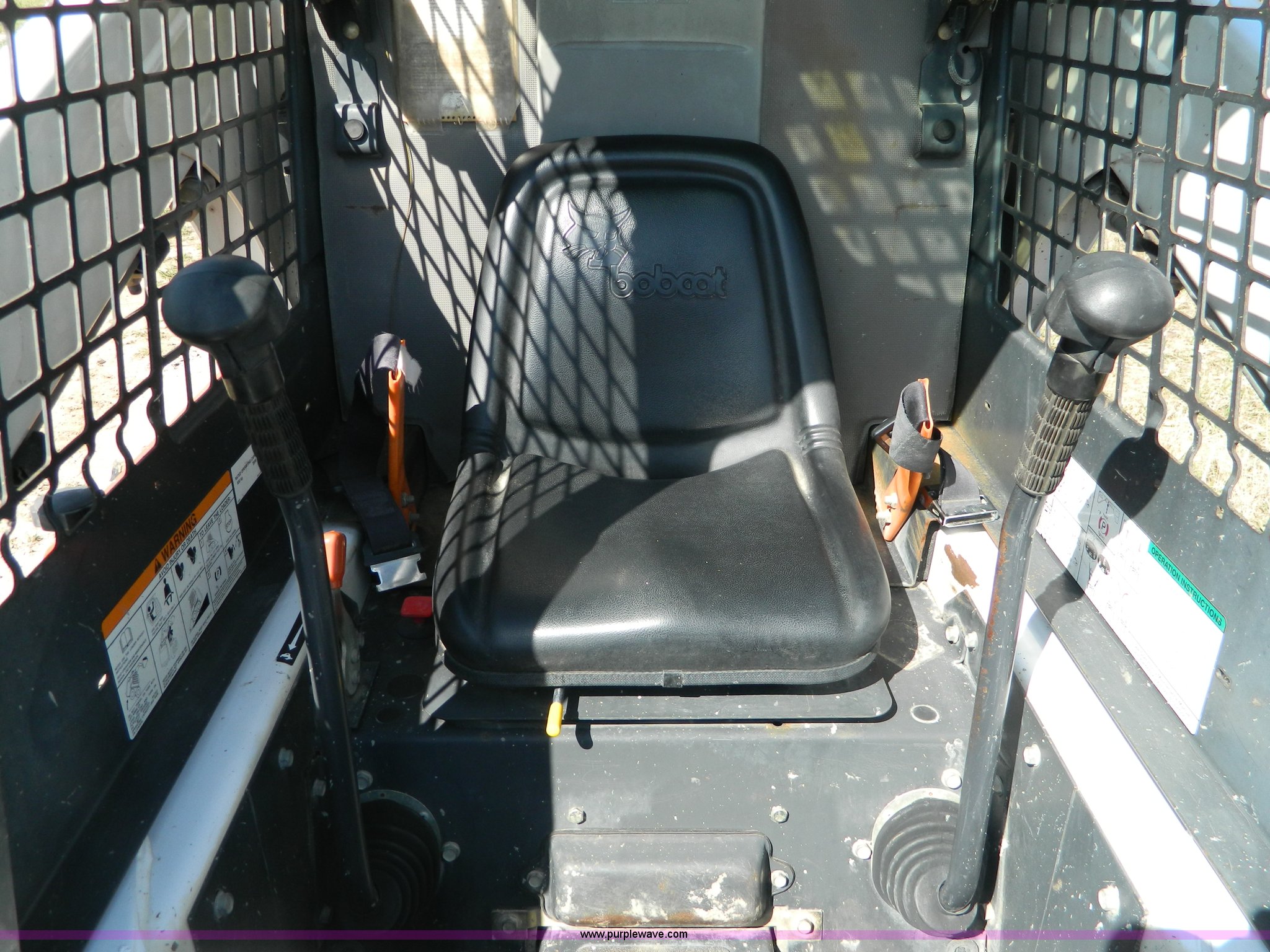 Purple Wave is selling a used Skid Steer Loader in Kansas. This item is a 2005 Bobcat S205 skid steer with the following: 1,624 hours on meter, Kubota V2403 four cylinder turbo diesel engine, Serial 0440088, Hydrostatic transmission, Hand and foot controls, 6'W bucket, Weld-on cutting edge, High flow auxiliary hydraulics, Manual quick coupler, Bobcat 10-16.5 tires, 6,655 lbs. base operating weight, Unit serviced at 1,614 hours, Serial 528412135