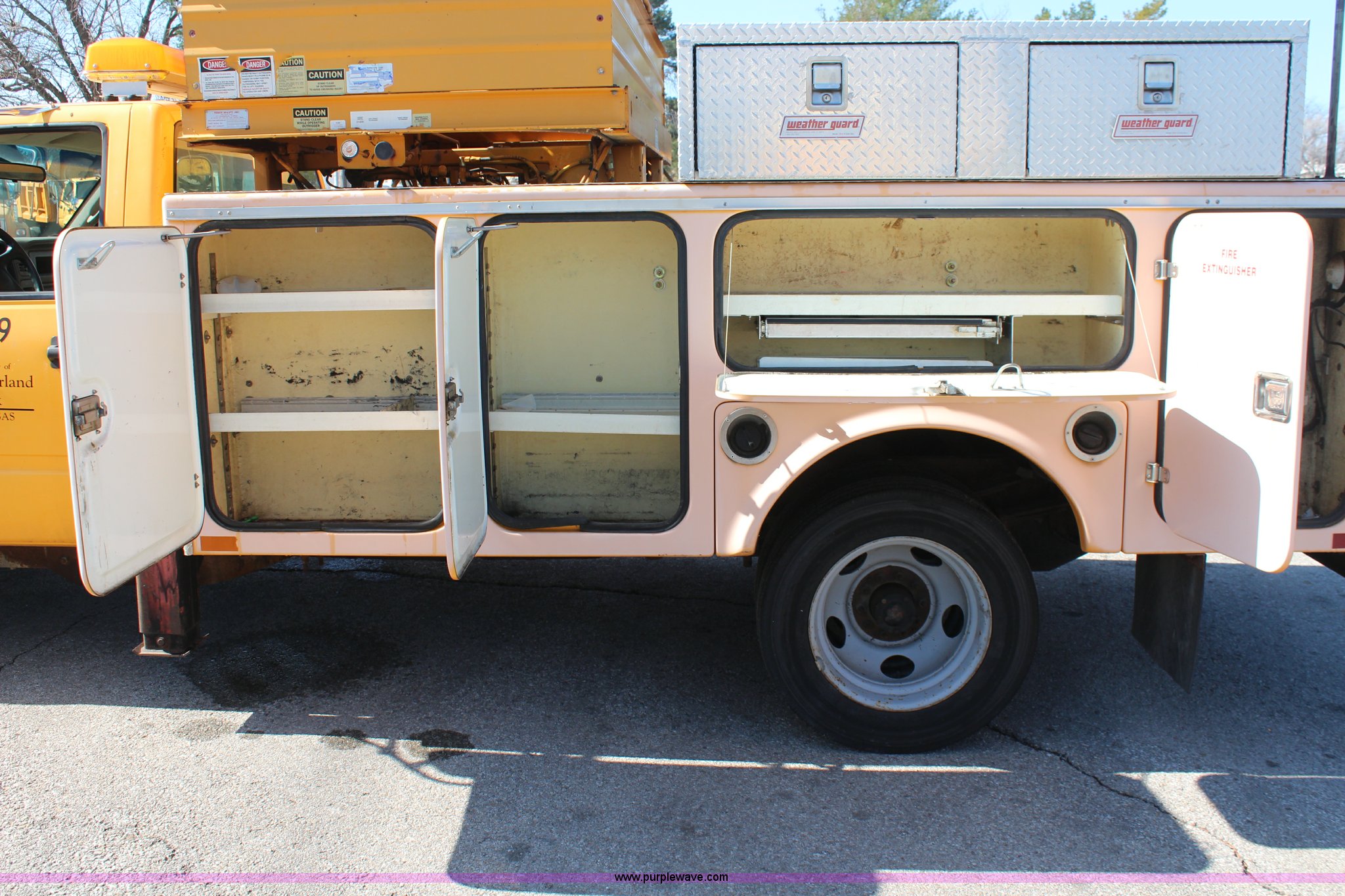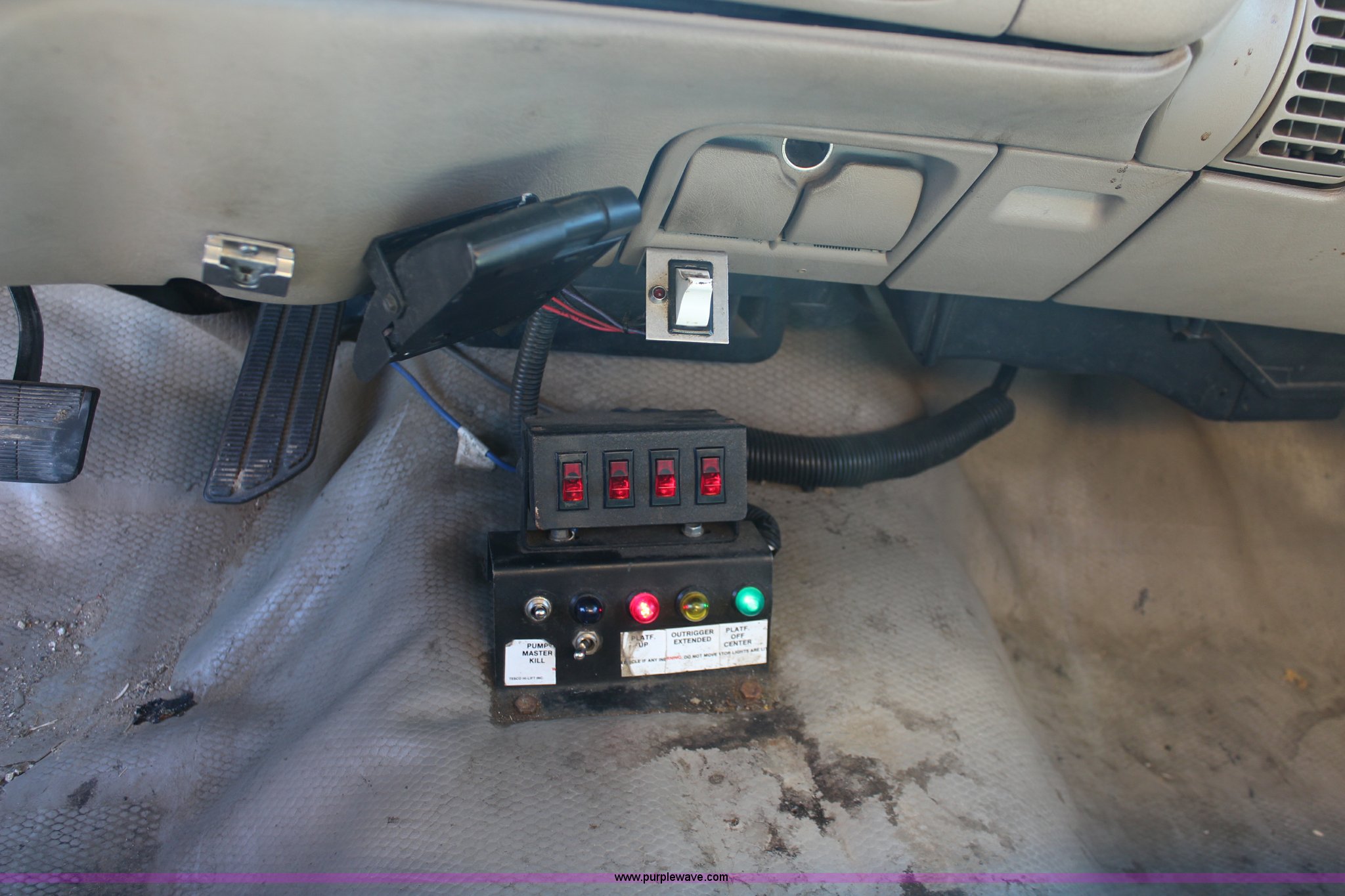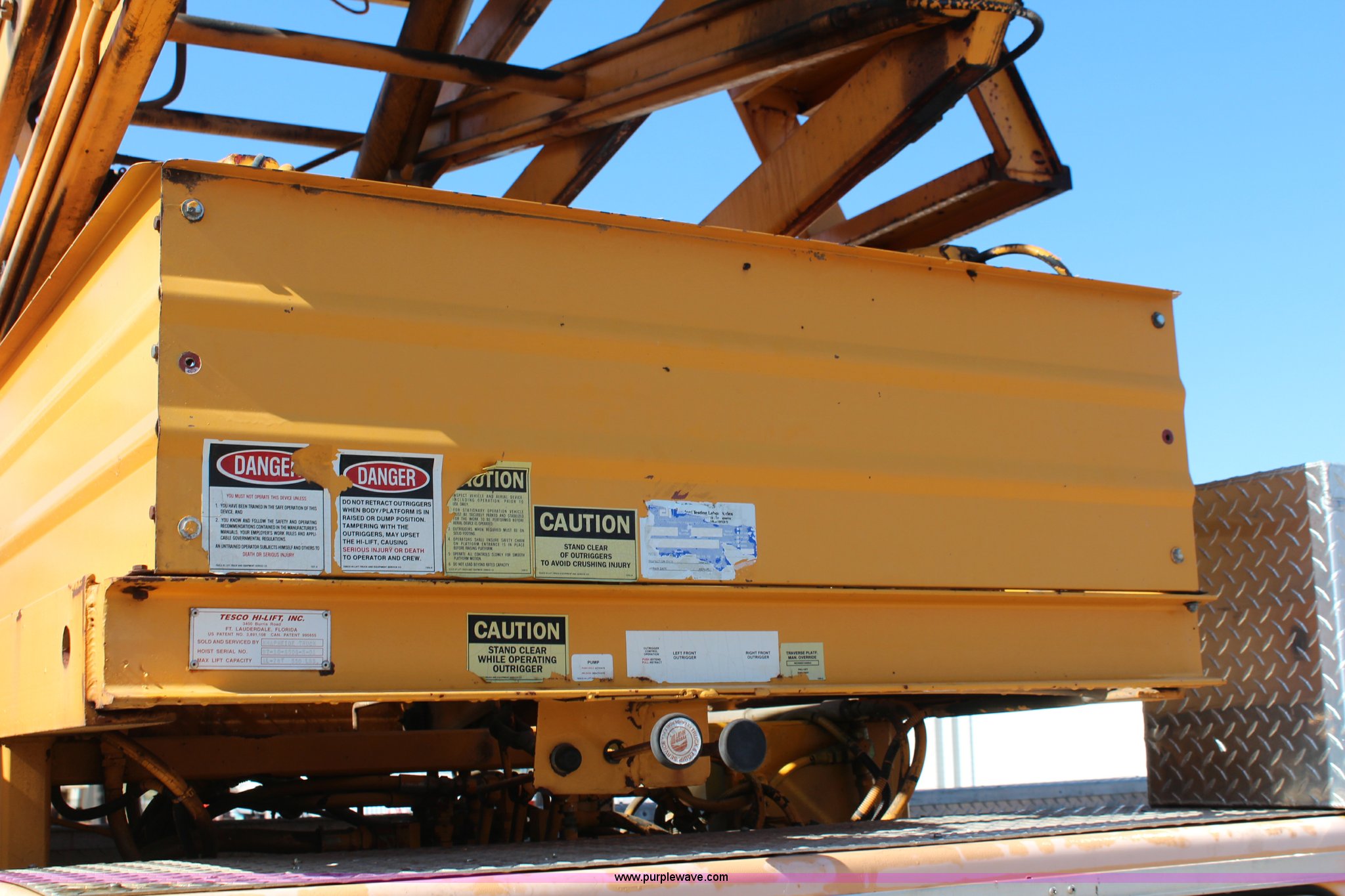 Purple Wave is selling a used Service Truck in Kansas. This item is a 1998 GMC Sierra 3500HD utility truck with scissor lift with the following: 92,748 miles on odometer, 6,419 hours on meter, 6.5L V8 OHV 16V diesel engine, Automatic transmission, AC and heat, Tilt, AM/FM, Manual windows and locks, Vinyl interior, Fibre utility bed, 11'L, Tesco Hi-Lift scissor lift, Model AL-28T, 550 lbs capacity, Serial 97-10-6506-K-01, Outriggers, Pintle hitch, Engine mounted hydraulic pump, 225/70R19.5 tires, Unit# 649
