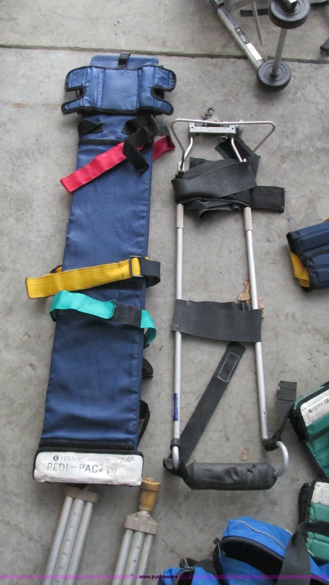 Purple Wave is selling a used Medical Equip. in Missouri. This item is a Assorted medical bags and equipment with the following: (2) portable chairs, Crutches, Pedi-pak children's spinal immobilization unit, Folding stretcher