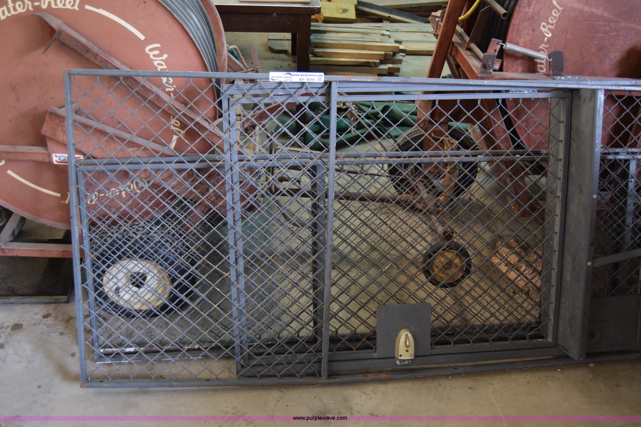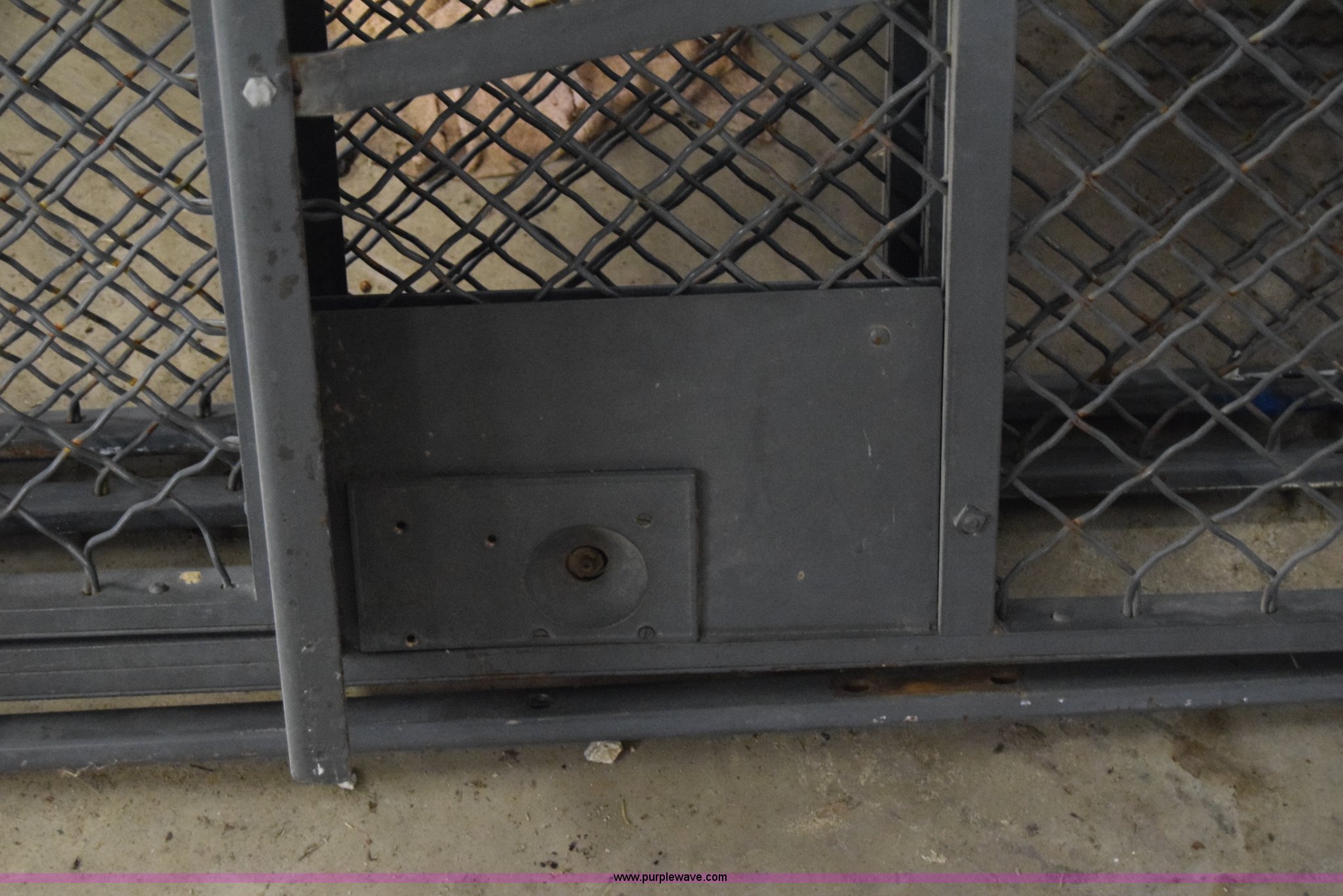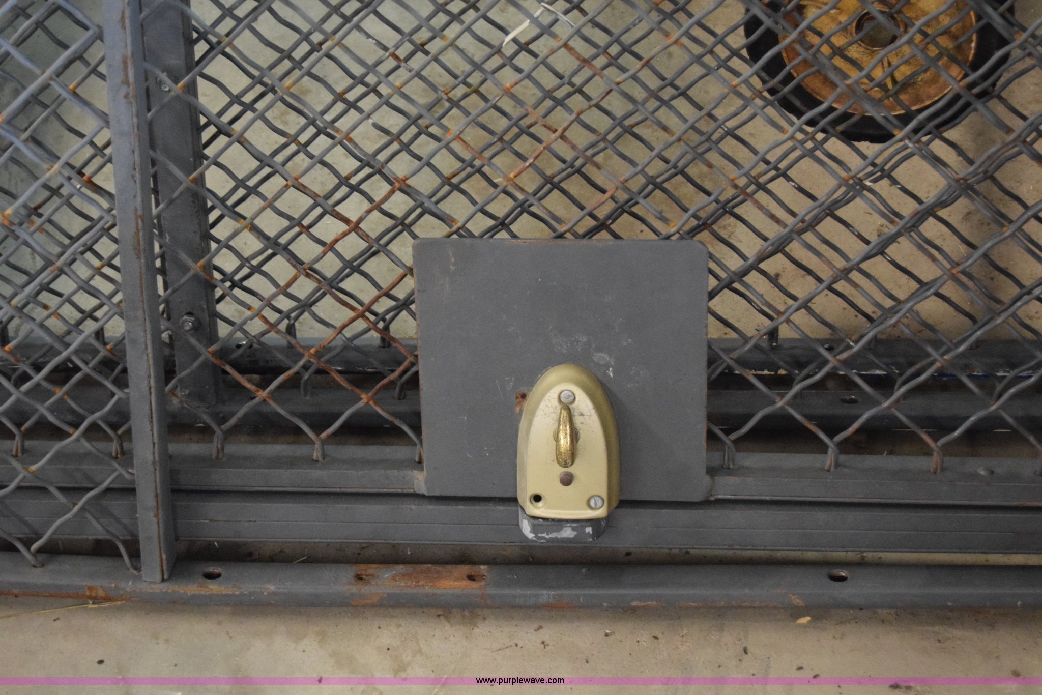 Purple Wave is selling a used Shelving and Storage in Kansas. This item is a Wire cage wall with the following: 7'3"W x 9'4"H, Swing entry door, Lock