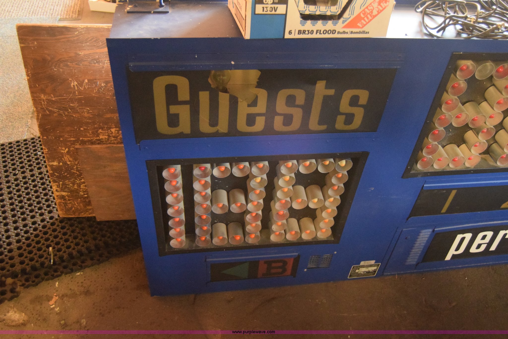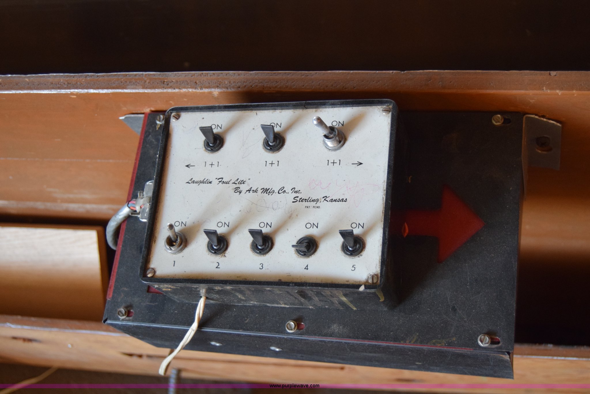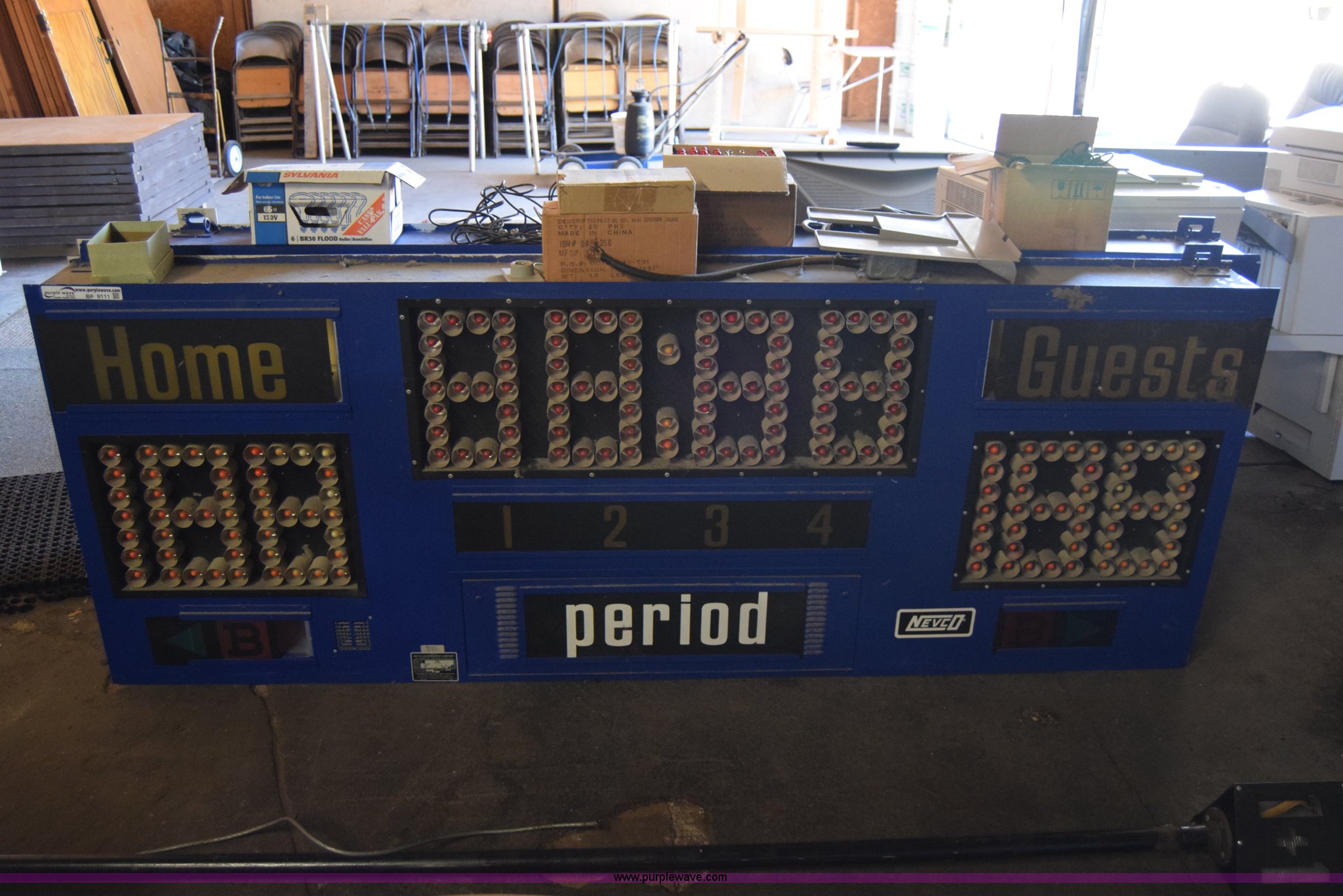 Purple Wave is selling a used Sporting Goods in Kansas. This item is a Assorted scoreboards with the following: (2) football, 8'W x 3'H x 8"D, Basketball foul indicator light, 13'H, Score table control, Light controls, Bonus foul indicator lights and accessories