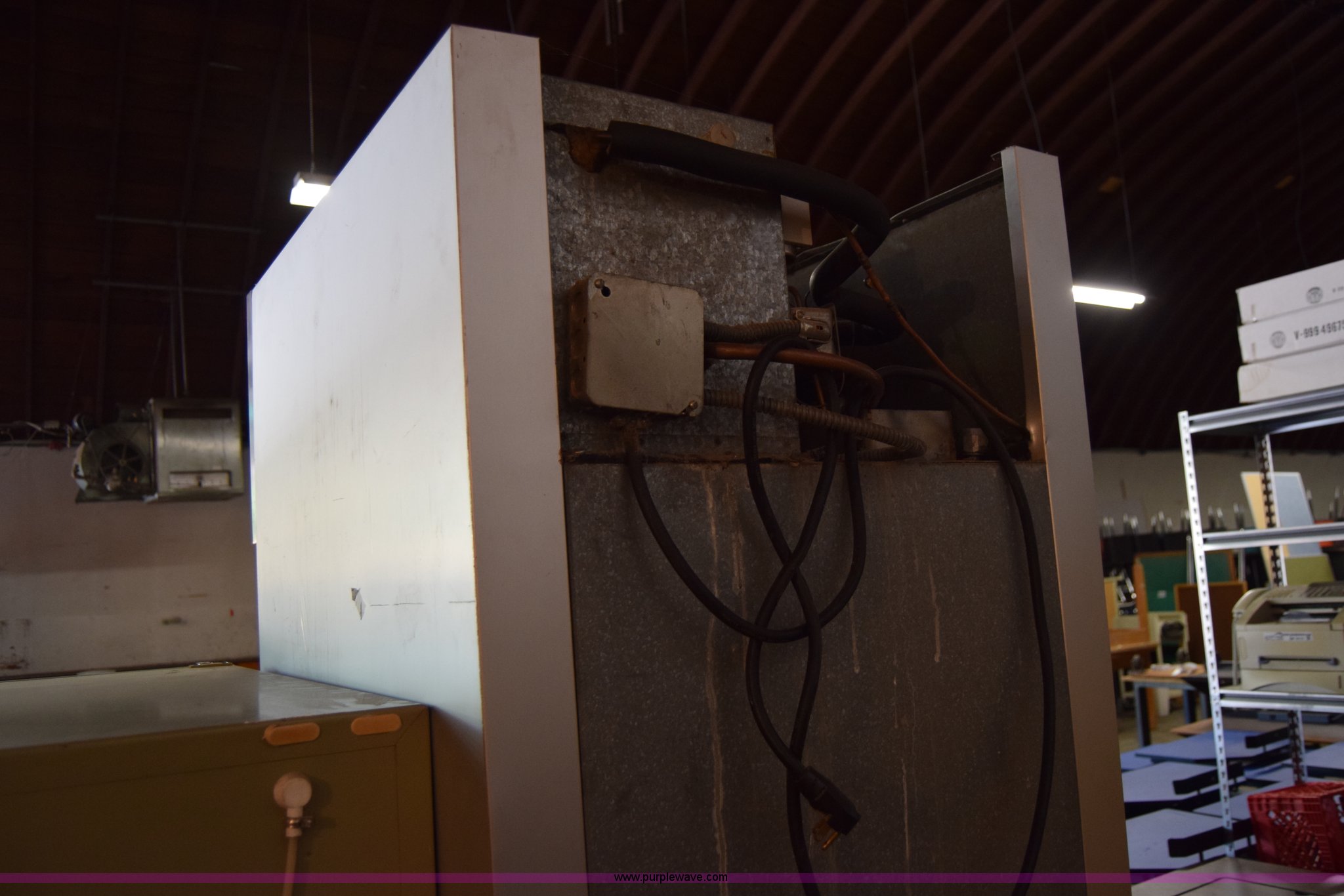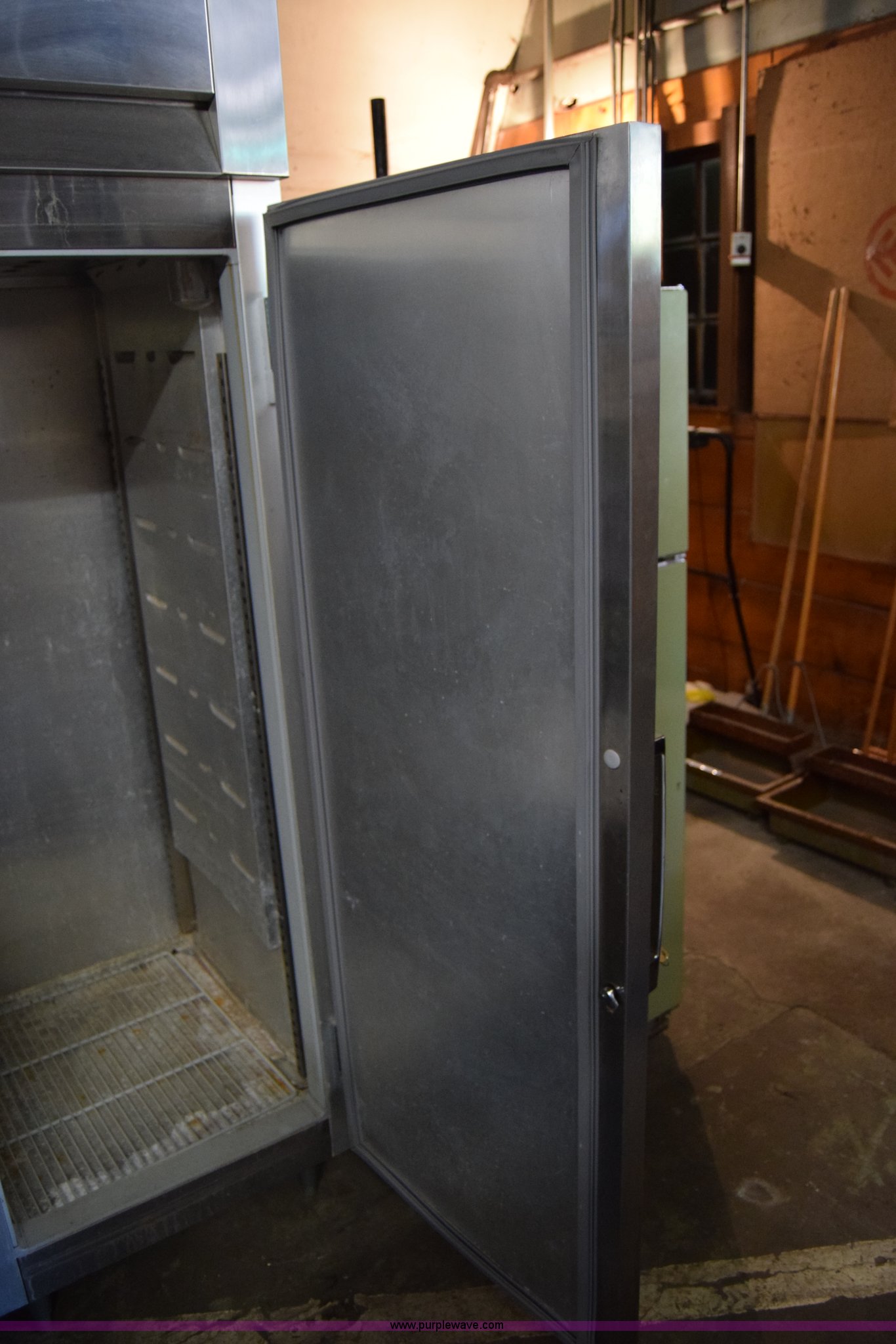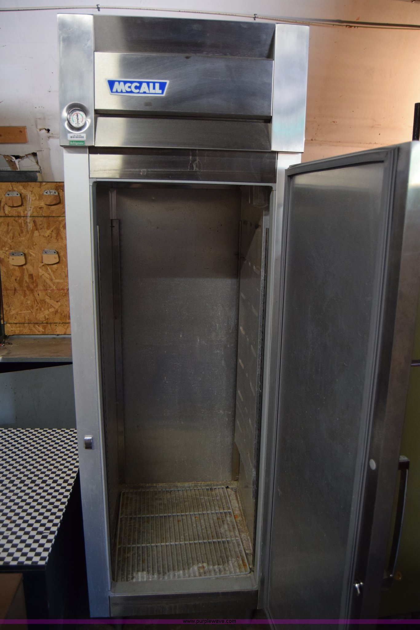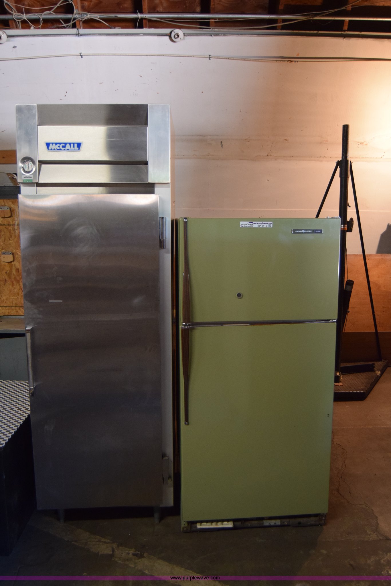 Purple Wave is selling a used Restaurant Equip. in Kansas. This item is a (2) refrigerators with the following: McCall commercial, Stainless steel, 28"W x 7"H x 36"D, Unknown operating condition, General electric, 30"W x 65"H x 30"D, Freezer door inoperable