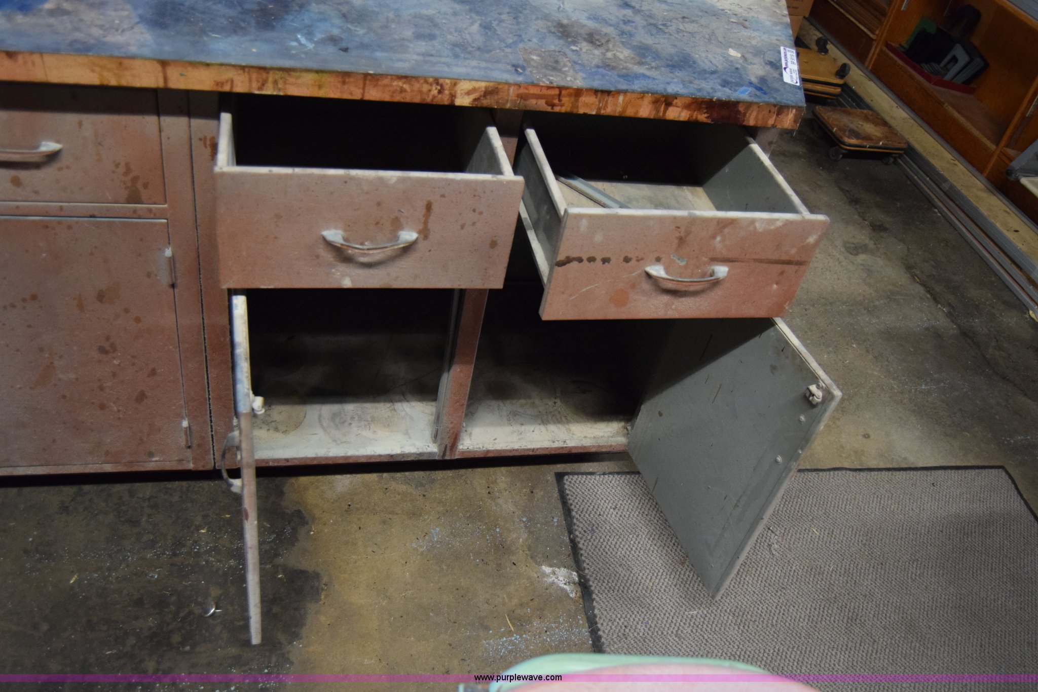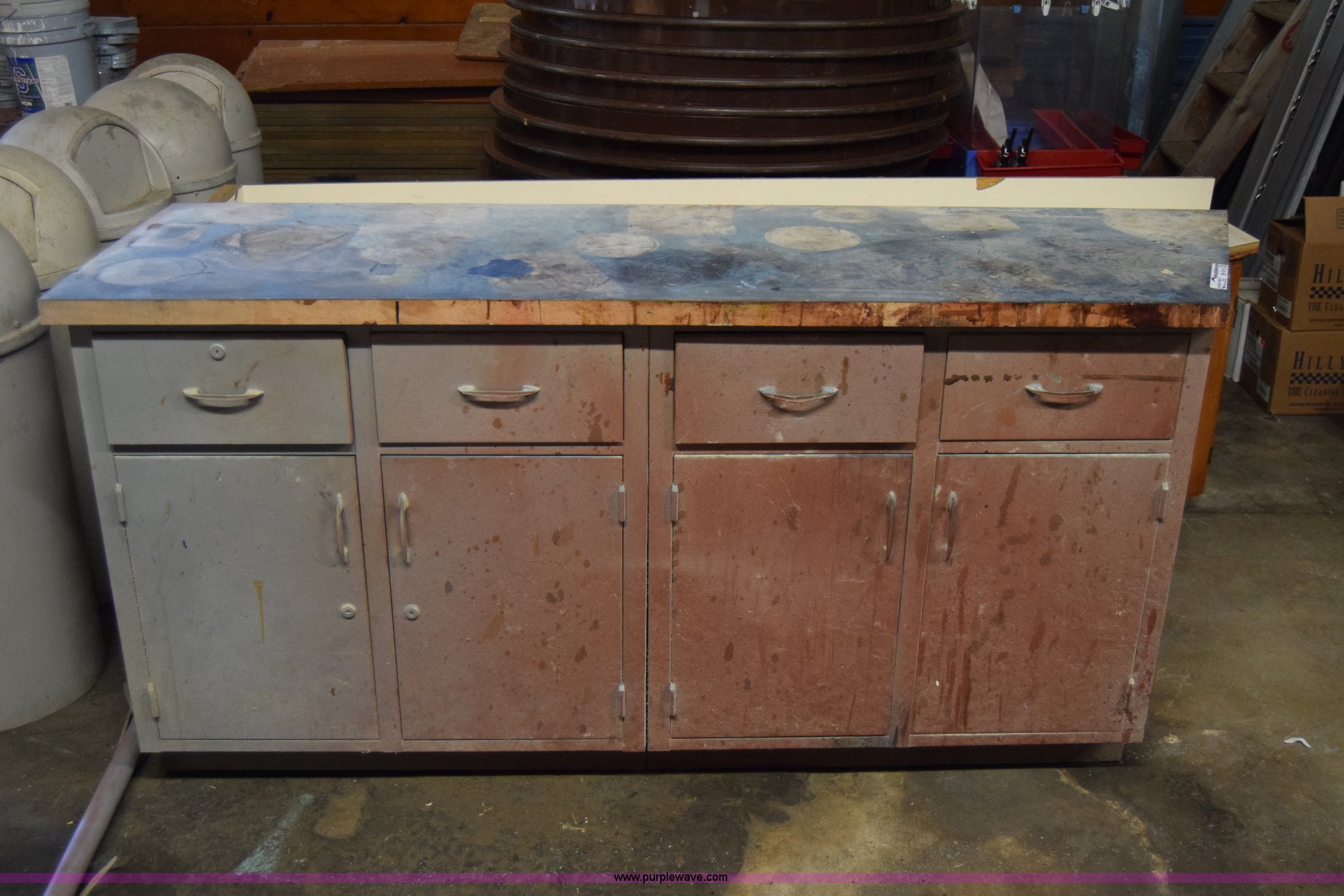 (2) cabinets. 80"L x 24"W x 37"H , 98"L x 20"W x 29"H, Cosmetic damage. 619 W 2nd. Halstead, KS 67056