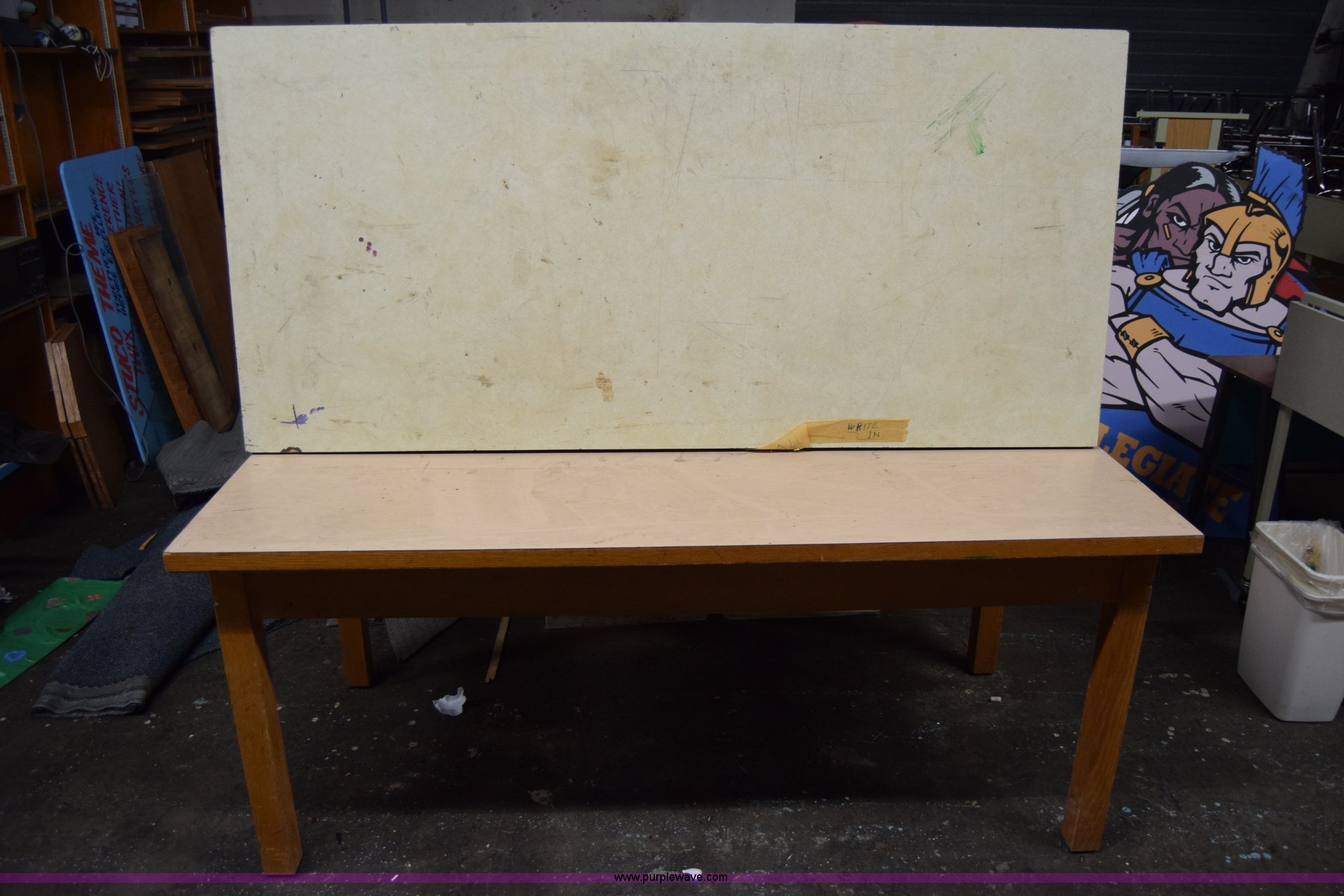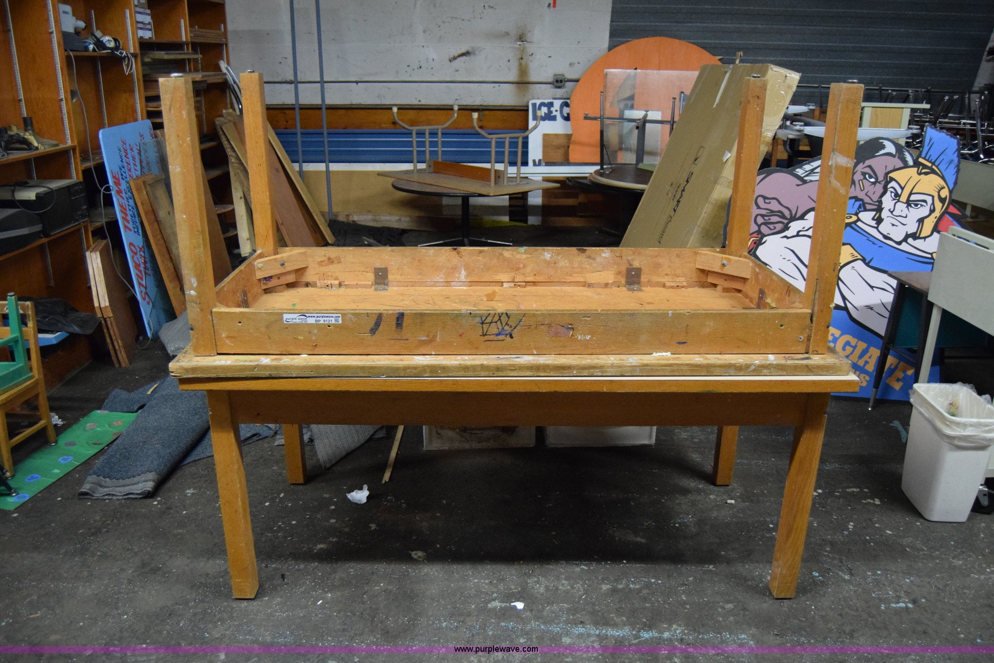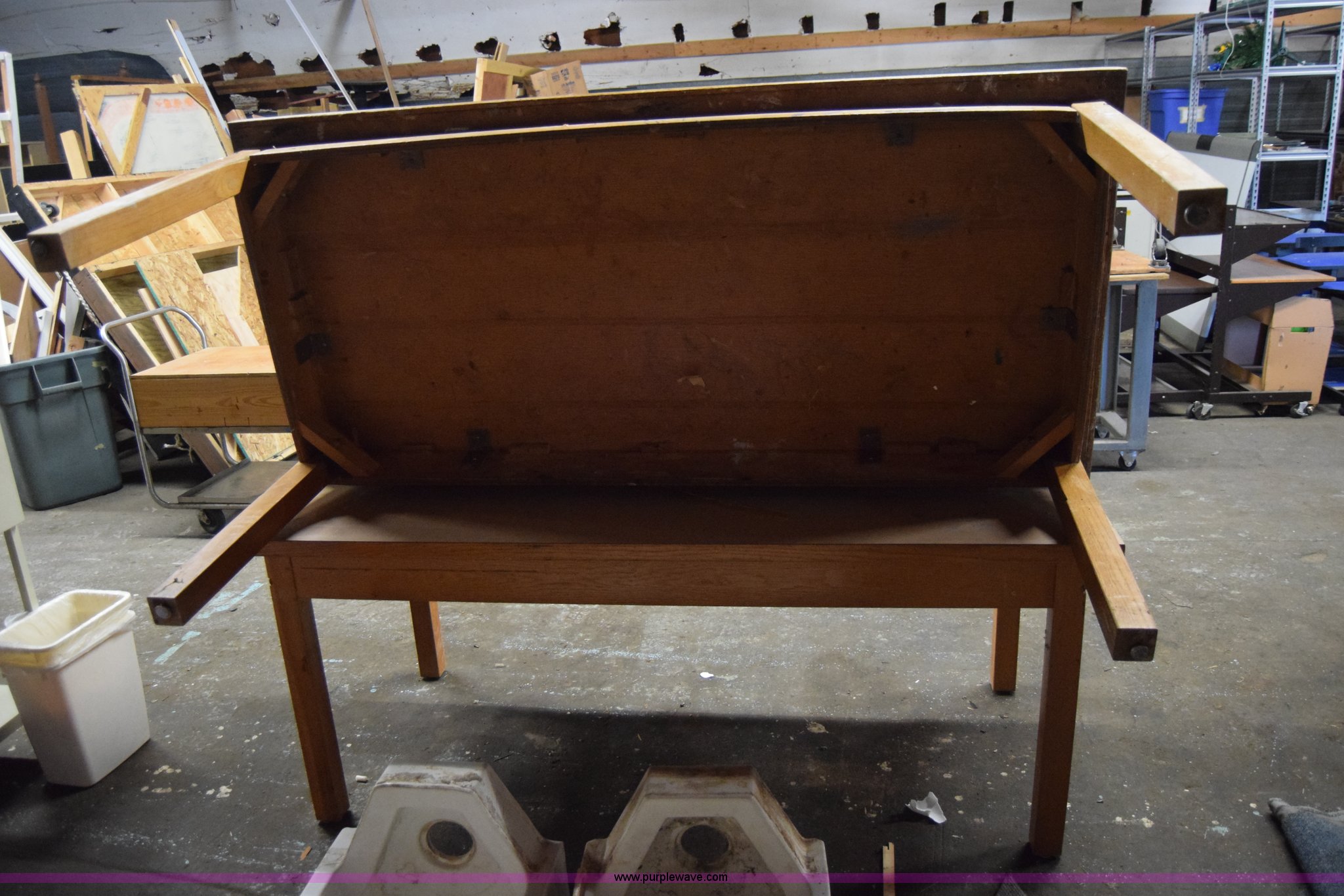 Purple Wave is selling a used Furniture in Kansas. This item is a (2) tables with the following: 6'L x 34"W x 34"H, Wood, Cosmetic damage