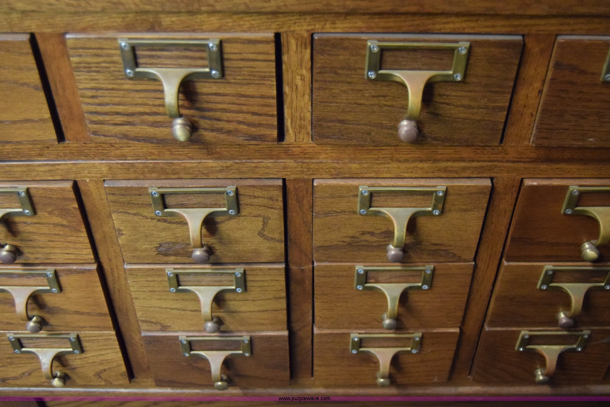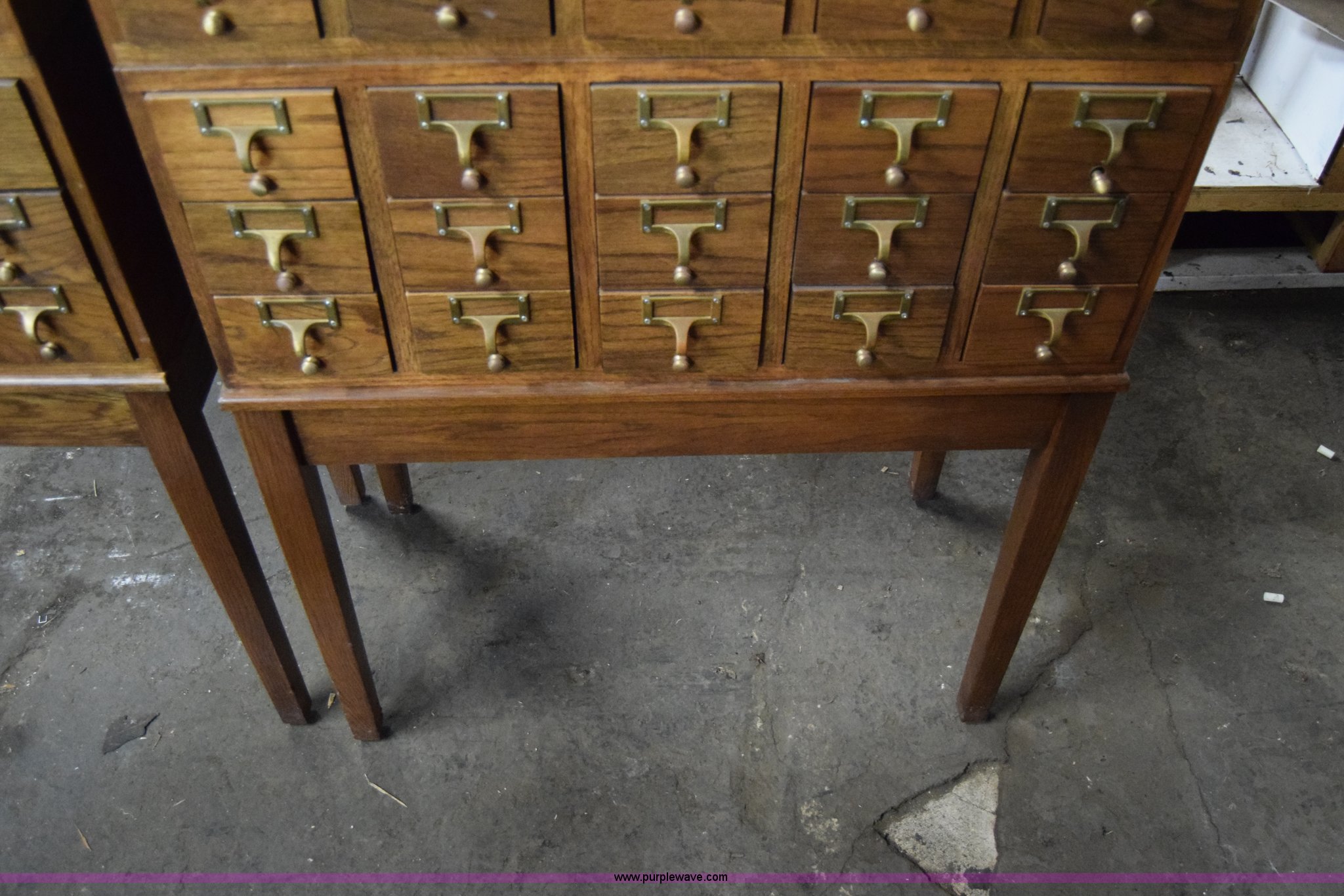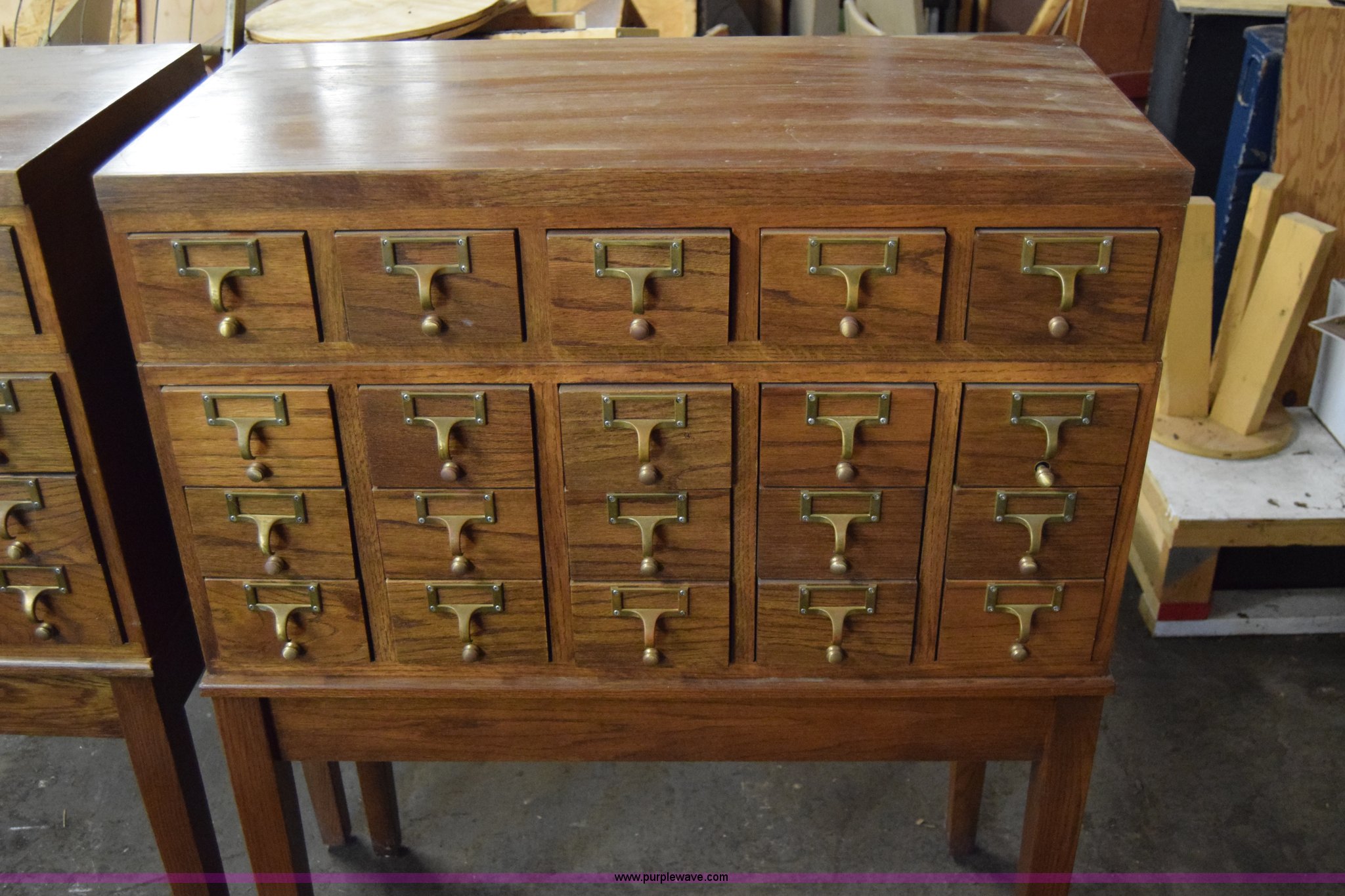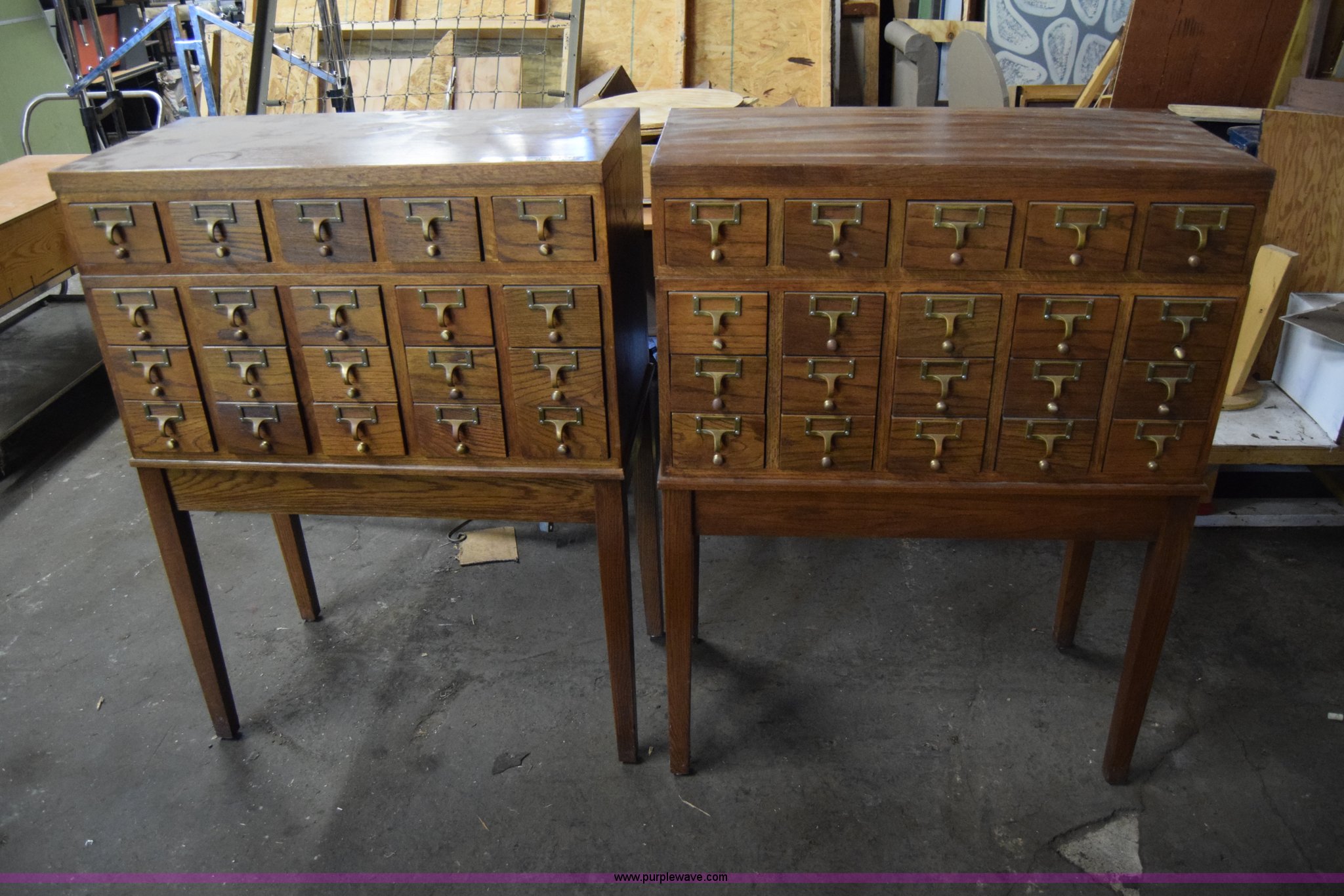 Purple Wave is selling a used Office Supplies and Equip. in Kansas. This item is a (2) note card filing cabinets with the following: Wood, (20) drawers, 34"W x 46"H x 17"D