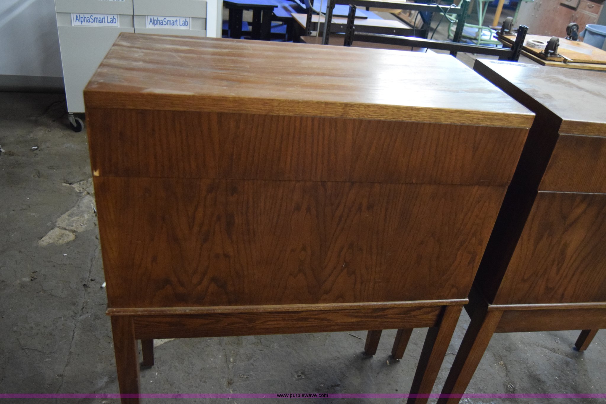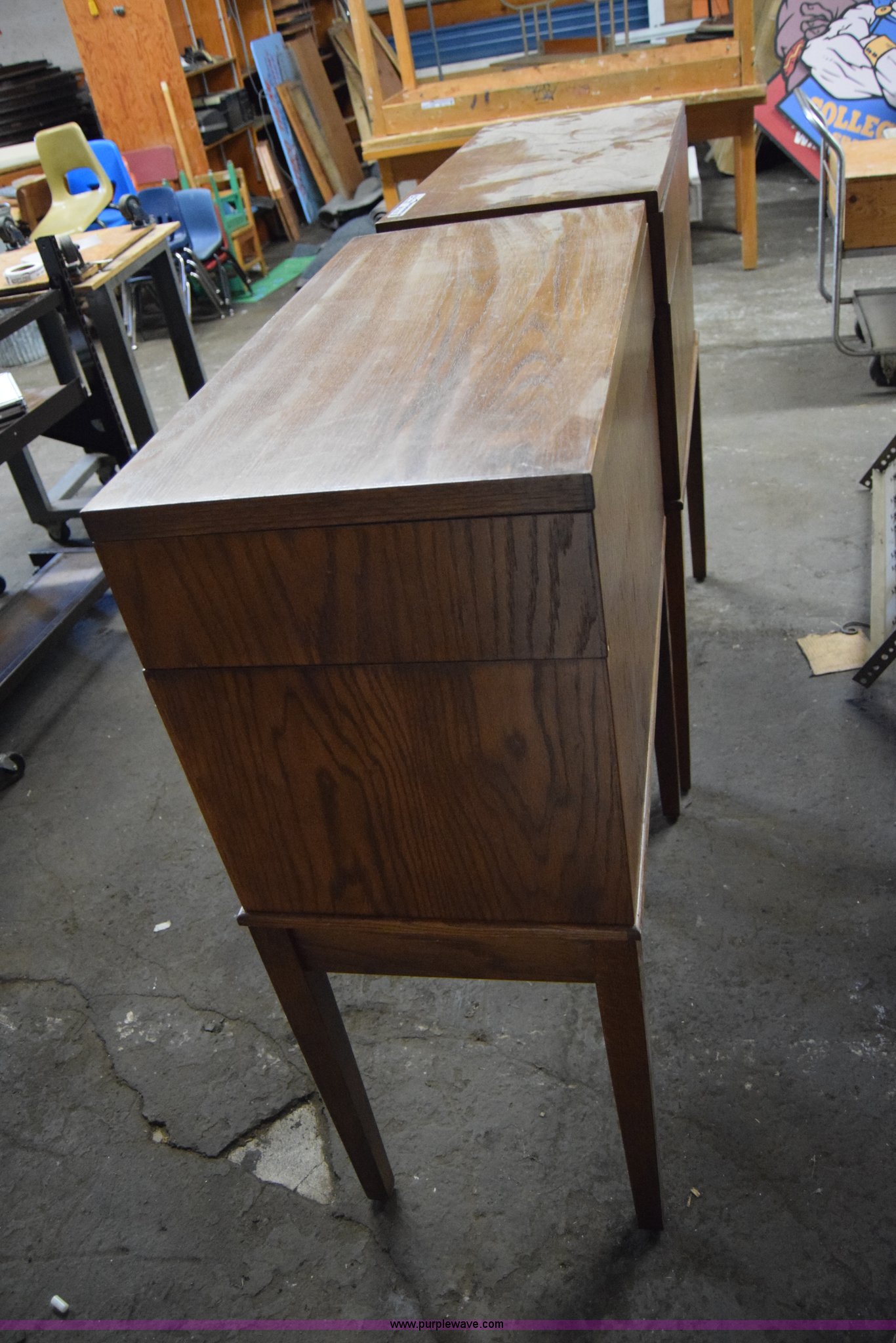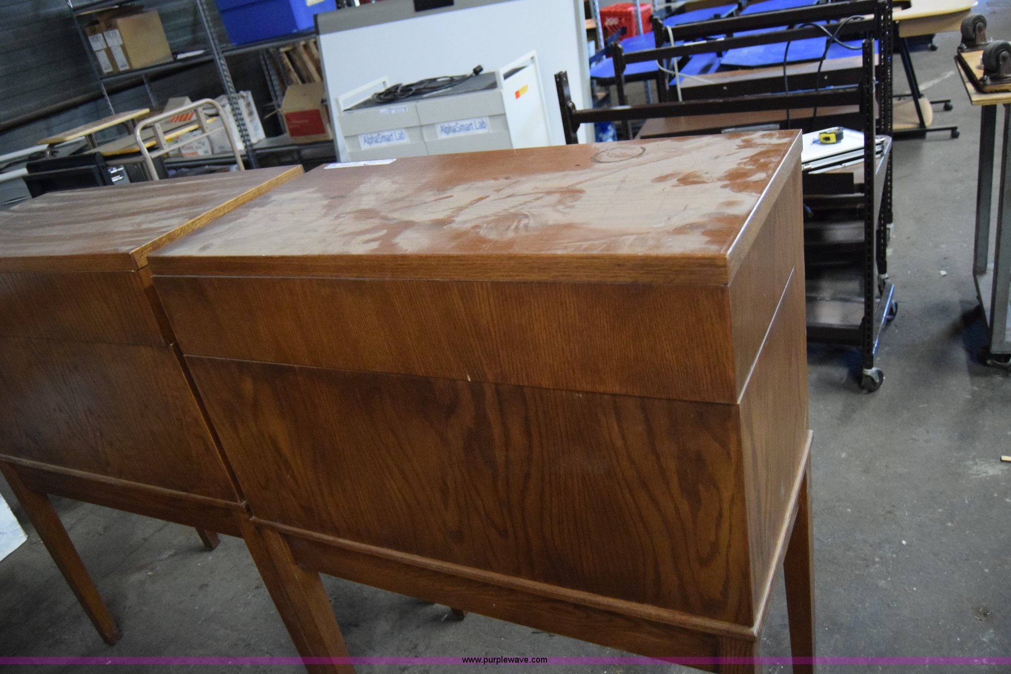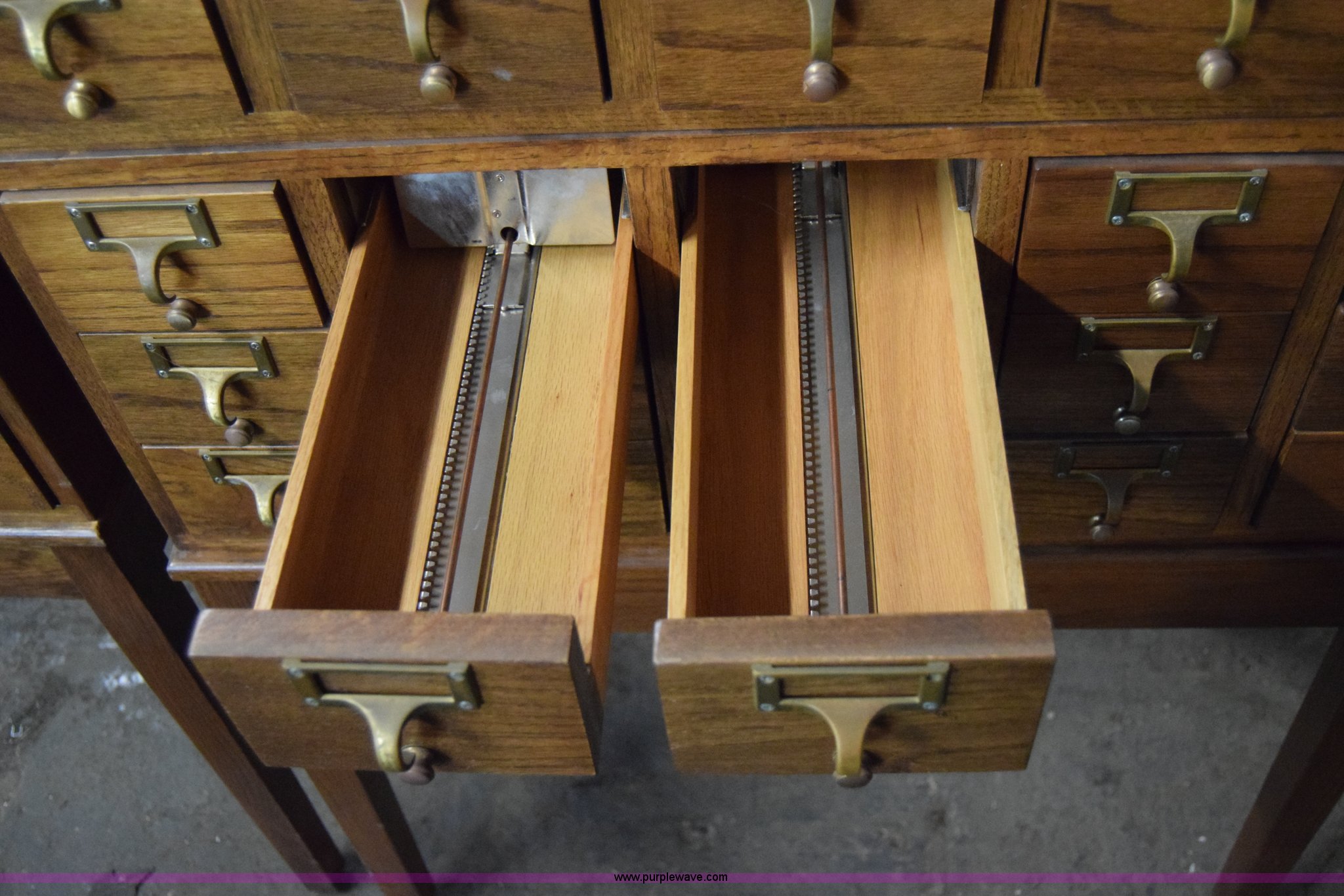 Purple Wave is selling a used Office Supplies and Equip. in Kansas. This item is a (2) note card filing cabinets with the following: Wood, (20) drawers, 34"W x 46"H x 17"D