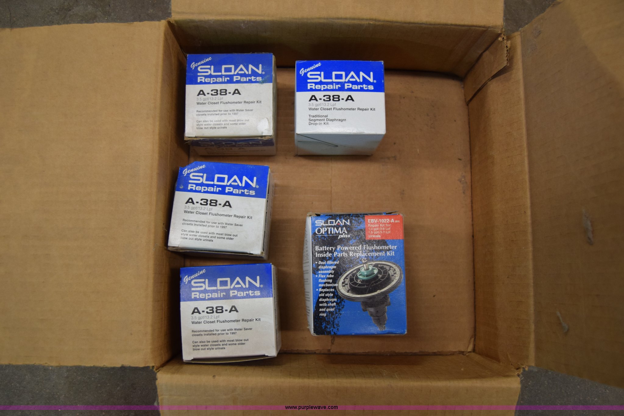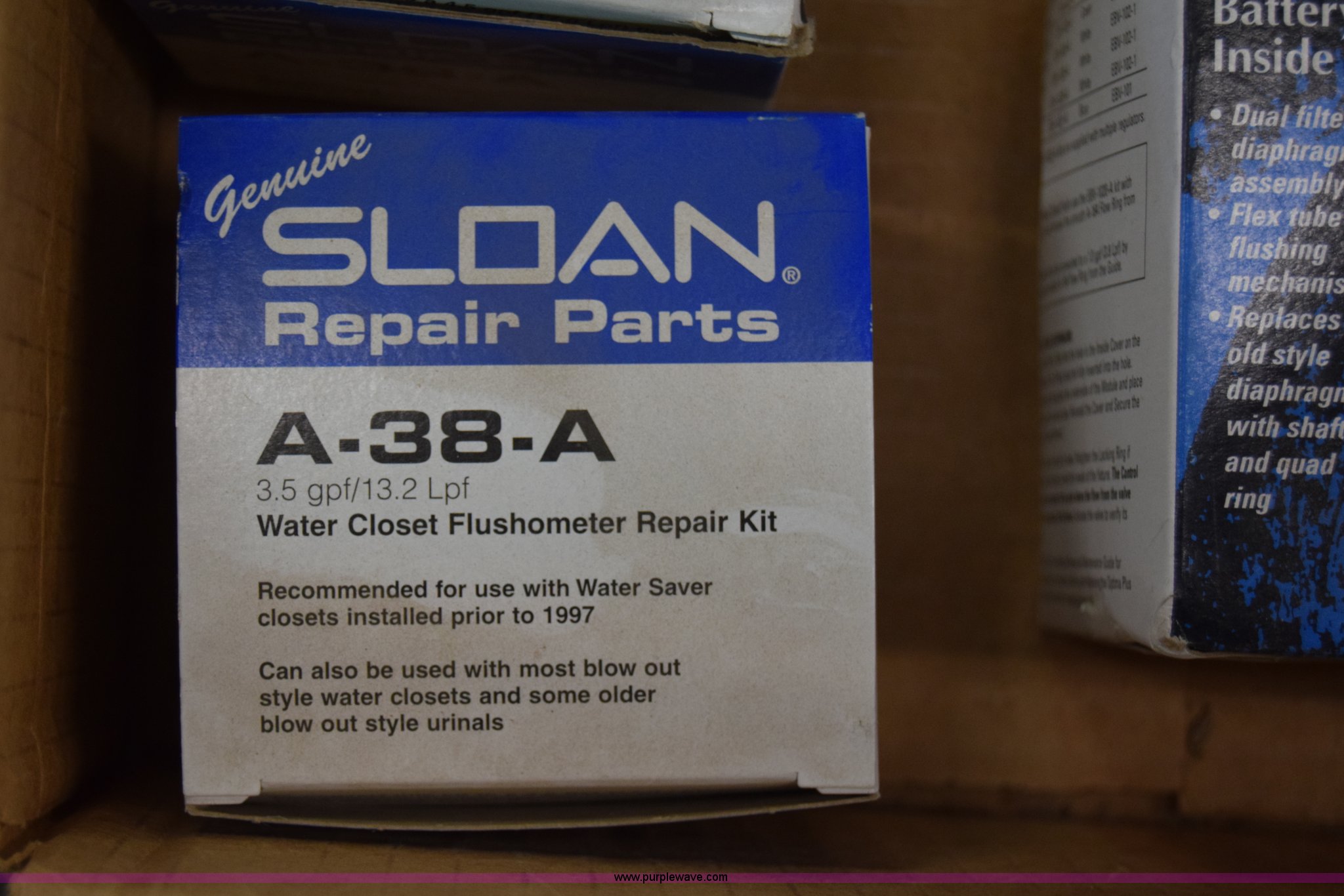Purple Wave is selling a used Building Materials in Kansas. This item is a Assorted Sloan Flushometer hardware with the following: (4) Sloan A-38-A Flushometer repair kits, Sloan Flushometer inside parts replacement kit, (2) Sloan Flushometers, Model 110