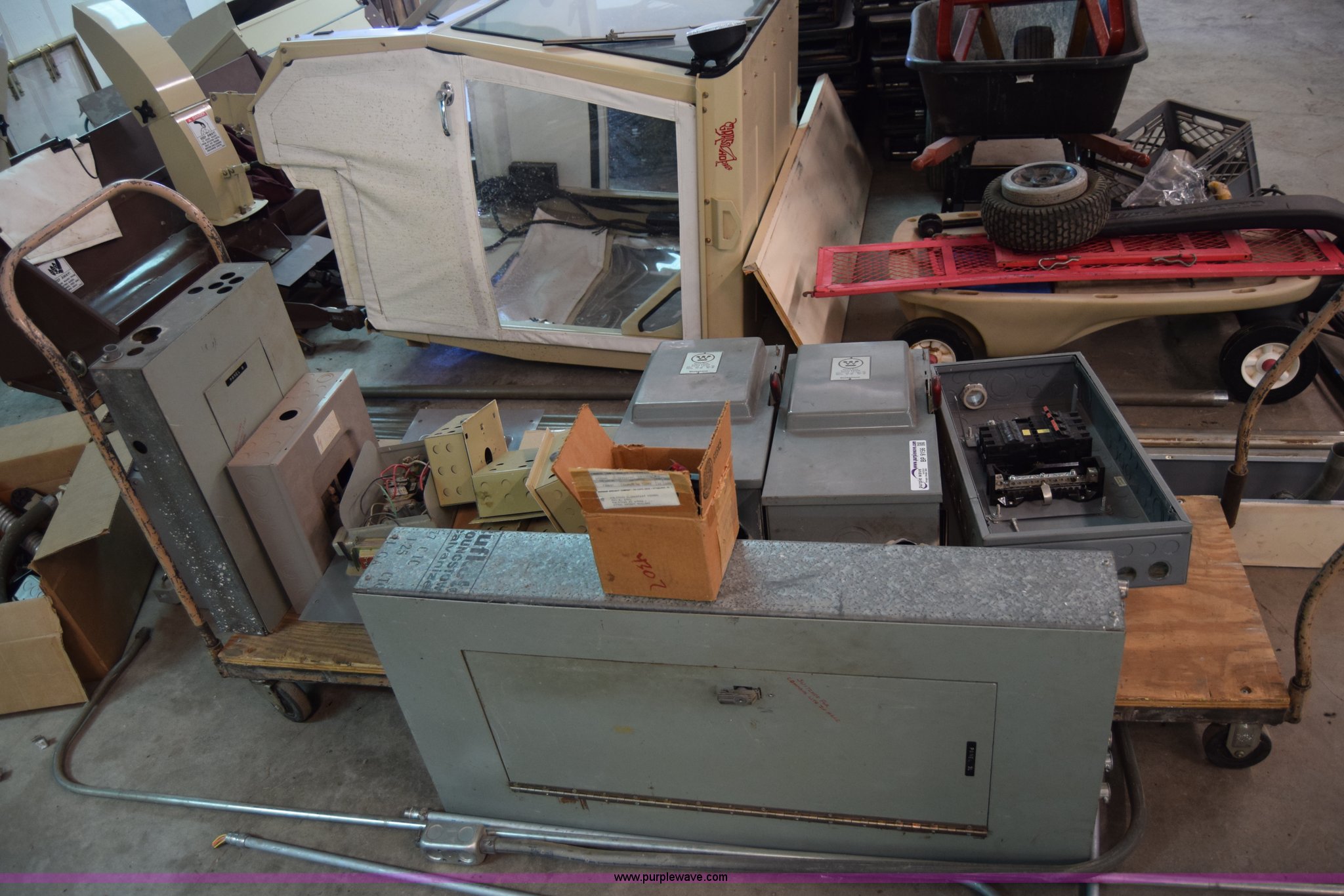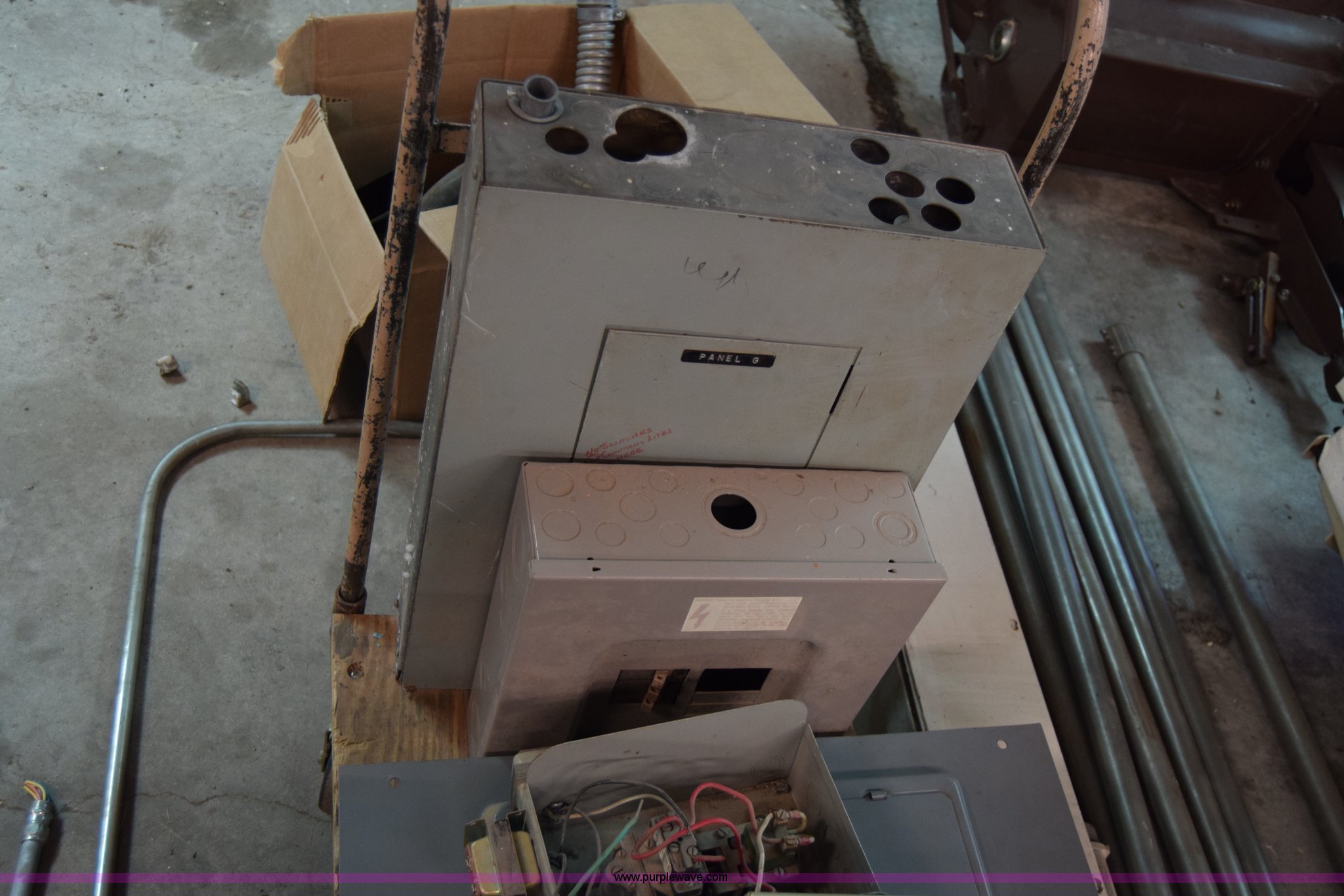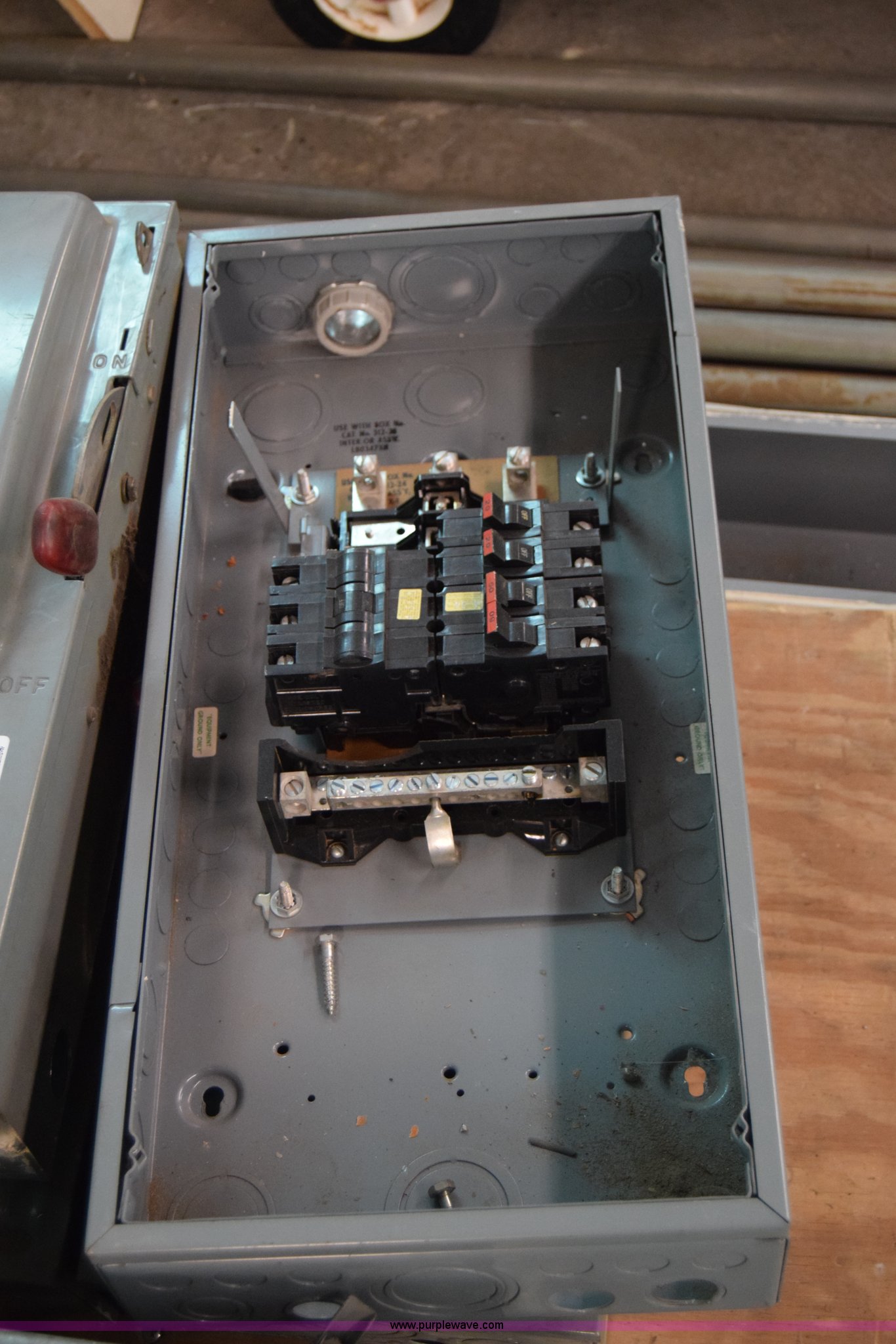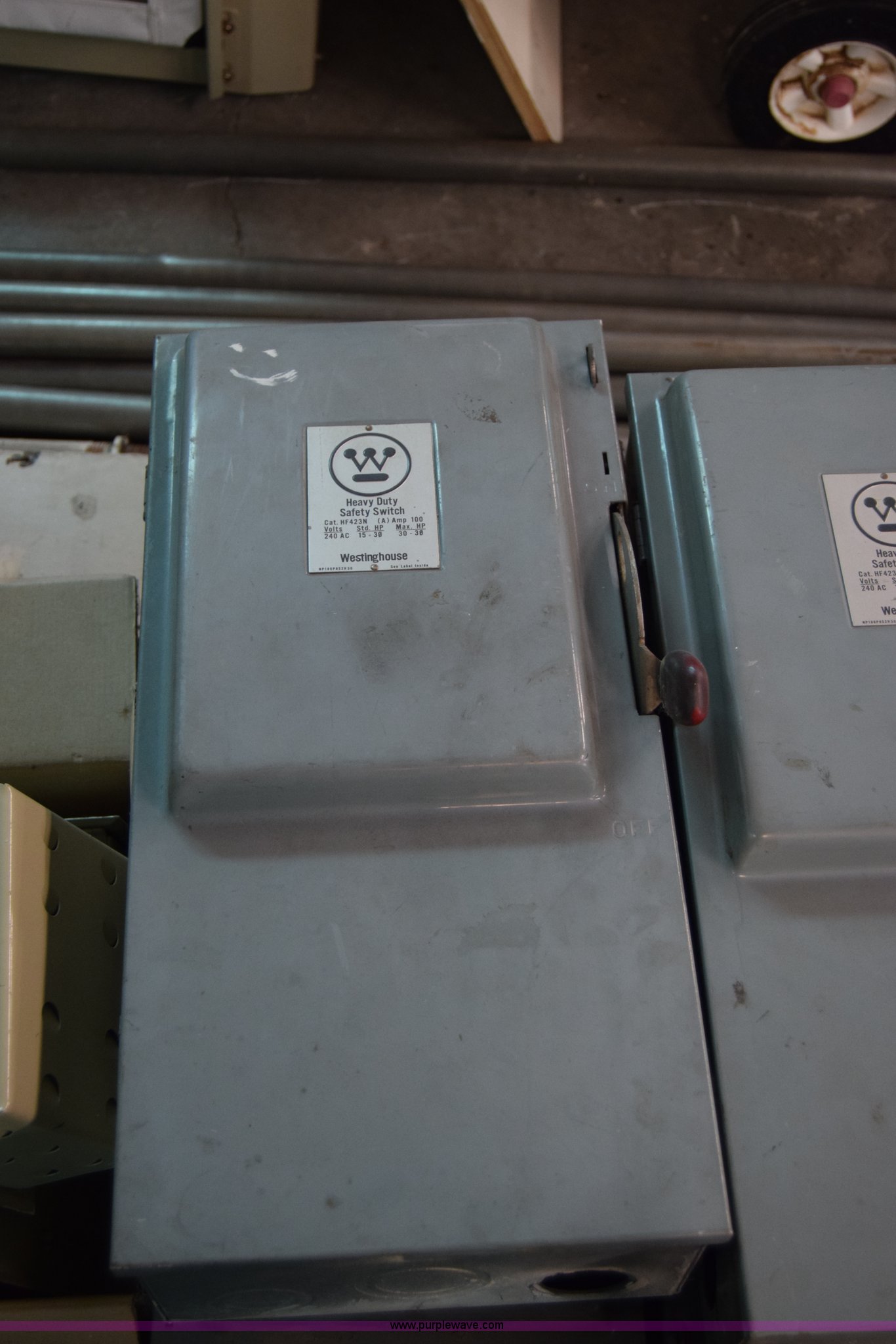 Purple Wave is selling a used Building Materials in Kansas. This item is a Assorted electrical boxes with the following: (5) Westinghouse safety switches, Westinghouse breaker box, Assorted empty electrical boxes