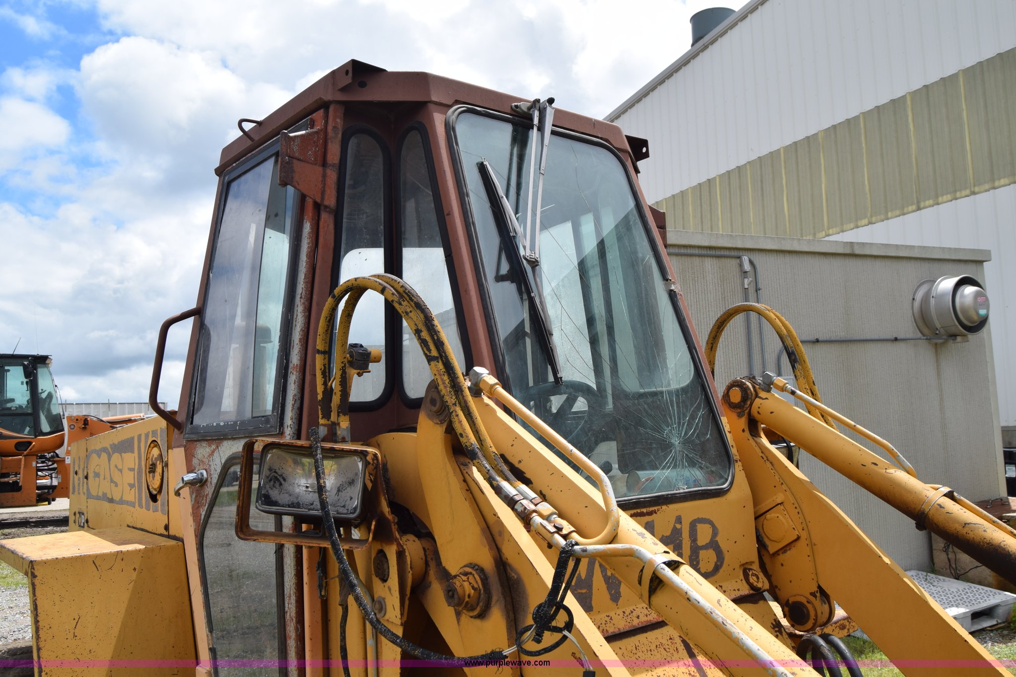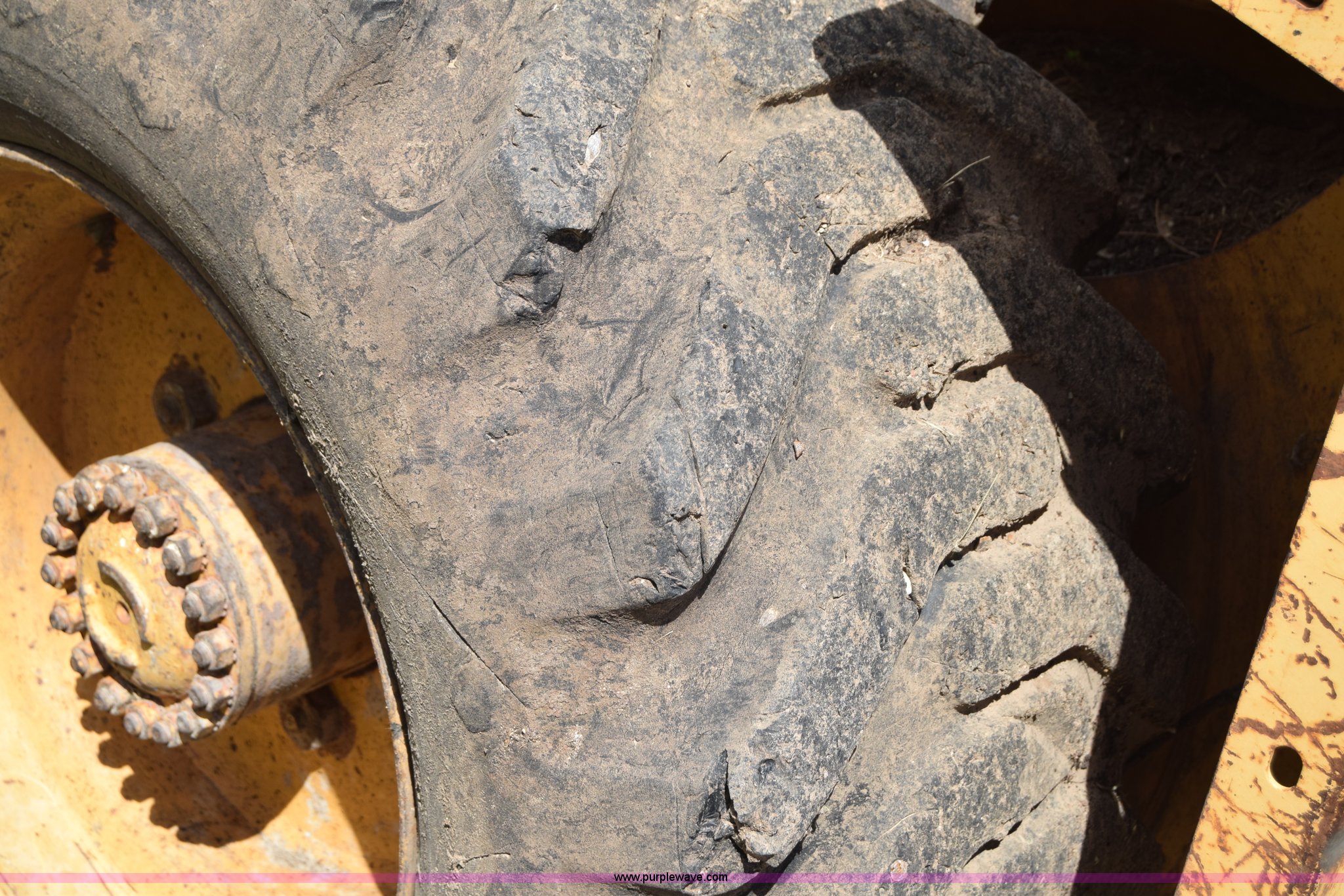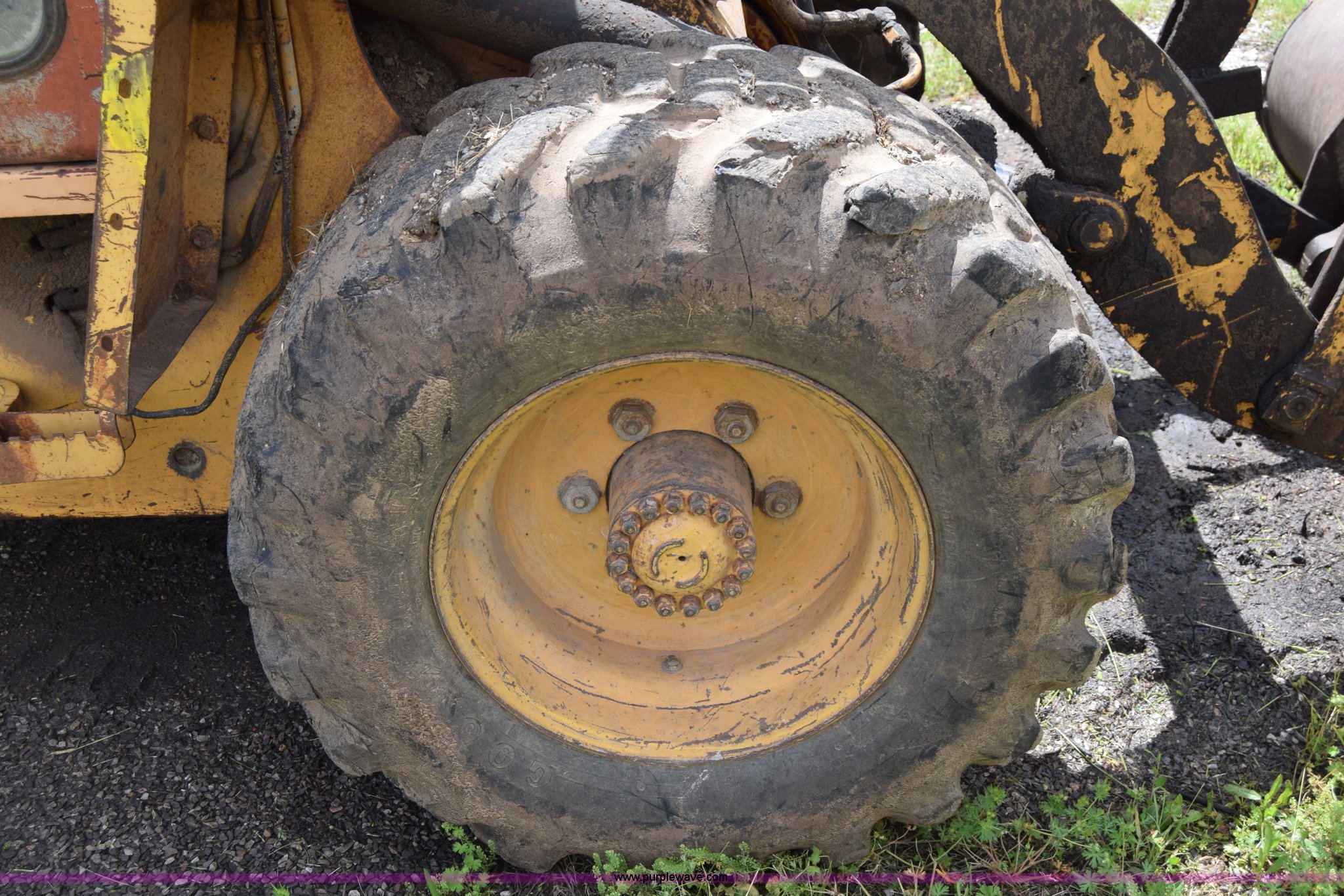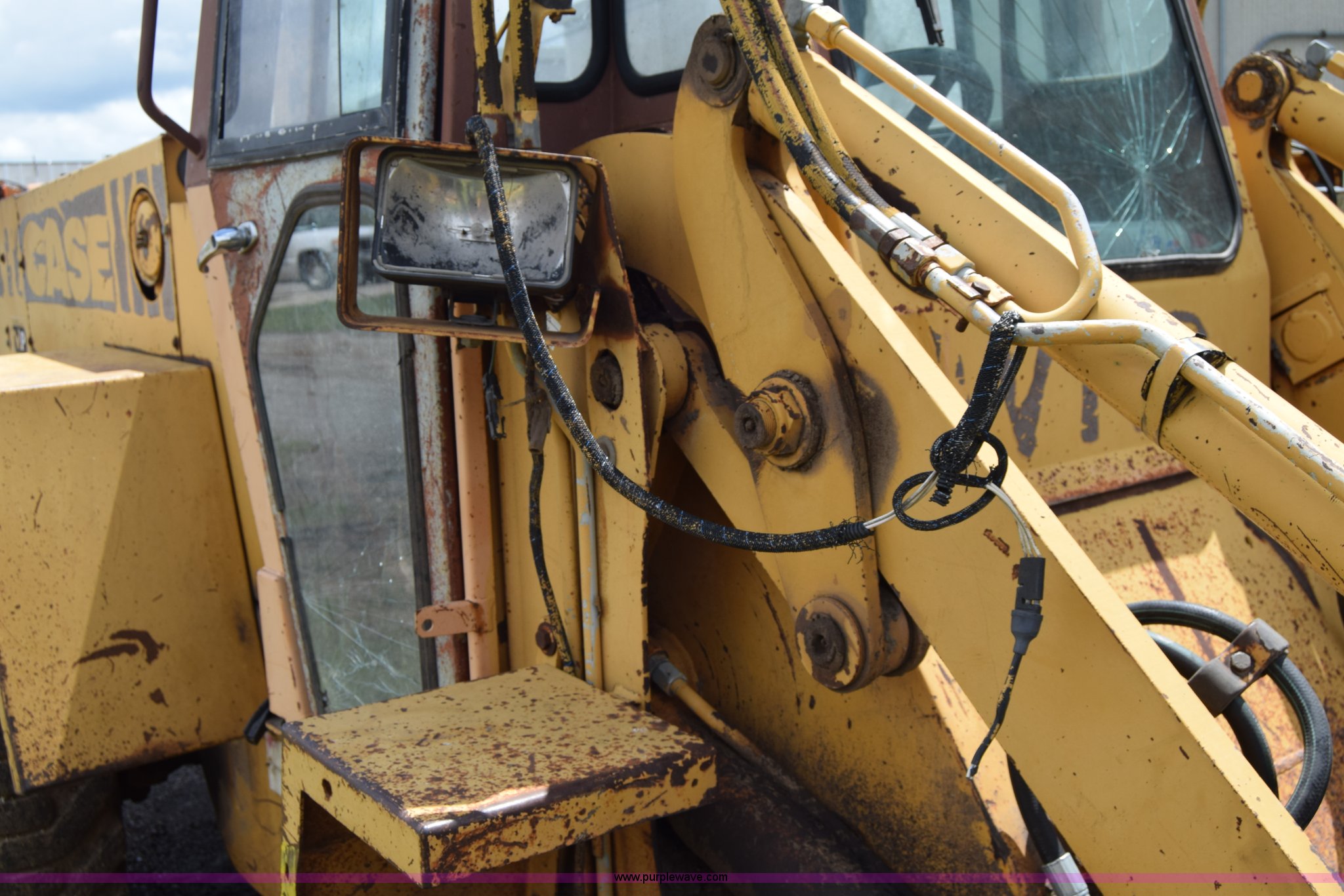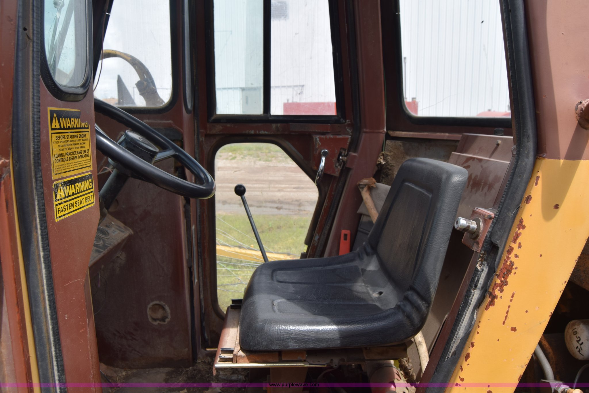 Purple Wave is selling a used Wheel Loader in Kansas. This item is a 1989 Case W11B wheel loader with the following: 825 hours on meter, Four cylinder diesel engine, Shuttle shift transmission, 3F-3R gears, Cab, Suspension seat, Two stick loader control, Front work lights, 77"W loader bucket, 15-19.5 foam-filled tires, 10,849 lbs. base operating weight, Windows cracked, Wires loose in cab, Brakes weak, Dents and scratches, Serial JAK0017322