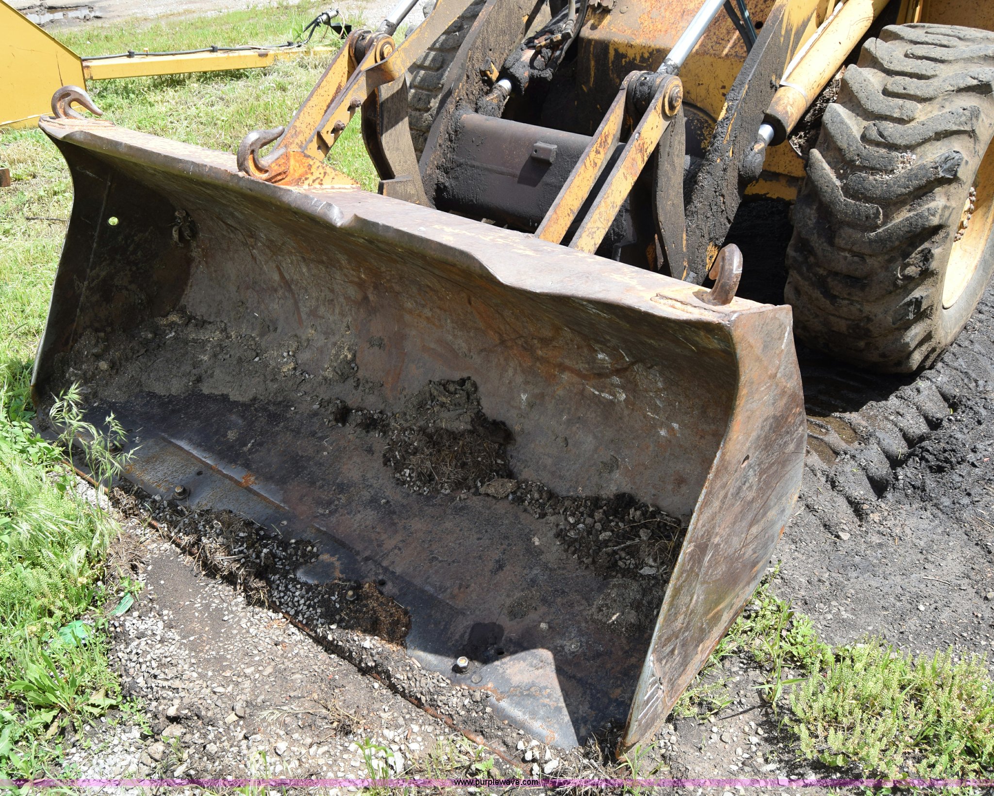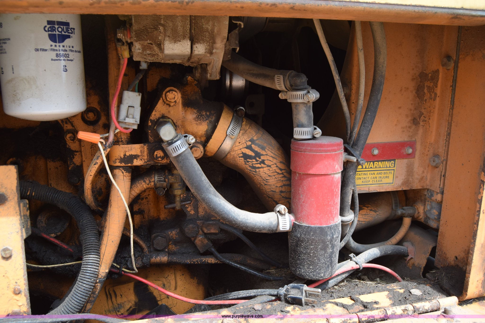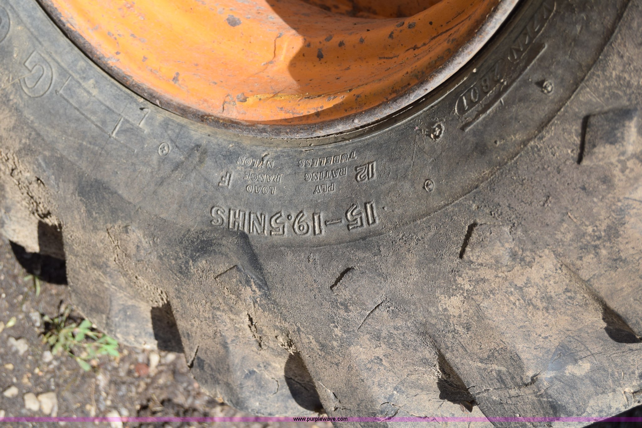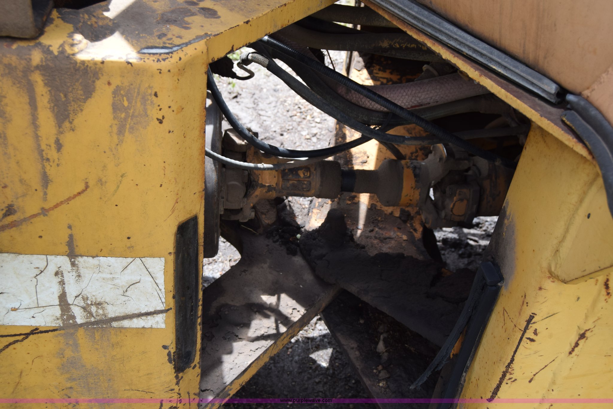 Purple Wave is selling a used Wheel Loader in Kansas. This item is a 1989 Case W11B wheel loader with the following: 825 hours on meter, Four cylinder diesel engine, Shuttle shift transmission, 3F-3R gears, Cab, Suspension seat, Two stick loader control, Front work lights, 77"W loader bucket, 15-19.5 foam-filled tires, 10,849 lbs. base operating weight, Windows cracked, Wires loose in cab, Brakes weak, Dents and scratches, Serial JAK0017322