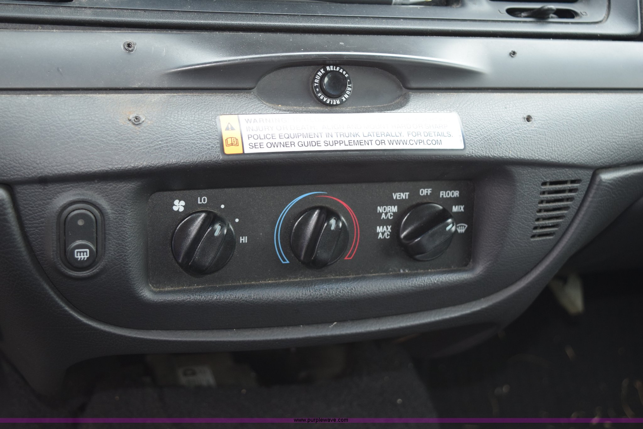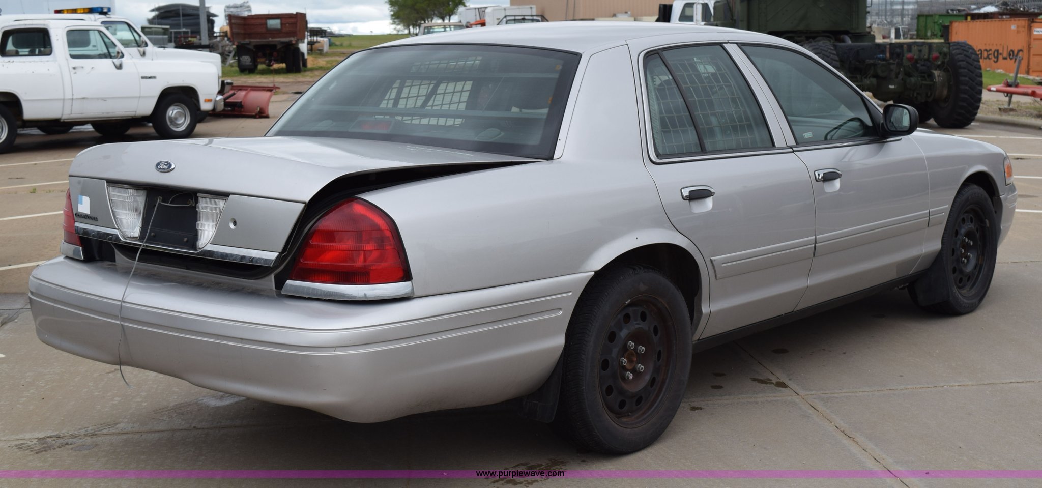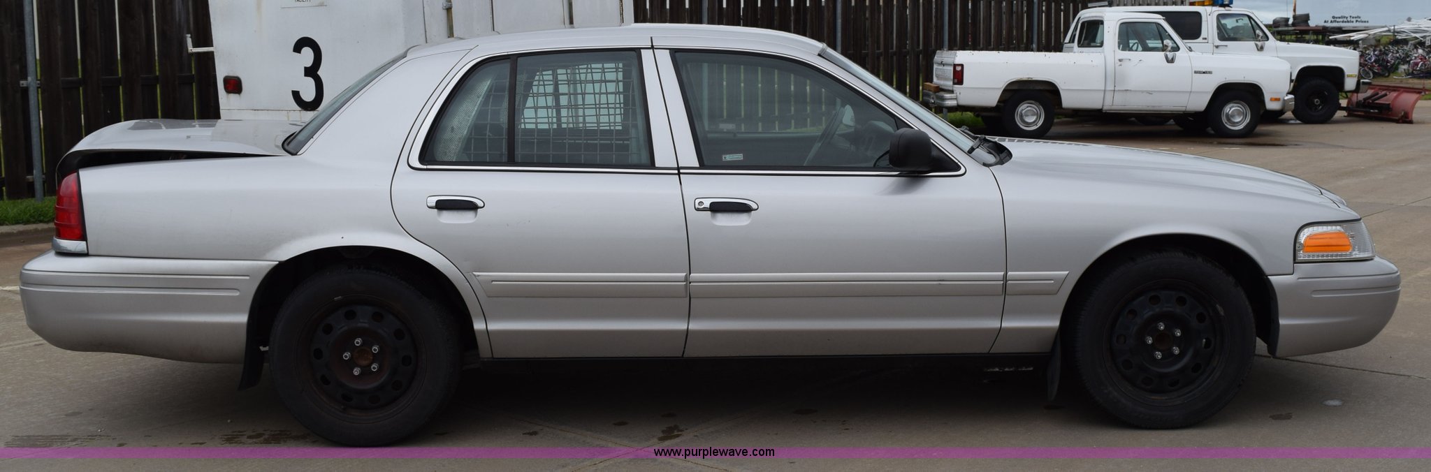 Purple Wave is selling a used Passenger Vehicle in Kansas. This item is a 2006 Ford Crown Victoria Police Interceptor with the following: 190,764 miles on odometer, 4.6L V8 SOHC 16V gas engine, Automatic transmission, AC and heat, Tilt, Cruise, AM/FM/cassette, Power windows, locks, mirrors, and seat, Cloth interior, Transport cage with divider, 235/55R17 tires, Trunk will not latch, Dents
