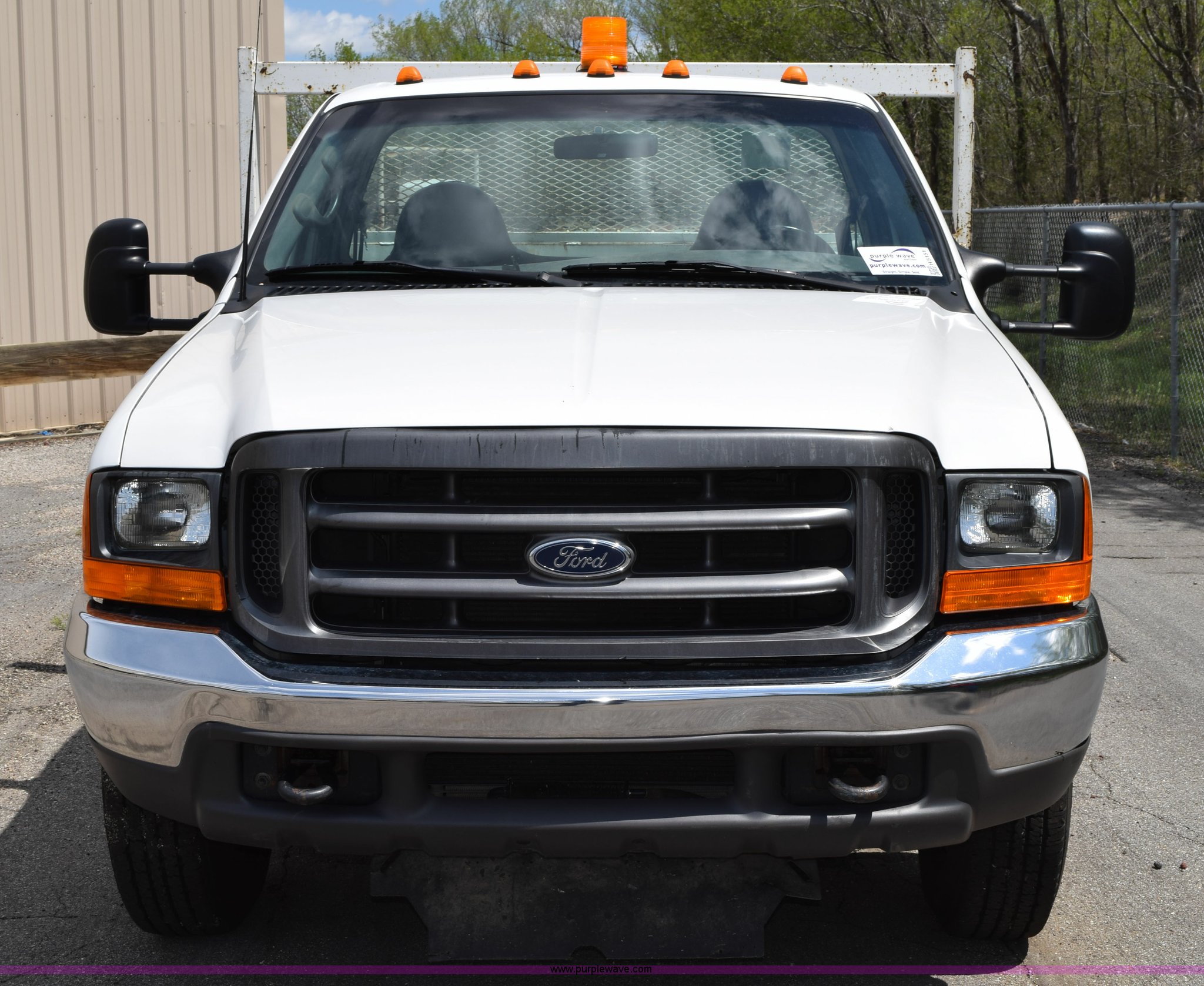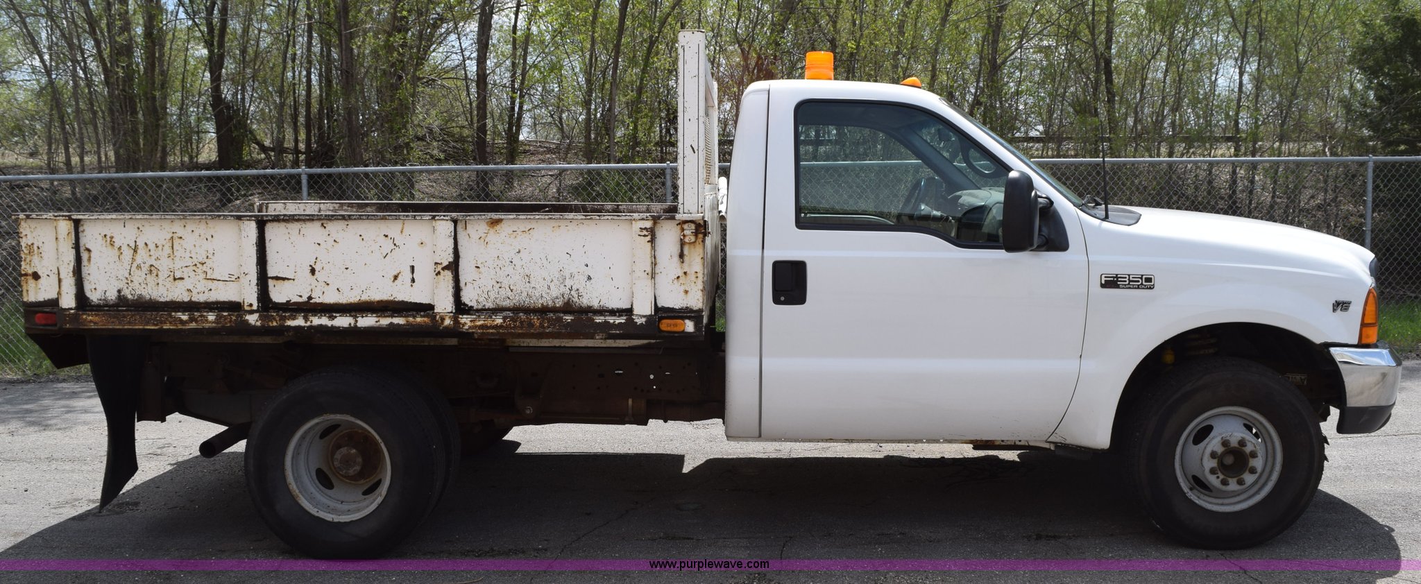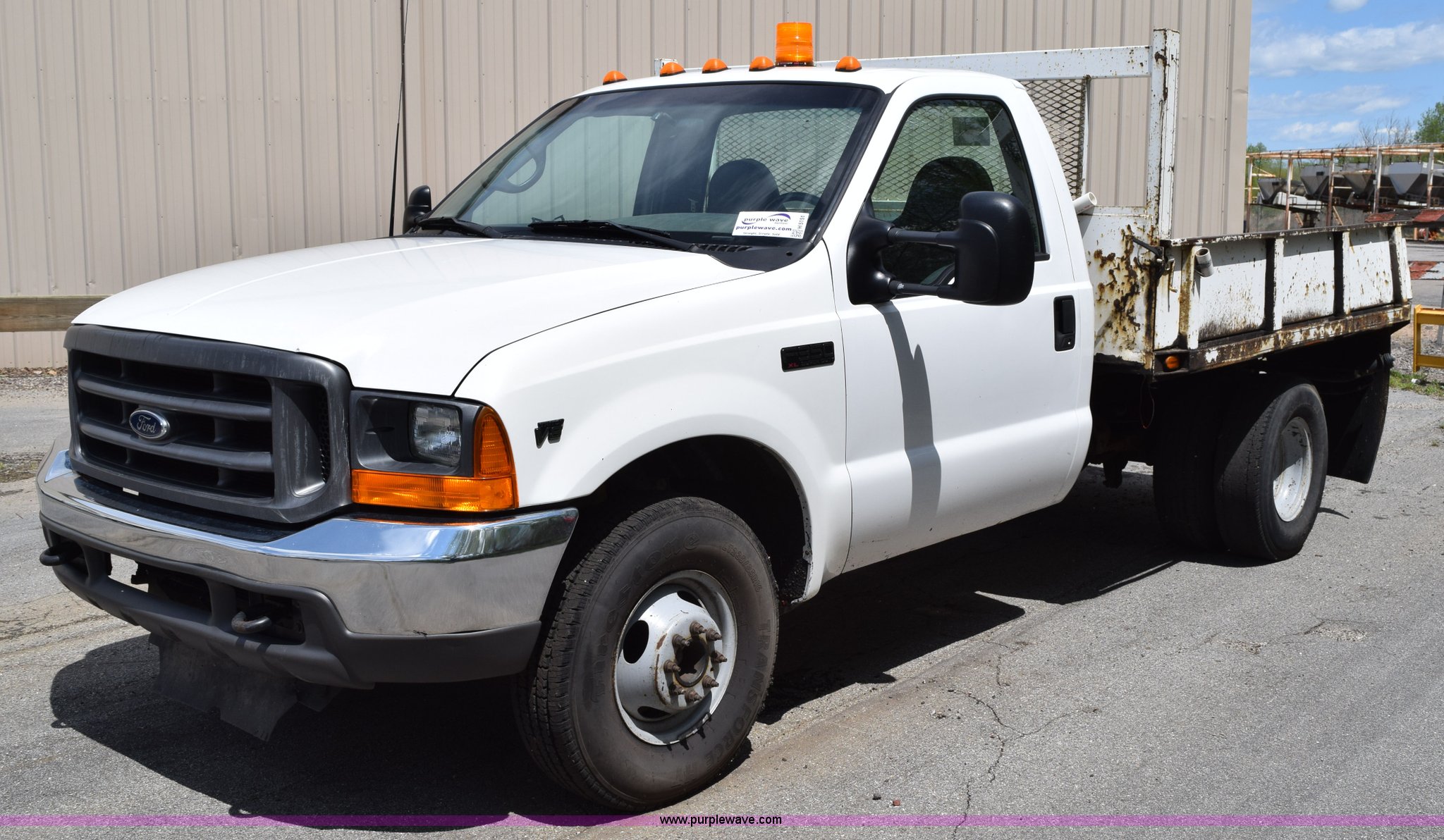 Purple Wave is selling a used 3/4 or 1 Ton Pickup or Van in Kansas. This item is a 2000 Ford F350 Super Duty flatbed pickup truck with the following: 133,493 actual miles, 5.4L V8 SOHC 16V gas engine, Automatic transmission, AC and heat, AM/FM, Manual windows and locks, Vinyl interior, 9'L x 8'W flatbed, 12"H stake sides, Ball hitch, Pintle hitch, Trailer wiring, 235/85R16 tires