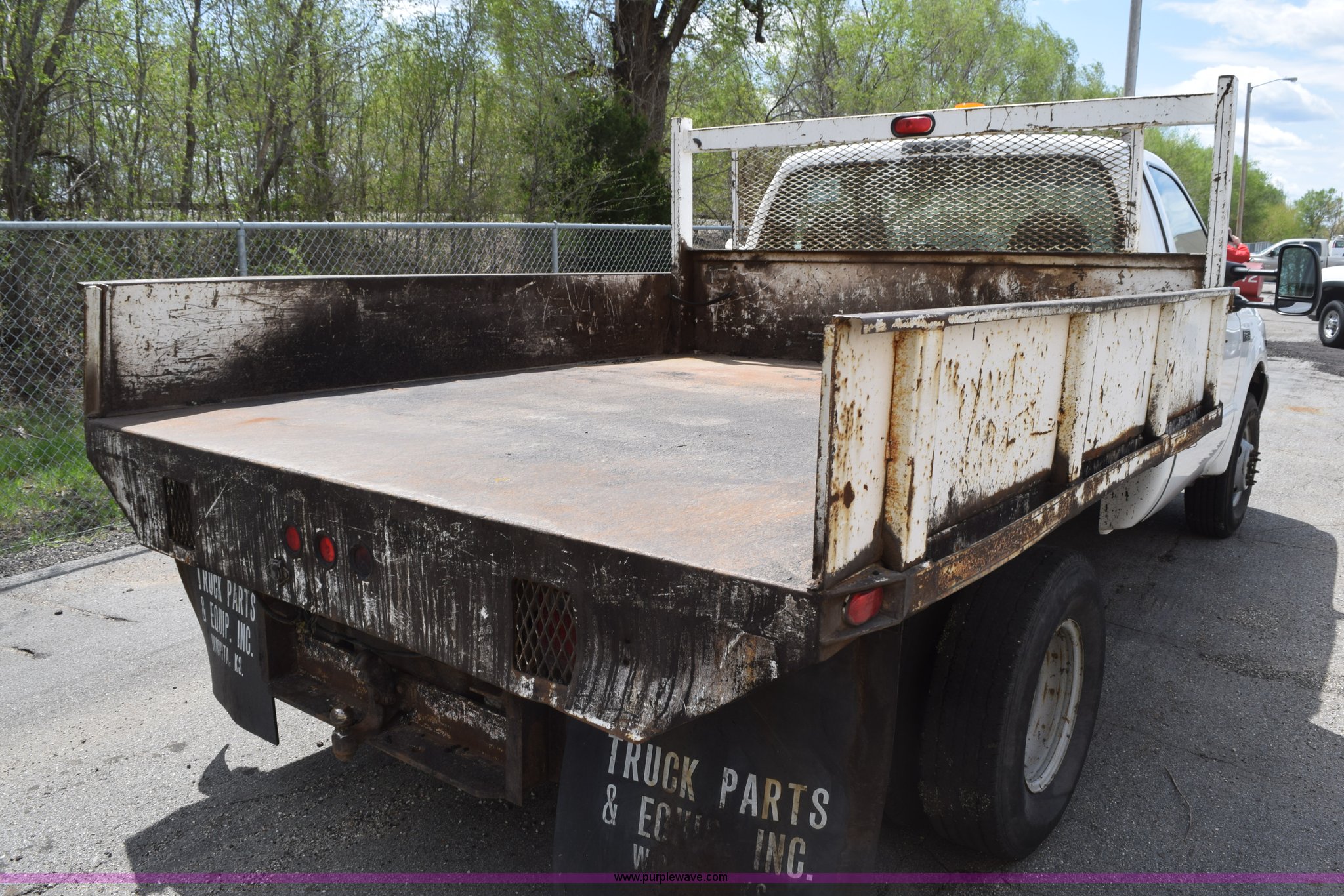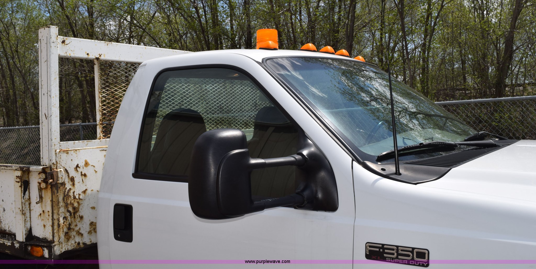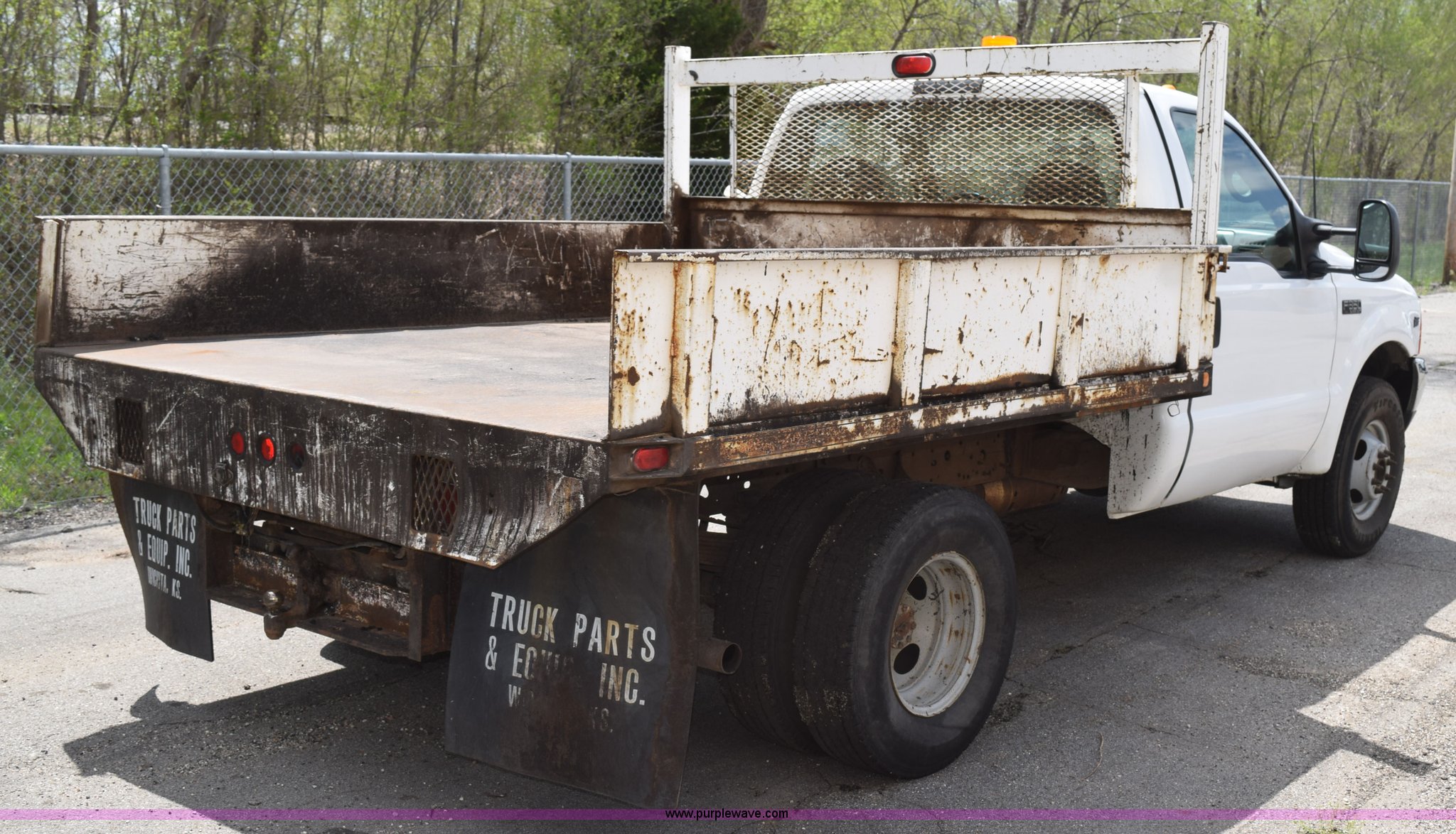 Purple Wave is selling a used 3/4 or 1 Ton Pickup or Van in Kansas. This item is a 2000 Ford F350 Super Duty flatbed pickup truck with the following: 133,493 actual miles, 5.4L V8 SOHC 16V gas engine, Automatic transmission, AC and heat, AM/FM, Manual windows and locks, Vinyl interior, 9'L x 8'W flatbed, 12"H stake sides, Ball hitch, Pintle hitch, Trailer wiring, 235/85R16 tires