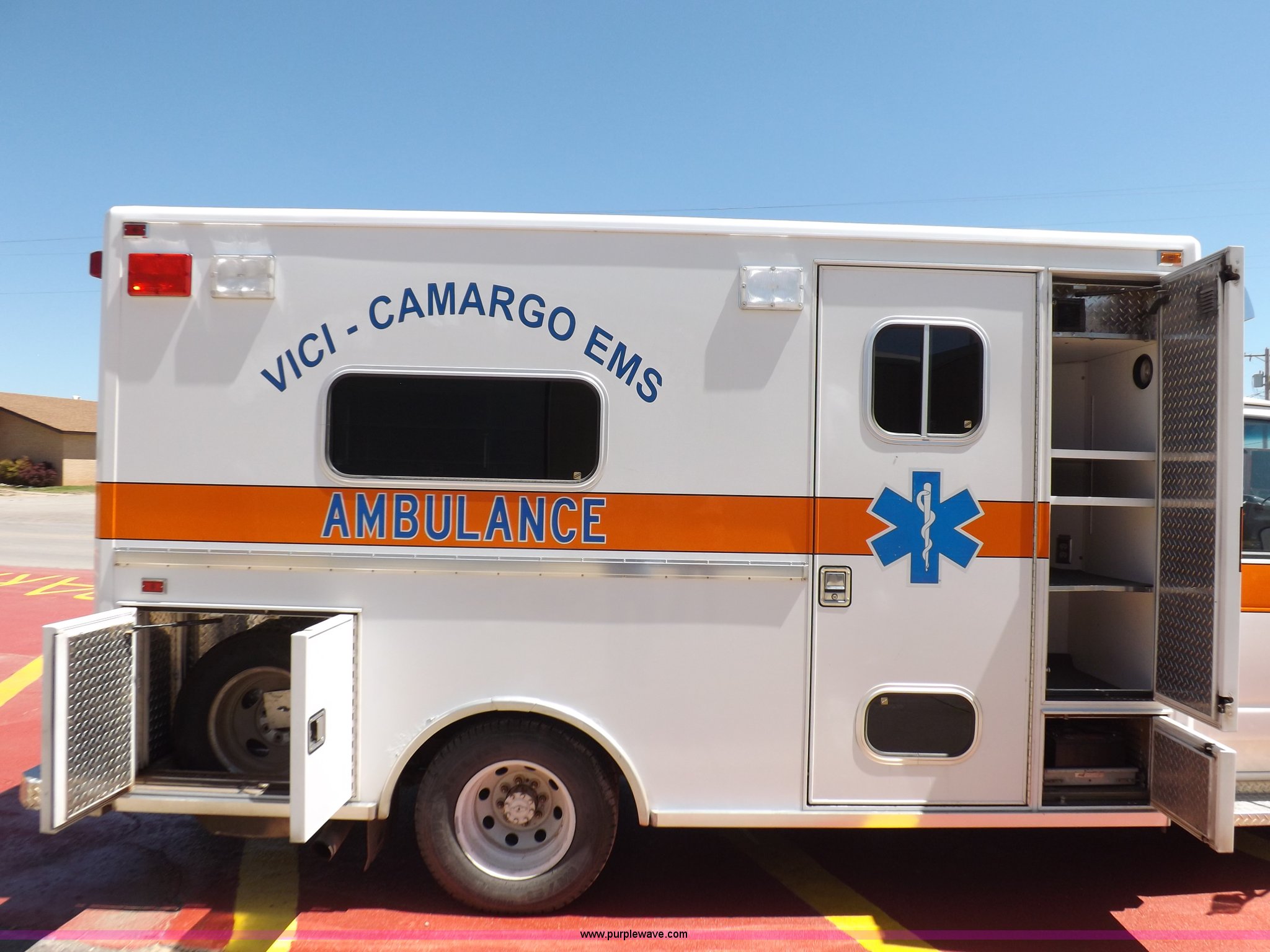 1992 Ford E350 ambulance. 74,471 actual miles, 7.3L V8 OHV 16V diesel engine, Automatic transmission, AC and heat, Tilt, Cruise, AM/FM, Power windows and locks, Cloth interior, National Ambulance Builders body, Whelen emergency lighting, Redi-Line inverter, Master disconnect, Running boards, 225/75R16 tires, GVWR 11,500 lbs, FAWR 4,600 lbs, RAWR 7,810 lbs, Recently replaced batteries and alternator, Power steering leaks. 1FDKE30M6NHB58149. Vici Camargo EMS. 611 N. Main. Vici, OK 73859
