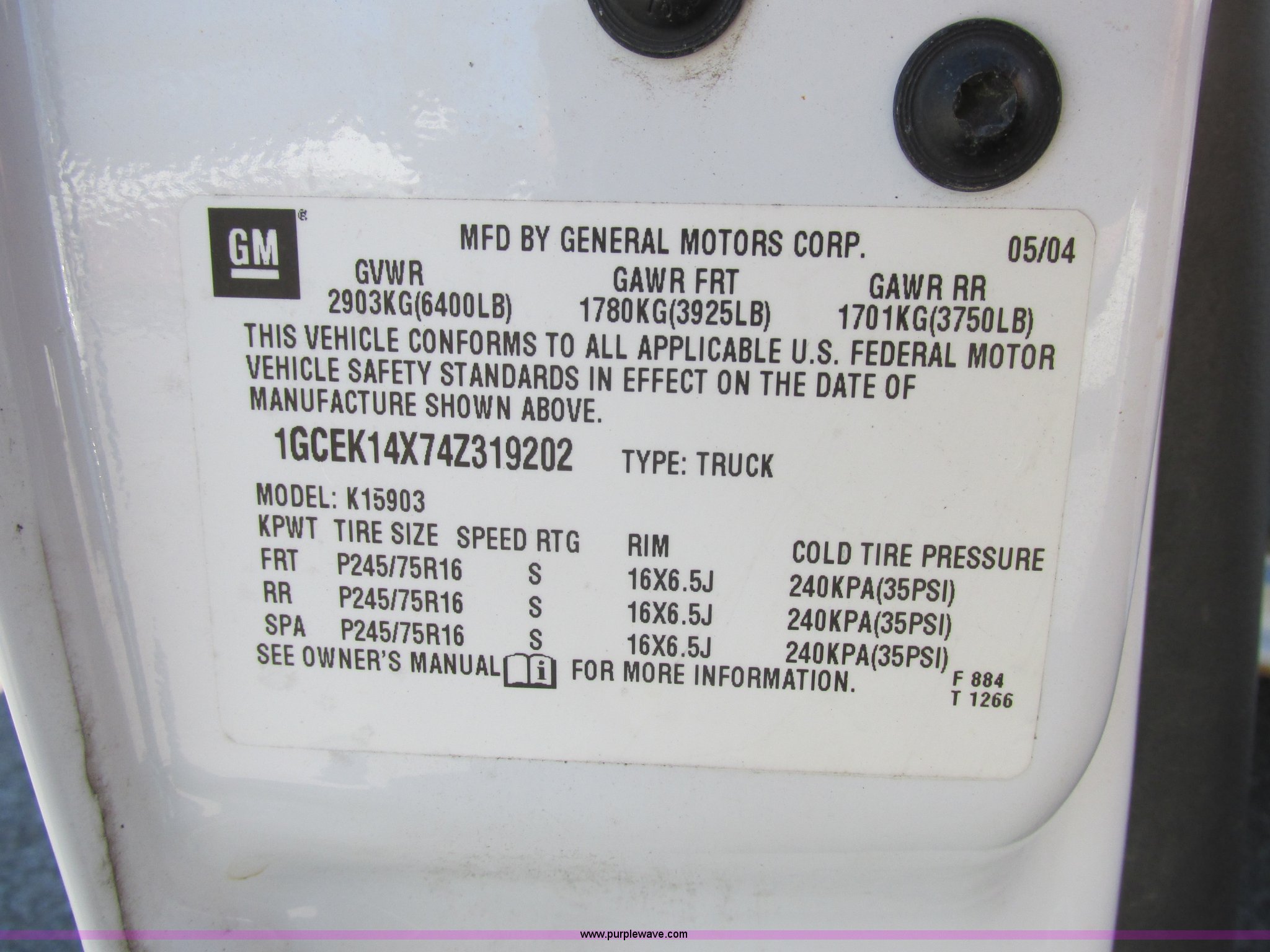 Purple Wave is selling a used 1/2 Ton Pickup or Van in Missouri. This item is a 2004 Chevrolet Silverado 1500 pickup truck with the following: 121,627 miles on odometer, 4.3L V6 OHV 12V gas engine, Automatic transmission, Four wheel drive, AC and heat, Tilt, Cruise, AM/FM, Manual windows and locks, Cloth interior, Long bed, 265/75R16 tires, RPMs will sometimes surge while driving