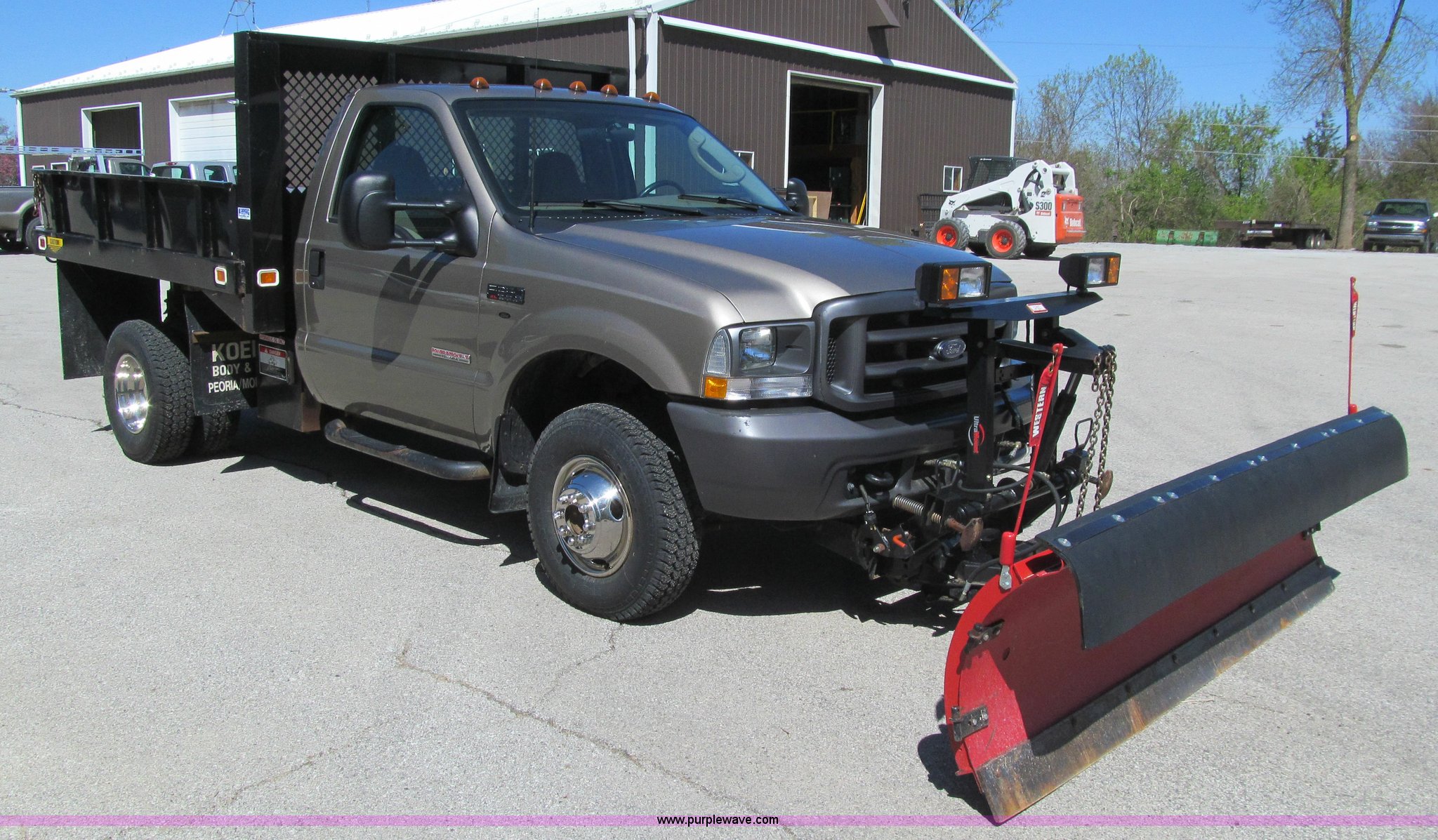 Purple Wave is selling a used 3/4 or 1 Ton Pickup or Van in Iowa. This item is a 2003 Ford F350 Super Duty XL dump bed pickup truck with the following: 21,908 actual miles, 6.0L V8 OHV 32V diesel engine, Automatic transmission, Four wheel drive, AC and heat, AM/FM, Power windows and locks, Strobe lights, Brake controller, Knapheide 8' dump bed, Steel floor, Removable sides, Front bulk head, Rugby HR520 lift, Western Pro 8.5' plow, Ultra mount, Plow wings, Receiver hitch, Trailer wiring, Spring suspension, 142" wheelbase, LT235/85R16 tires, Scratches