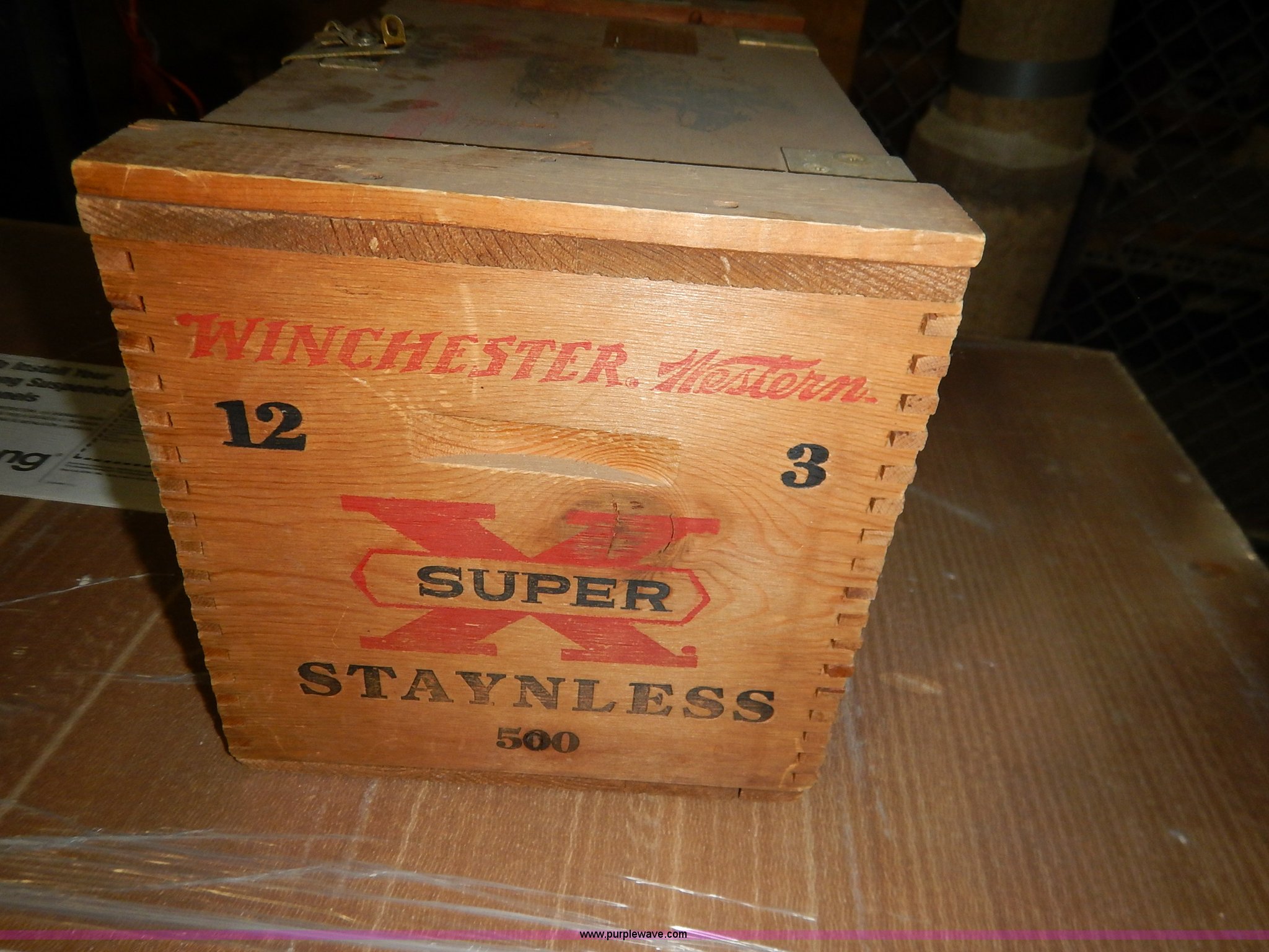 Purple Wave is selling a used Sporting Goods in Kansas. This item is a Winchester ammunition box with the following: 16" x 9.5" x 10", Wood construction