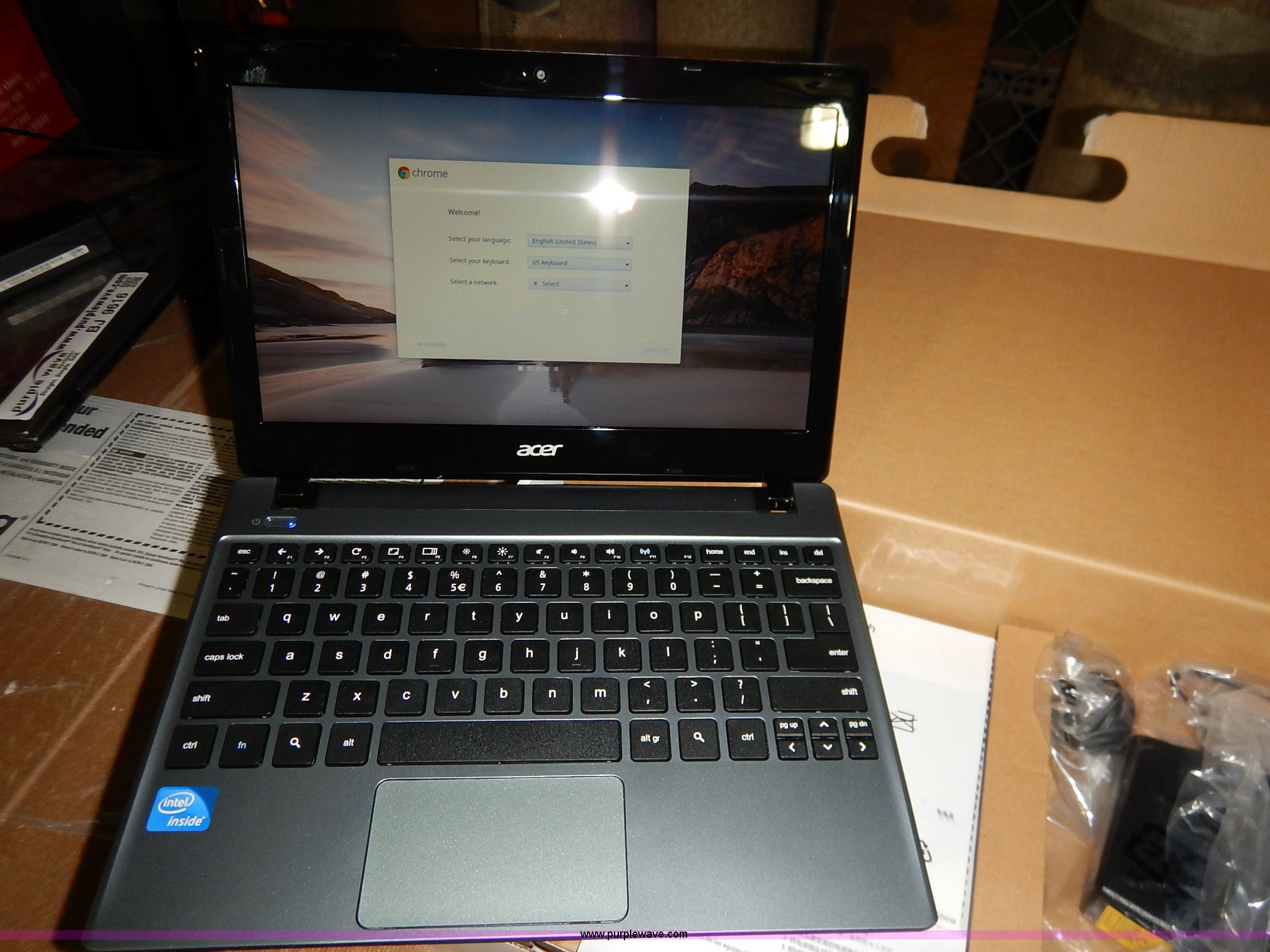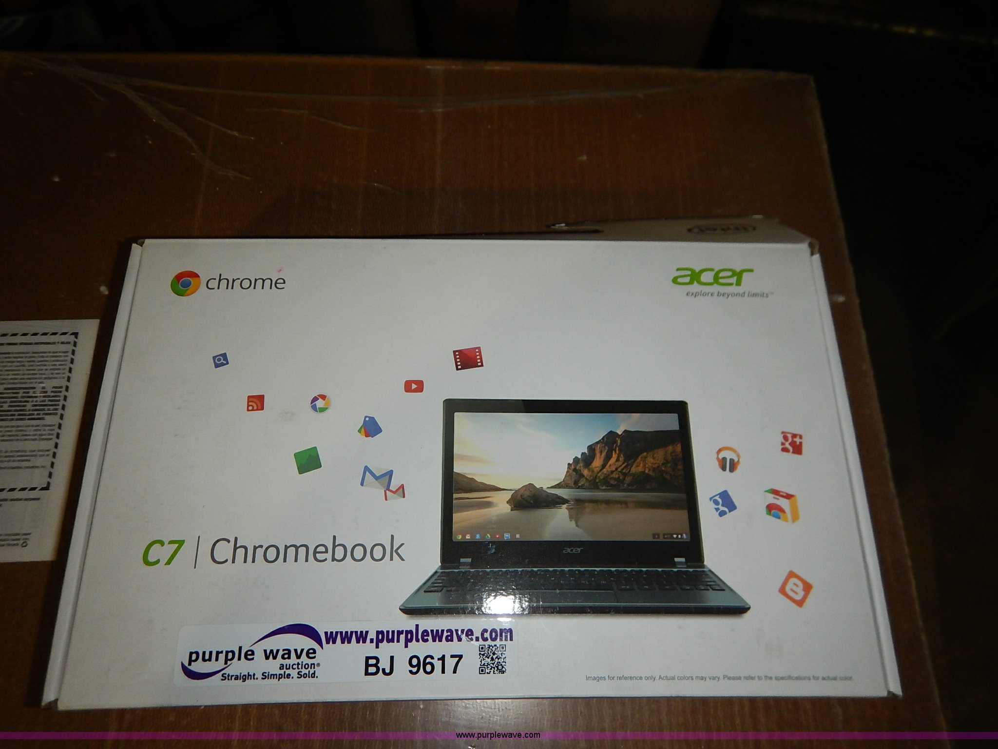 Purple Wave is selling a used Computers in Kansas. This item is a Acer Chromebook laptop with the following: New in box, Power cord, Manuals, Powers on, Serial NUSH7AA0113180D8381601
