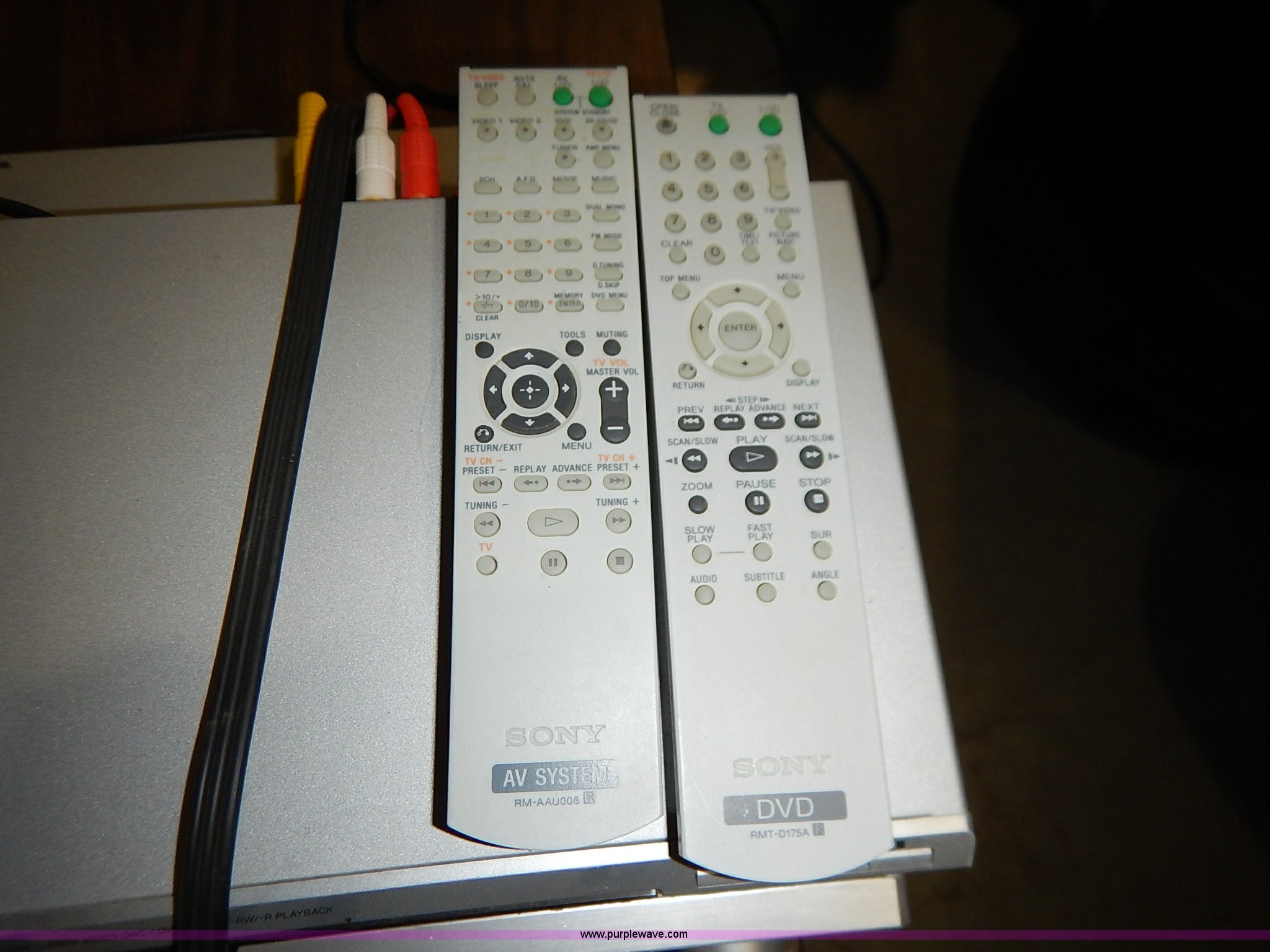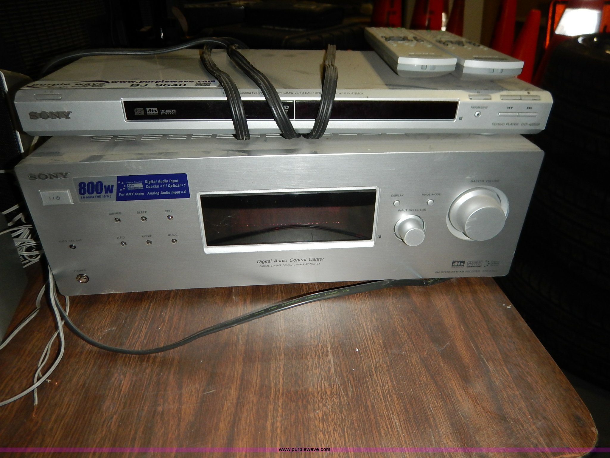 Purple Wave is selling a used Electronics in Kansas. This item is a Sony stereo system with the following: 800 watt receiver, Remote, CD/DVD player, Remote, (5) speakers