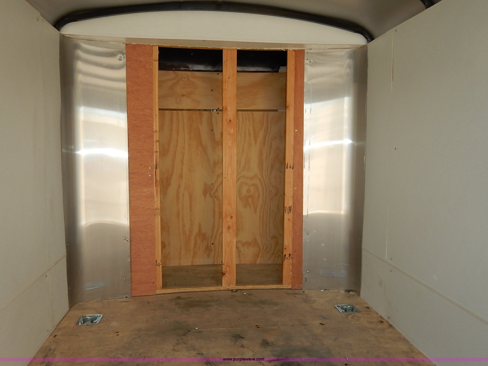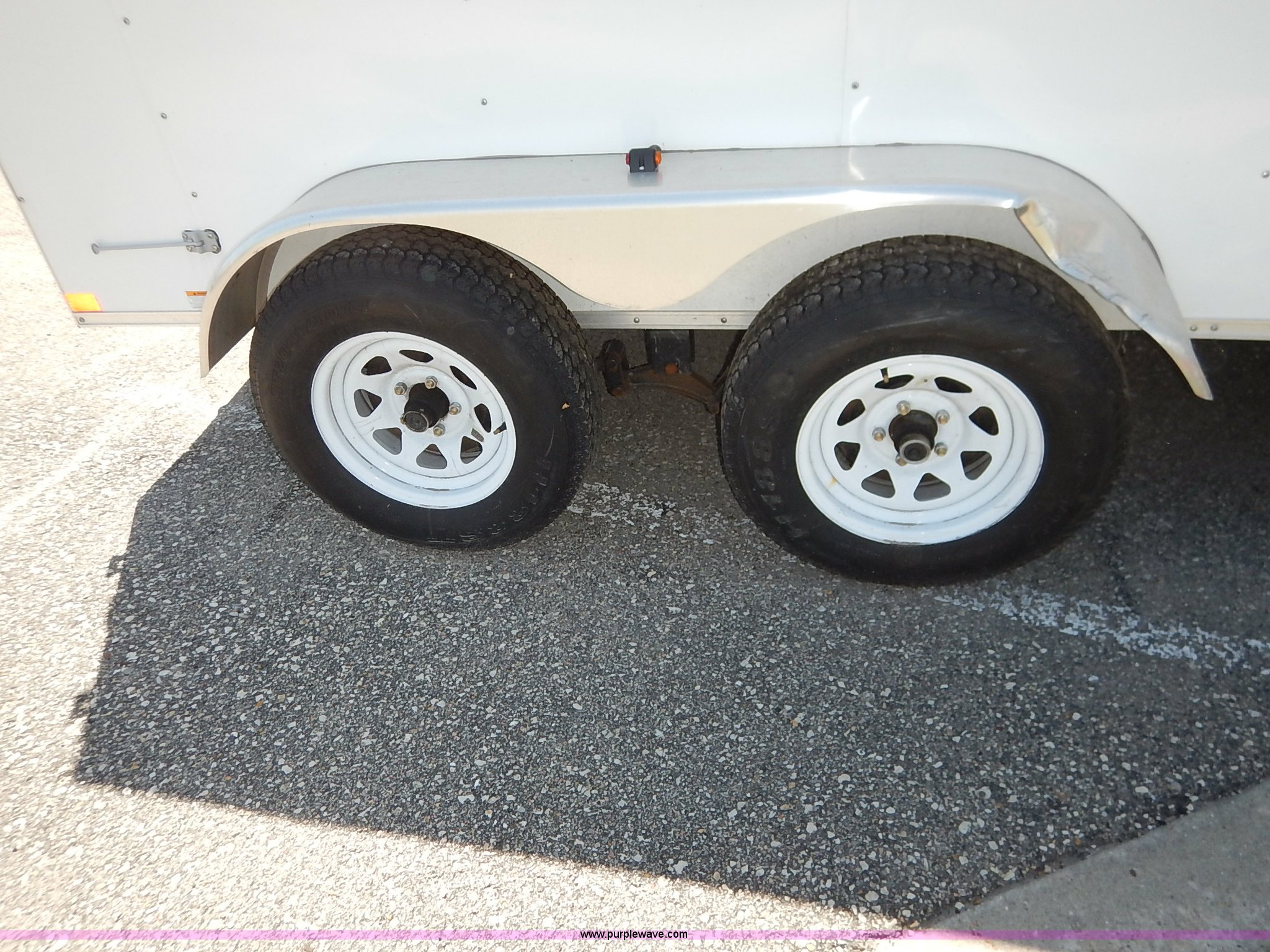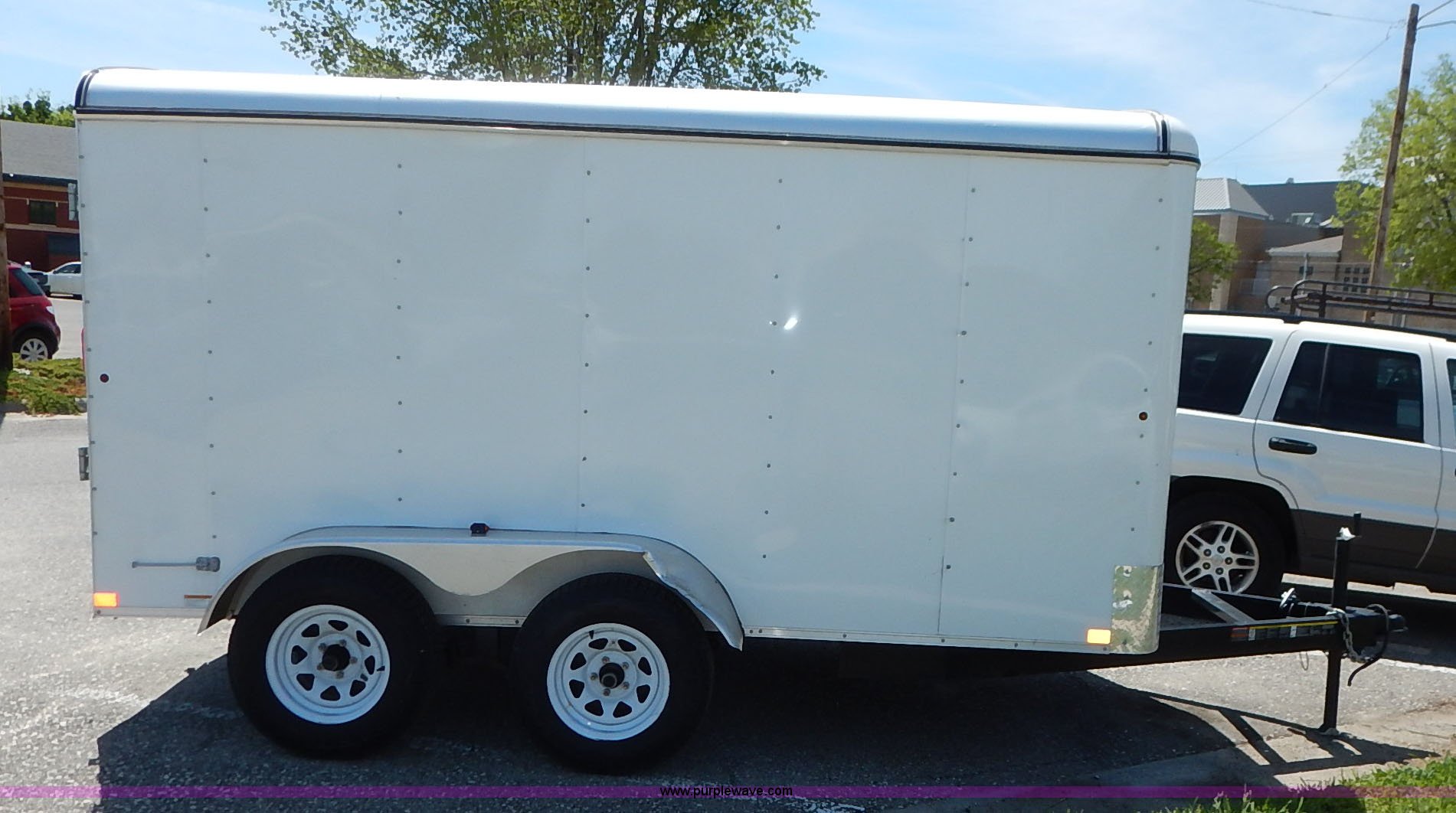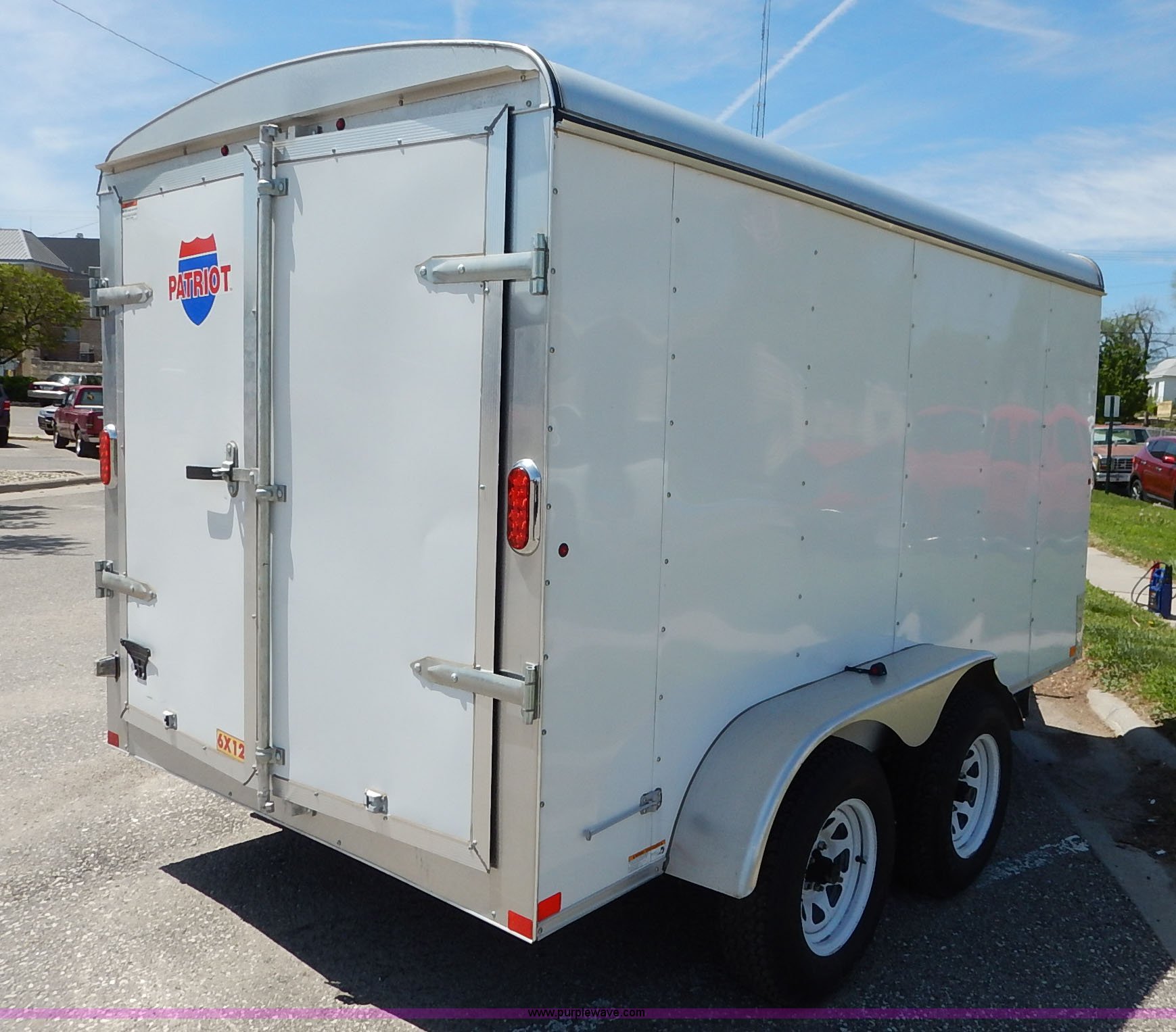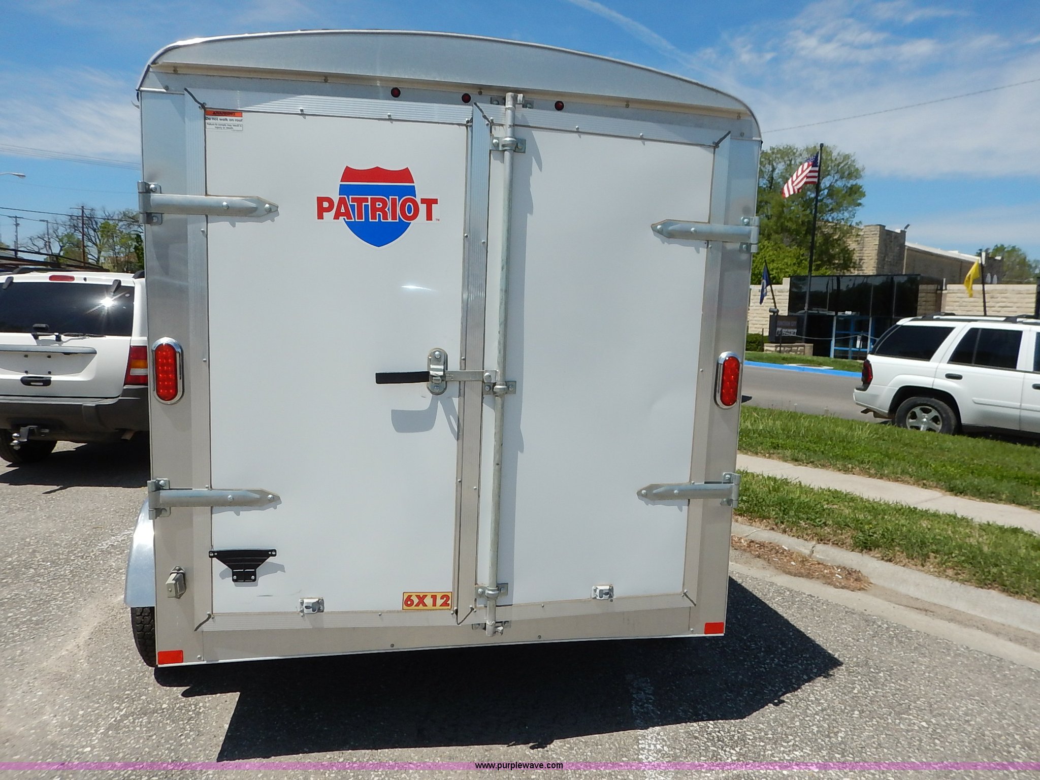 Purple Wave is selling a used Enclosed Cargo Trailer in Kansas. This item is a 2013 Trailers Plus Patriot cargo trailer with the following: 12'L x 6'W, 69" interior height, Wood floor, Floor tie downs, Interior nose divider, Dual rear doors, 2 5/16" ball hitch with lock, Safety chains, Lights, Break-away brake system, 205/75D14 tires, GAWR 3,500 lbs, Exterior fender well damage