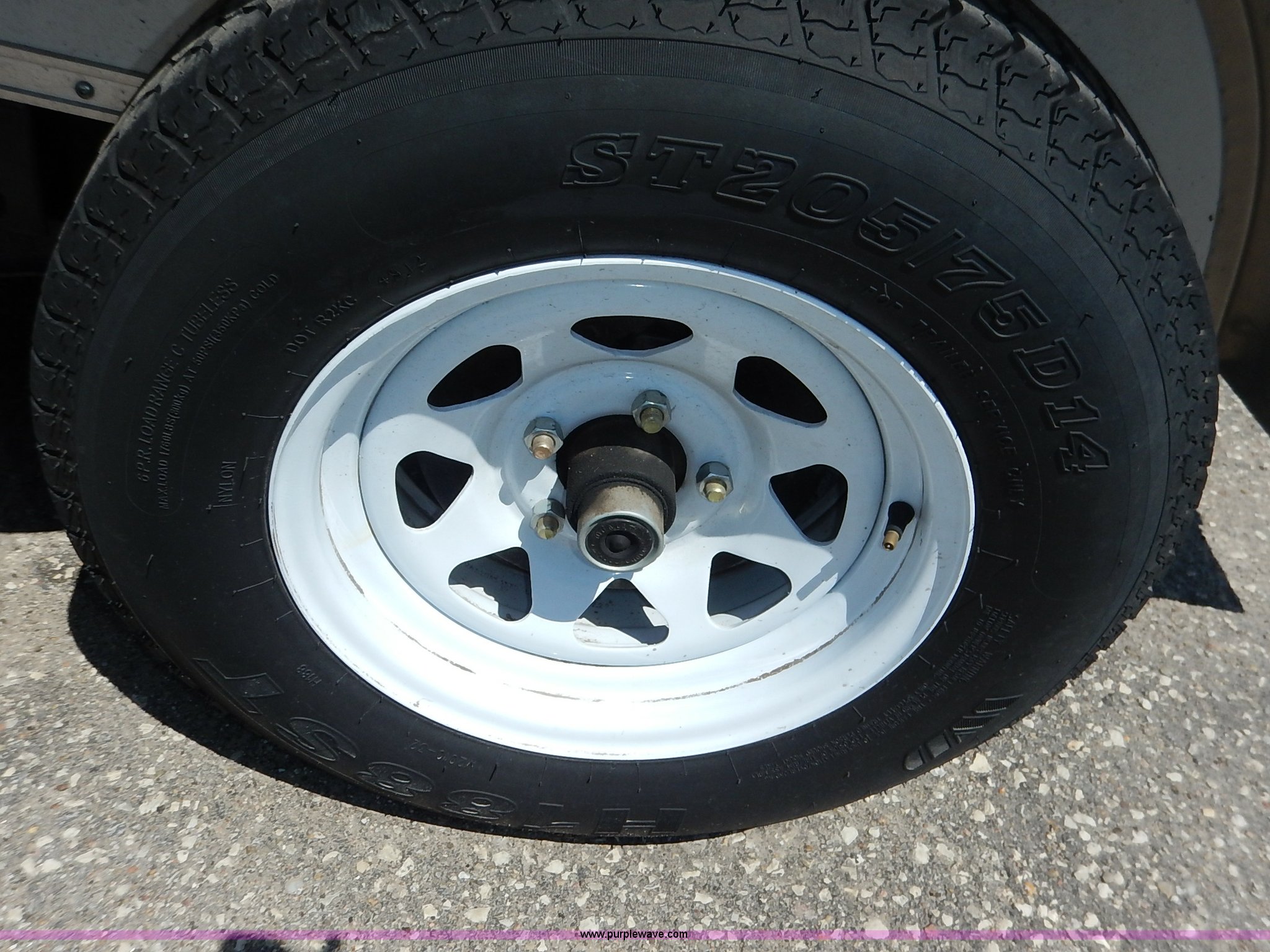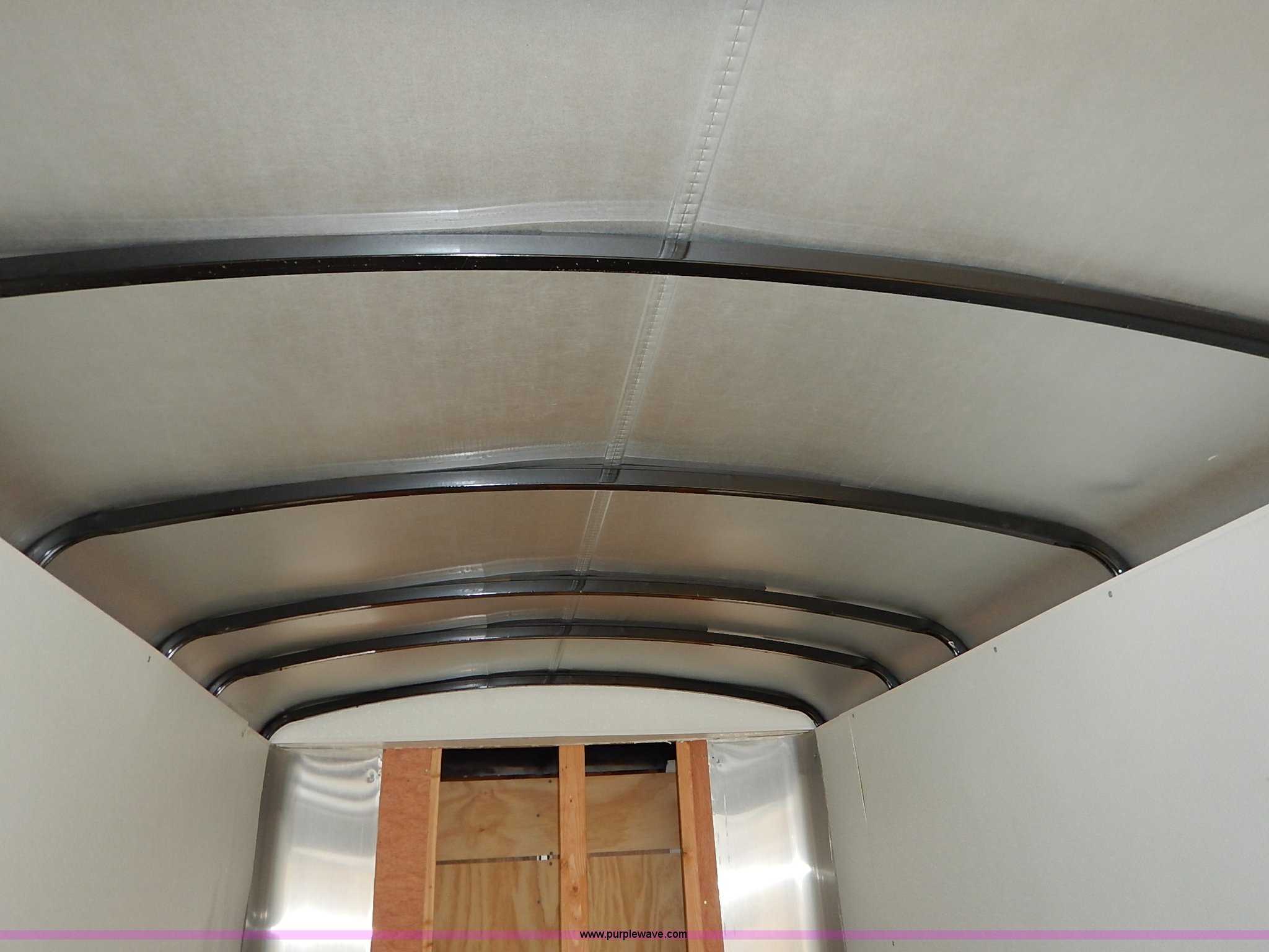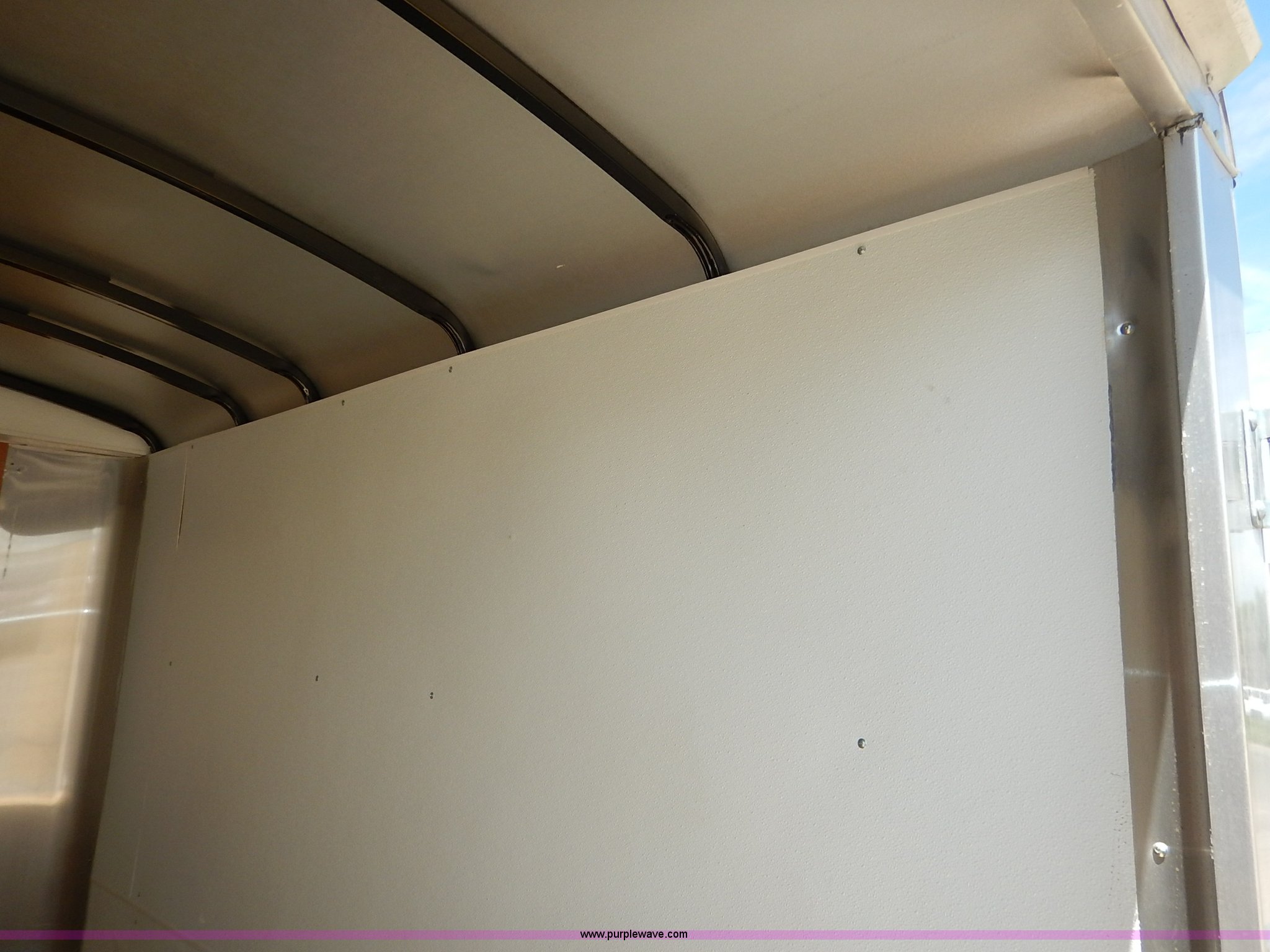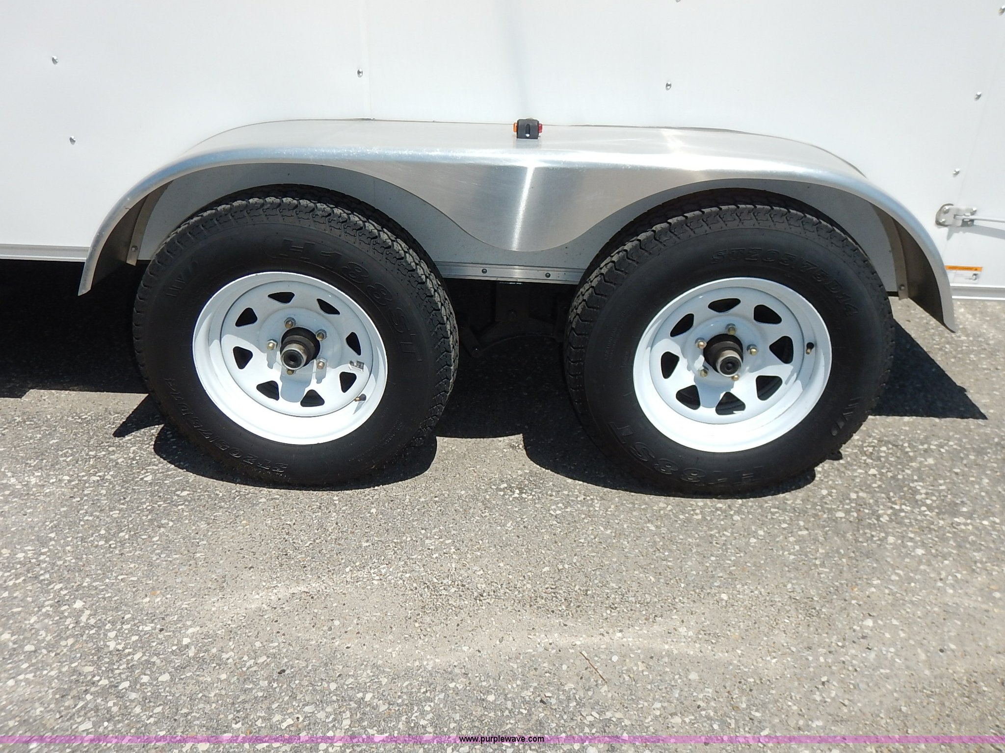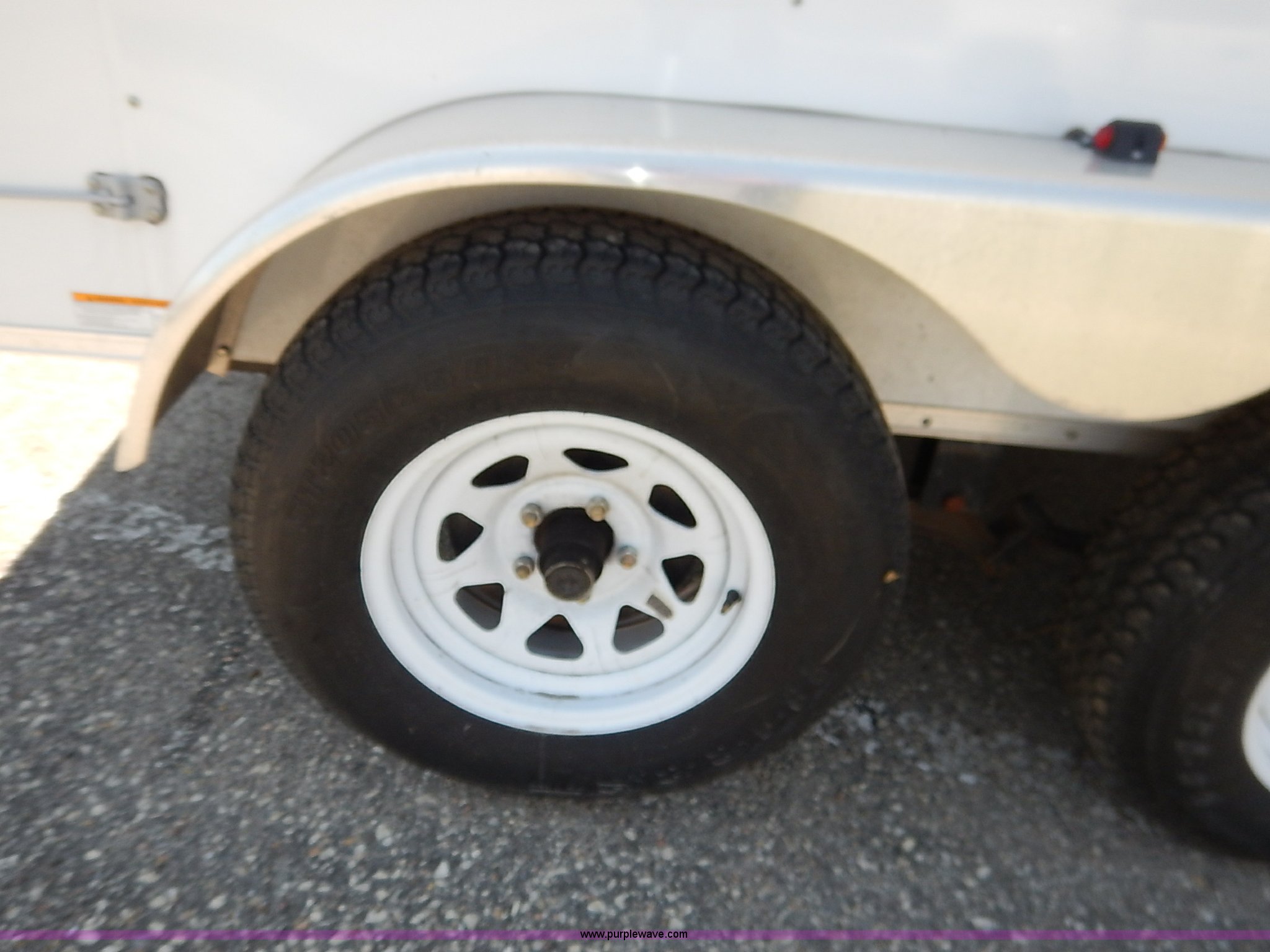 Purple Wave is selling a used Enclosed Cargo Trailer in Kansas. This item is a 2013 Trailers Plus Patriot cargo trailer with the following: 12'L x 6'W, 69" interior height, Wood floor, Floor tie downs, Interior nose divider, Dual rear doors, 2 5/16" ball hitch with lock, Safety chains, Lights, Break-away brake system, 205/75D14 tires, GAWR 3,500 lbs, Exterior fender well damage