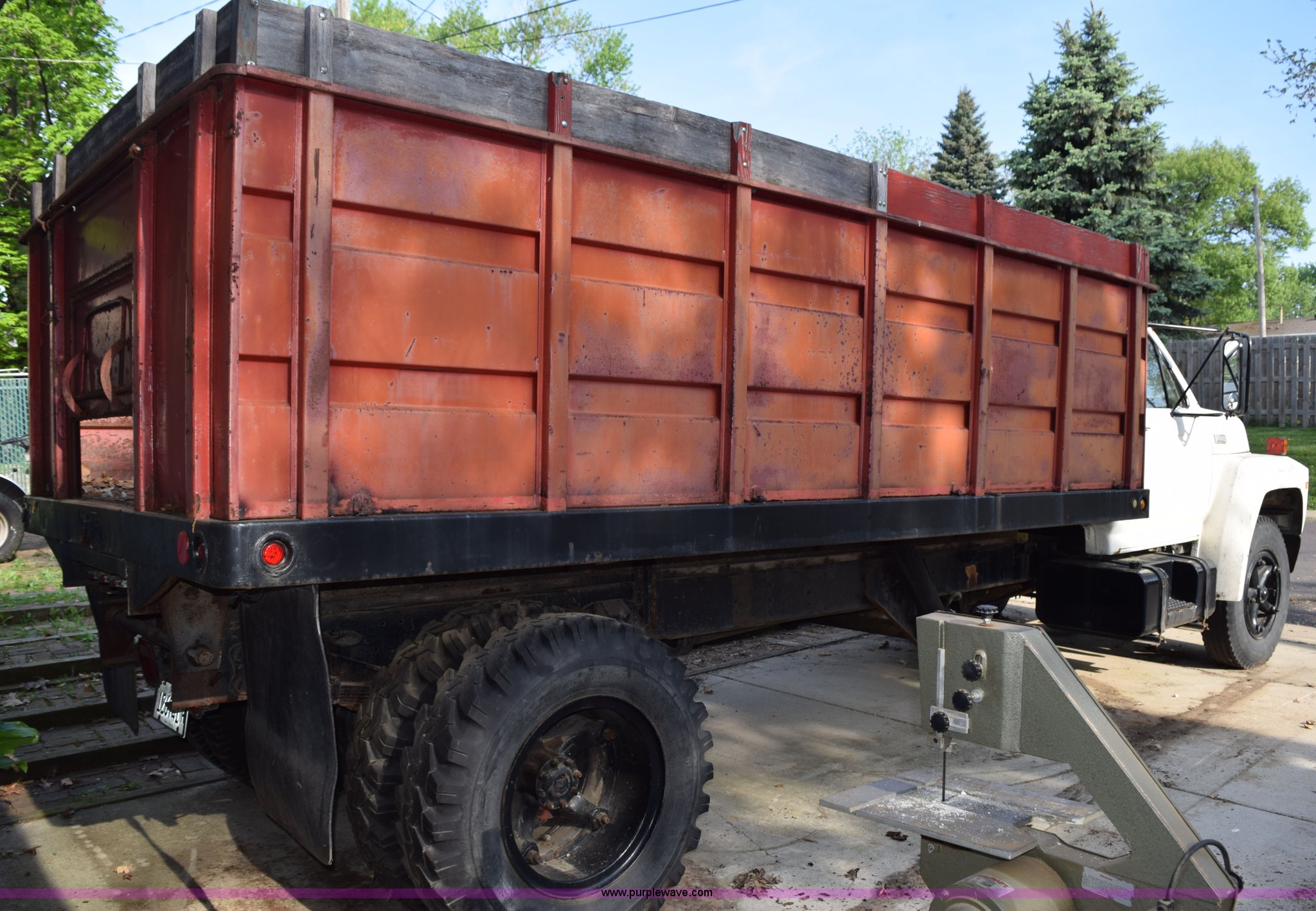 Purple Wave is selling a used Grain Truck in Illinois. This item is a 1980 Ford F700 grain truck with the following: 58,270 miles on odometer, Eight cylinder diesel engine, Five speed manual transmission, Heat, Spring suspension seat, PTO, Dual ram hoist, Spring suspension, Hydraulic brakes, 153" wheelbase, 9.00-20 tires, GVWR 24,500 lbs, Batteries dead, Operational when removed from service November 2015