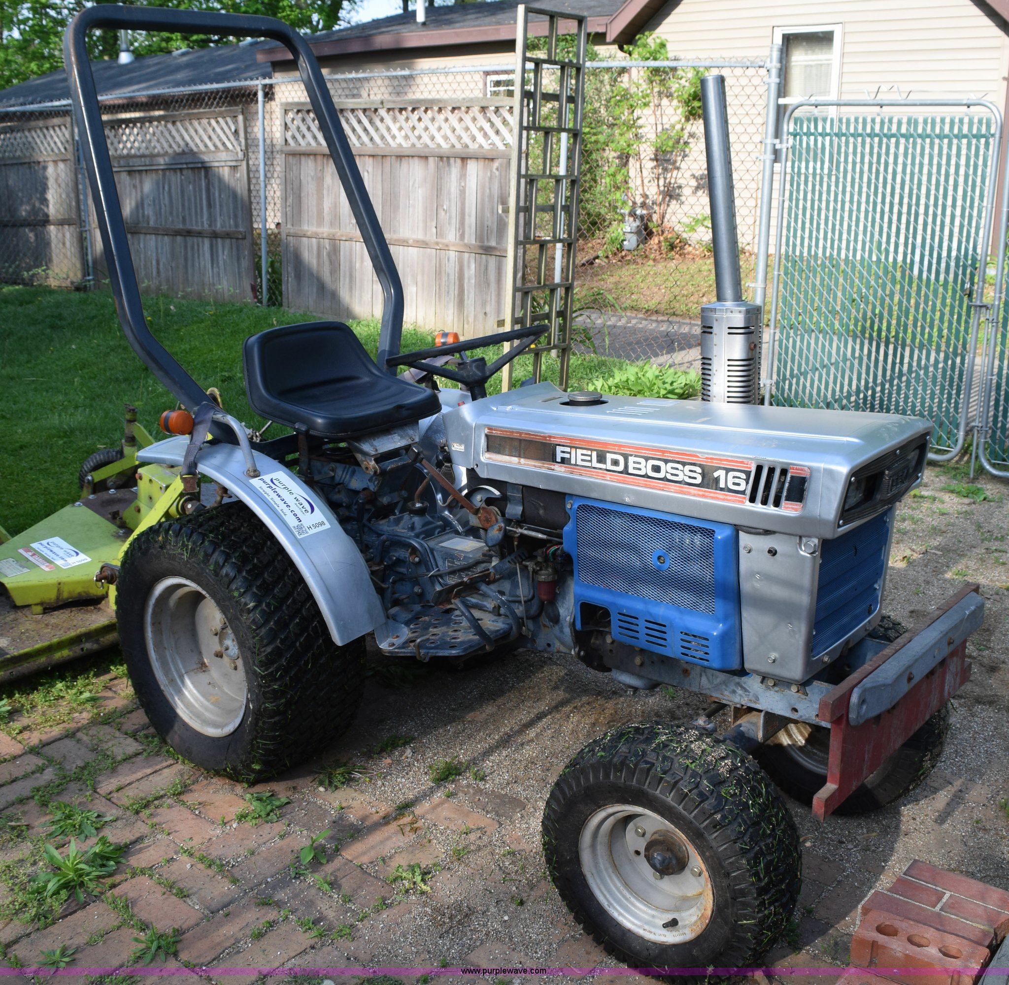 Purple Wave is selling a used Tractor in Illinois. This item is a Field-boss TX2160T tractor with the following: 366 hours on meter, Three cylinder diesel engine, Manual transmission, 6F-2R gears, Suspension seat, Three point, Top link, Front and rear 540 PTO, 20 x 8.00-10 front tires, 29 x 12.50-15 rear tires, Fuel tank patched, Rear tire has a slow leak, Serial 002570R