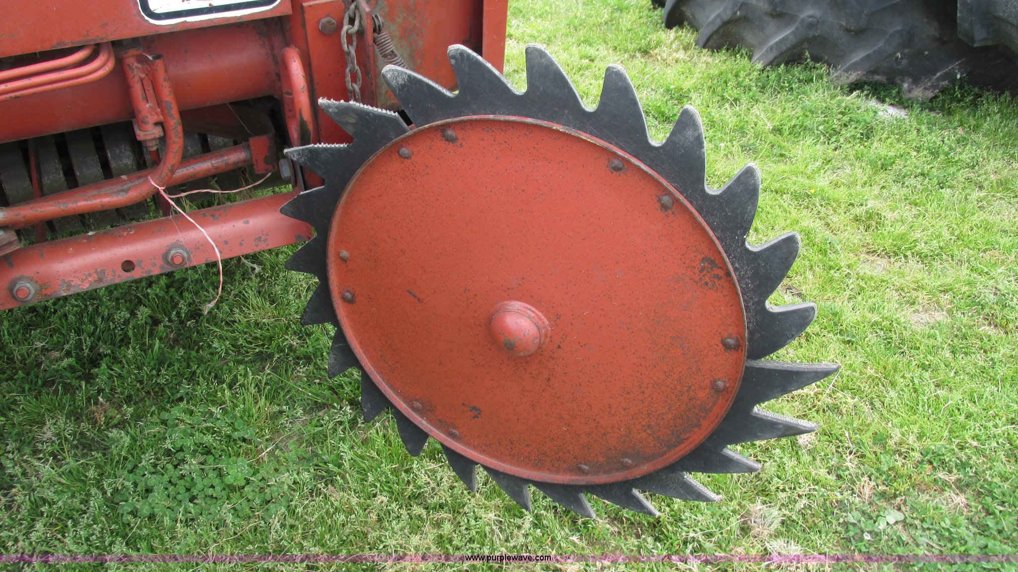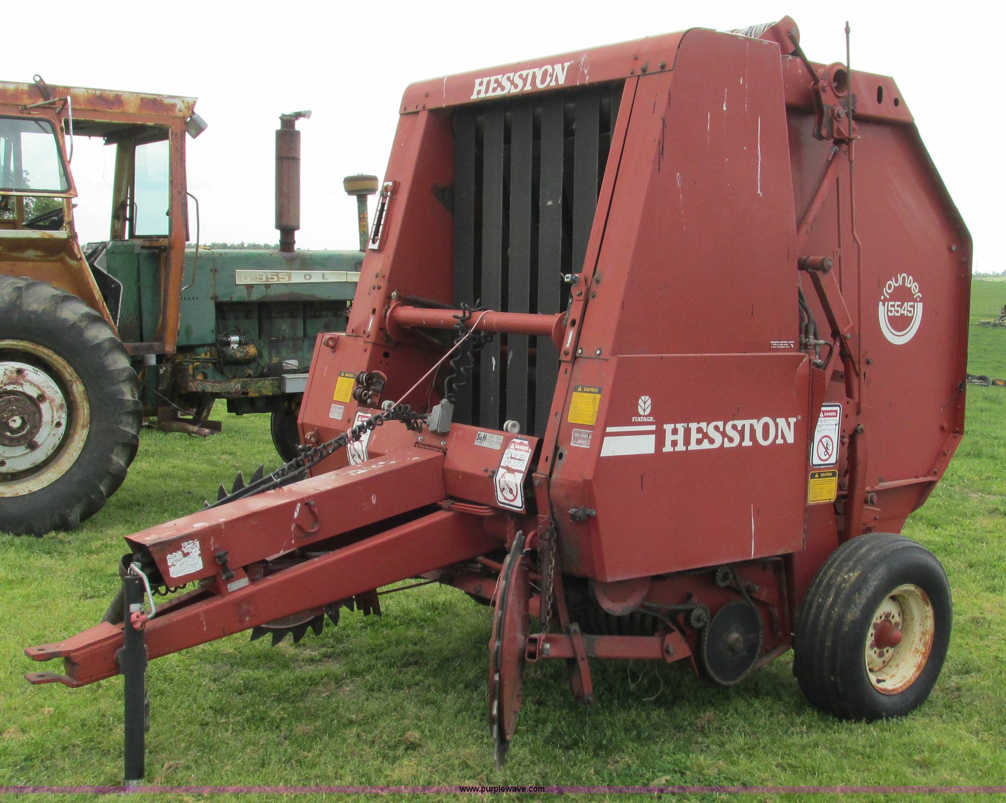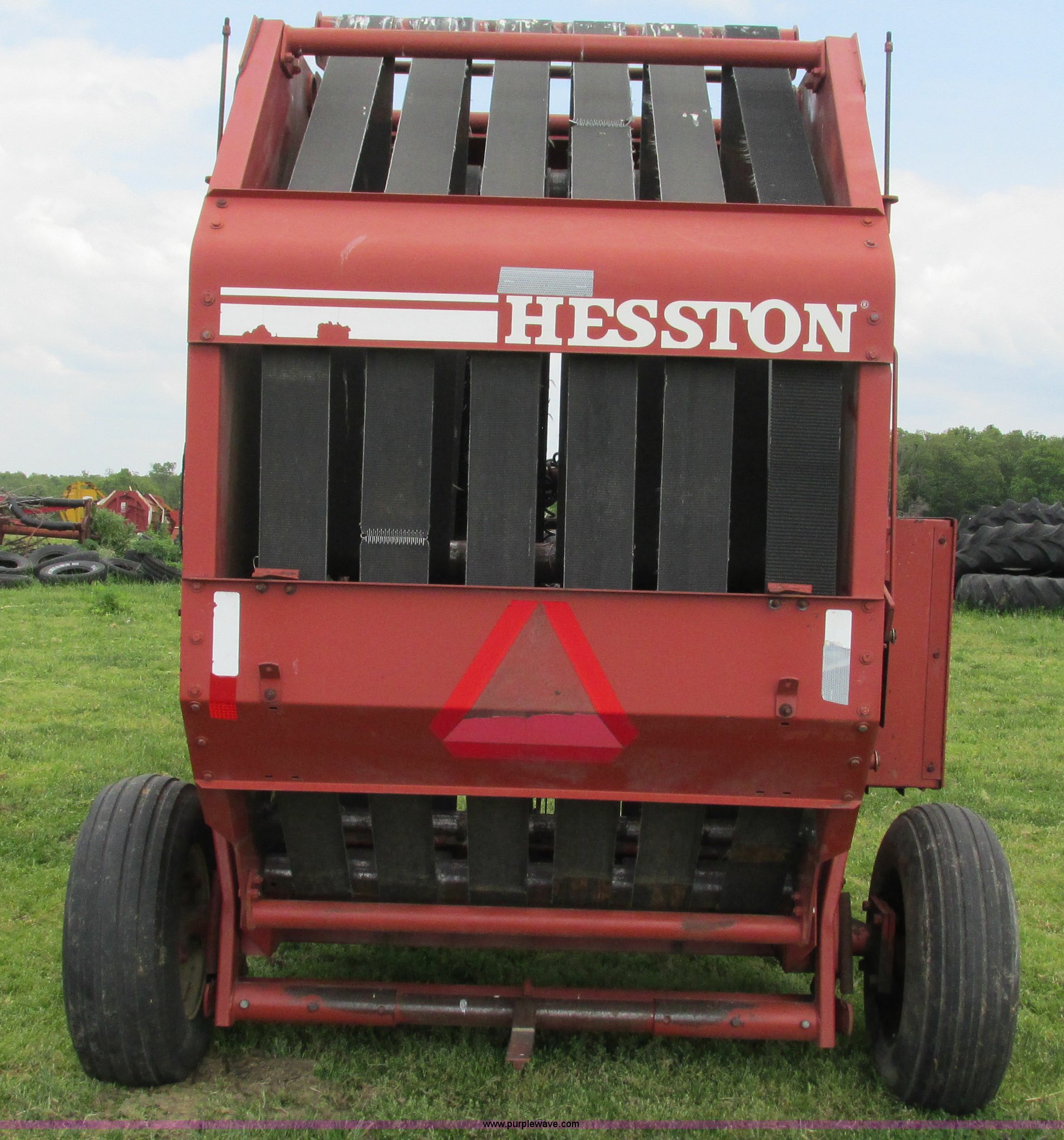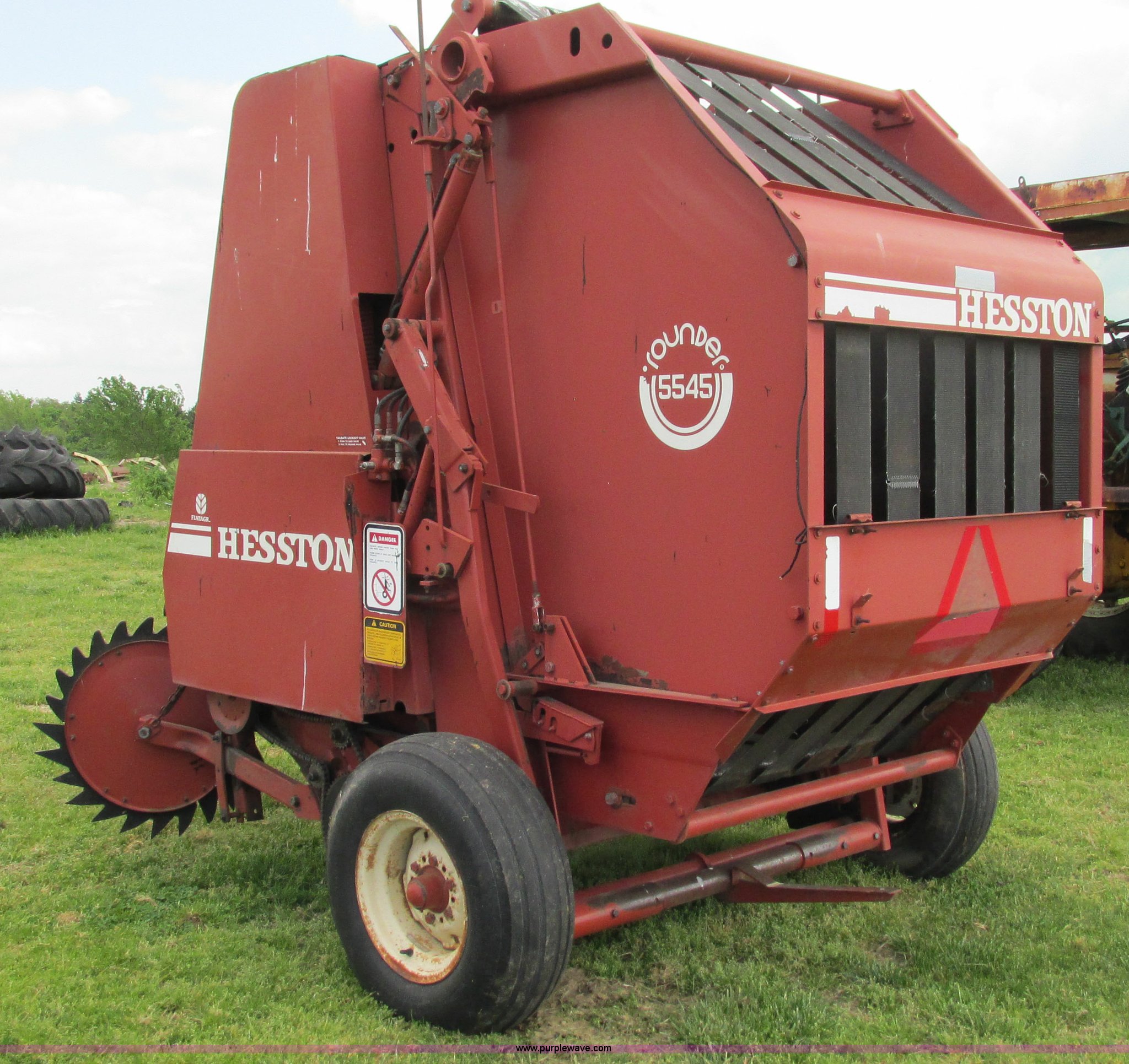 Purple Wave is selling a used Round Baler in Missouri. This item is a 1985 Hesston 5545 round baler with the following: 4' x 5' bale capacity, Manual twine tie, Gathering wheels, 540 PTO, Pin hitch, 9.5L-15SL tires, Serial R54500242