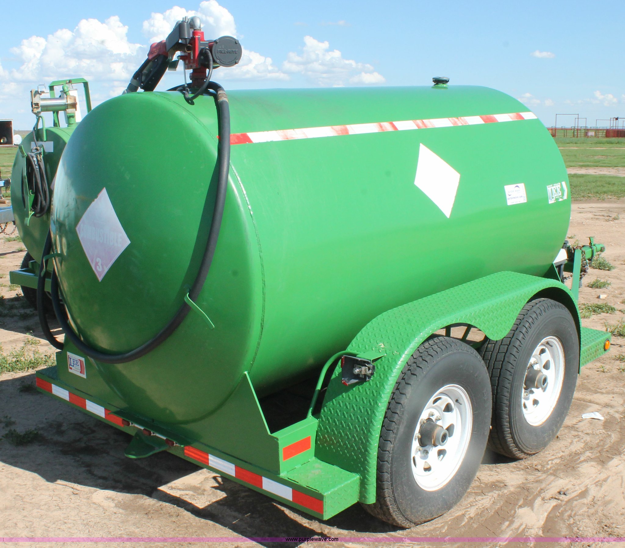 Purple Wave is selling a used Trailer Other in Texas. This item is a Lee 1,000 gallon fuel tank trailer with the following: Fill-Rite 25 gpm pump, 2 5/16" ball hitch, 235/85R16 tires, Serial 068207