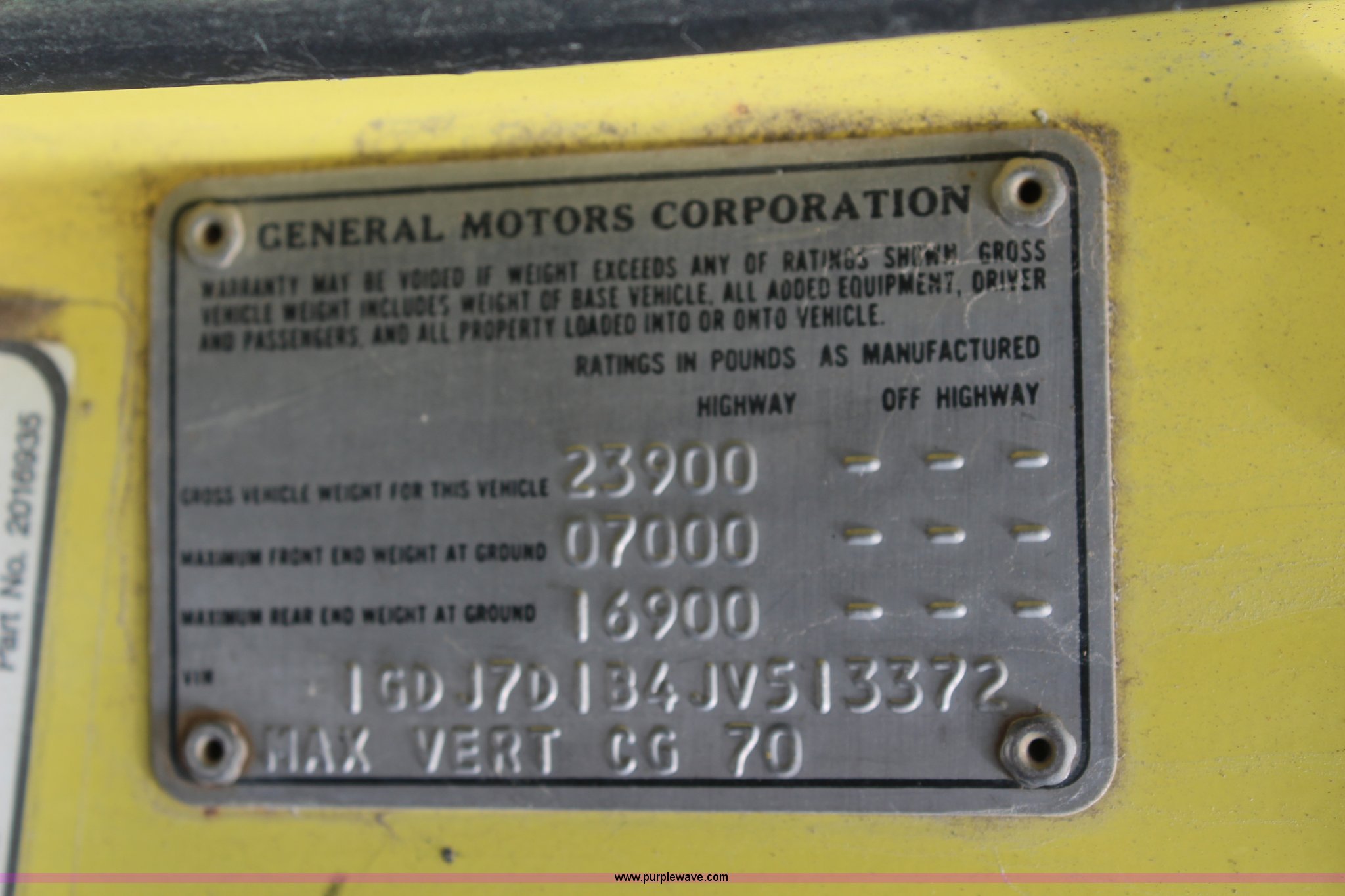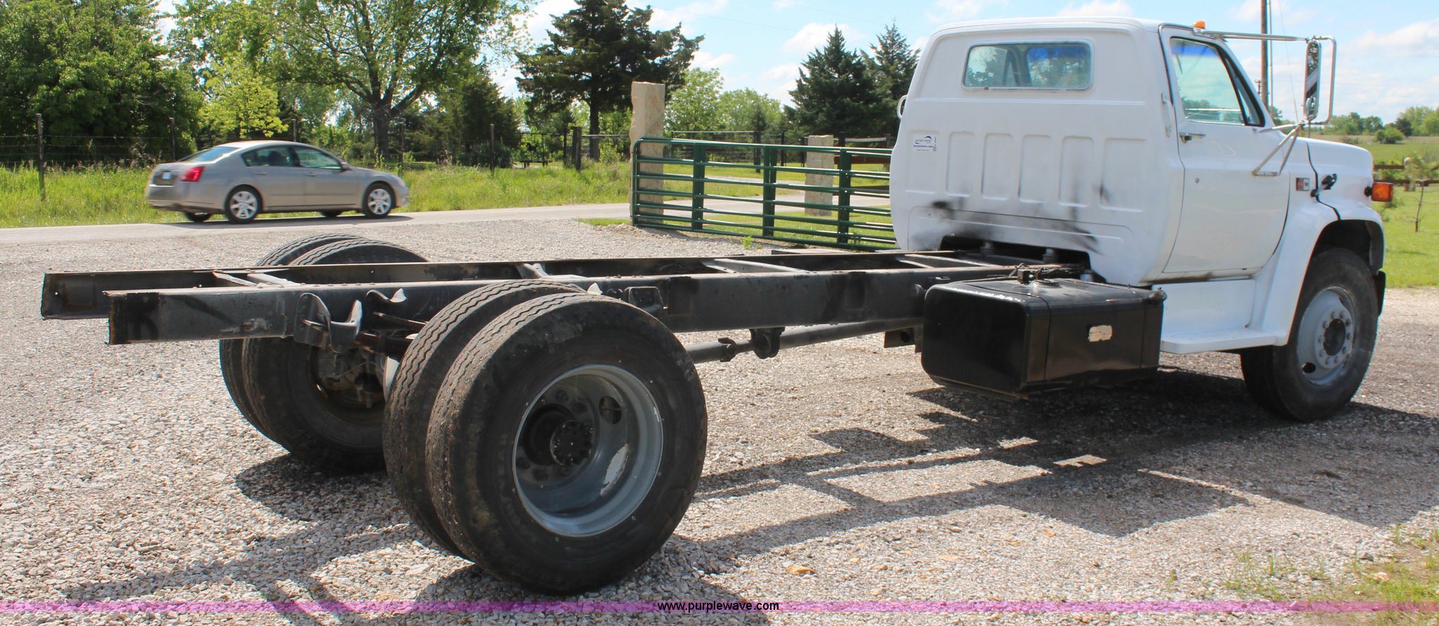 Purple Wave is selling a used Truck Chassis in Kansas. This item is a 1988 GMC TopKick truck cab and chassis with the following: 141,561 miles on odometer, 6.0L V8 gas engine, Five speed manual transmission, AC and heat, AC compressor is locked up, 16'L cab to frame, Spring suspension, Hydraulic brakes, 12R22.5 front tires, 11R22.5 rear tires, GVWR 23,900 lbs