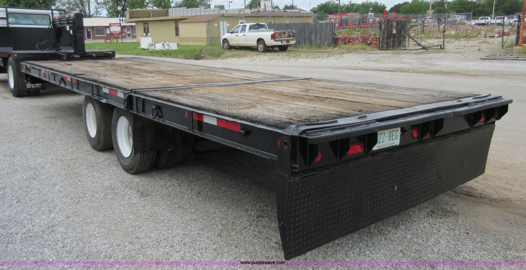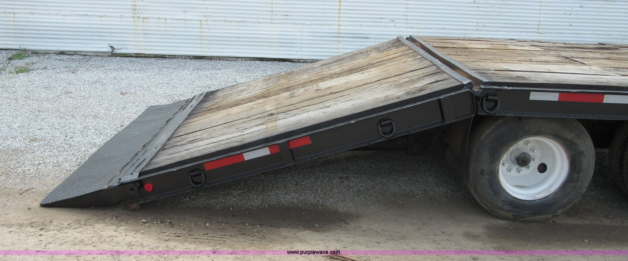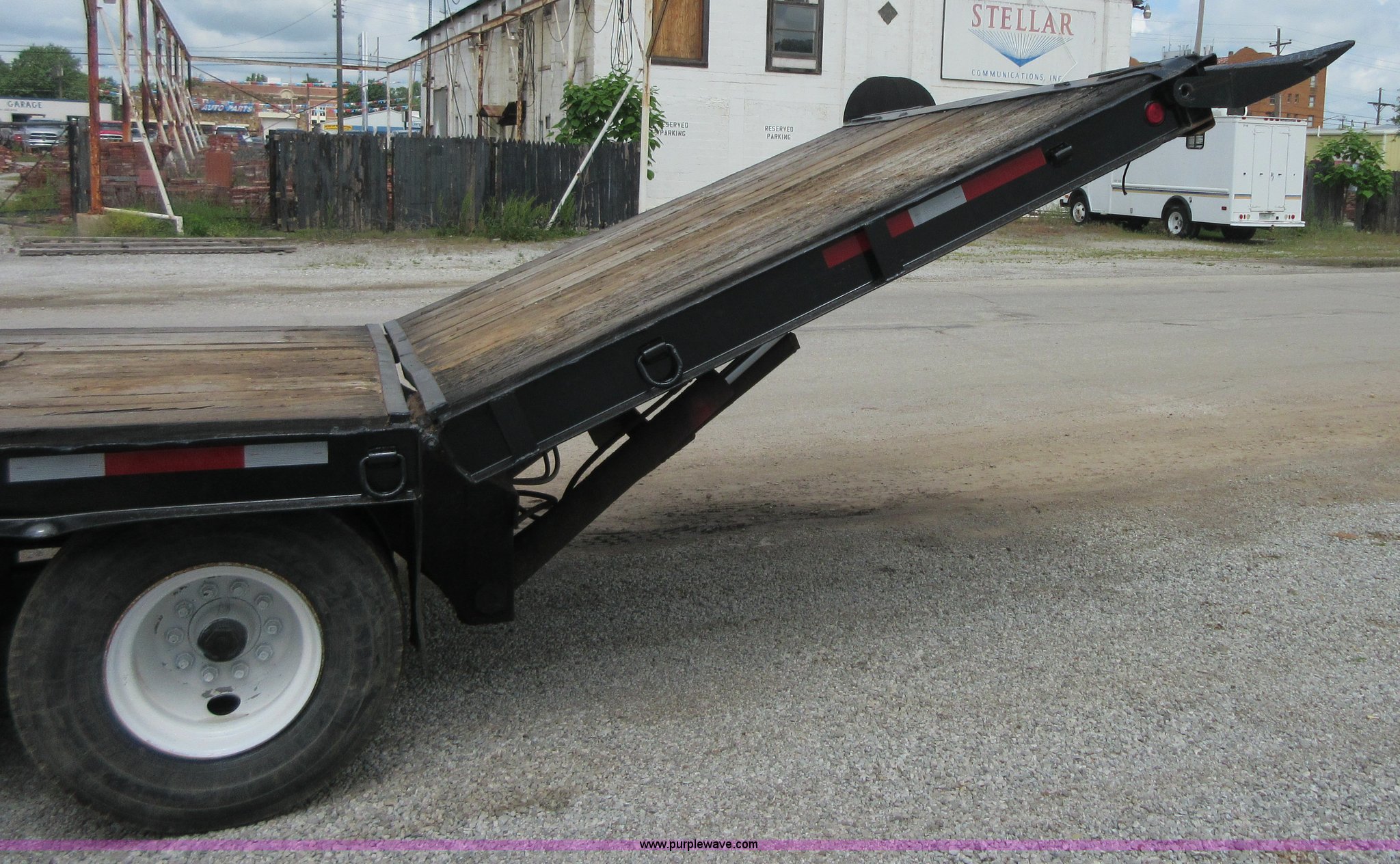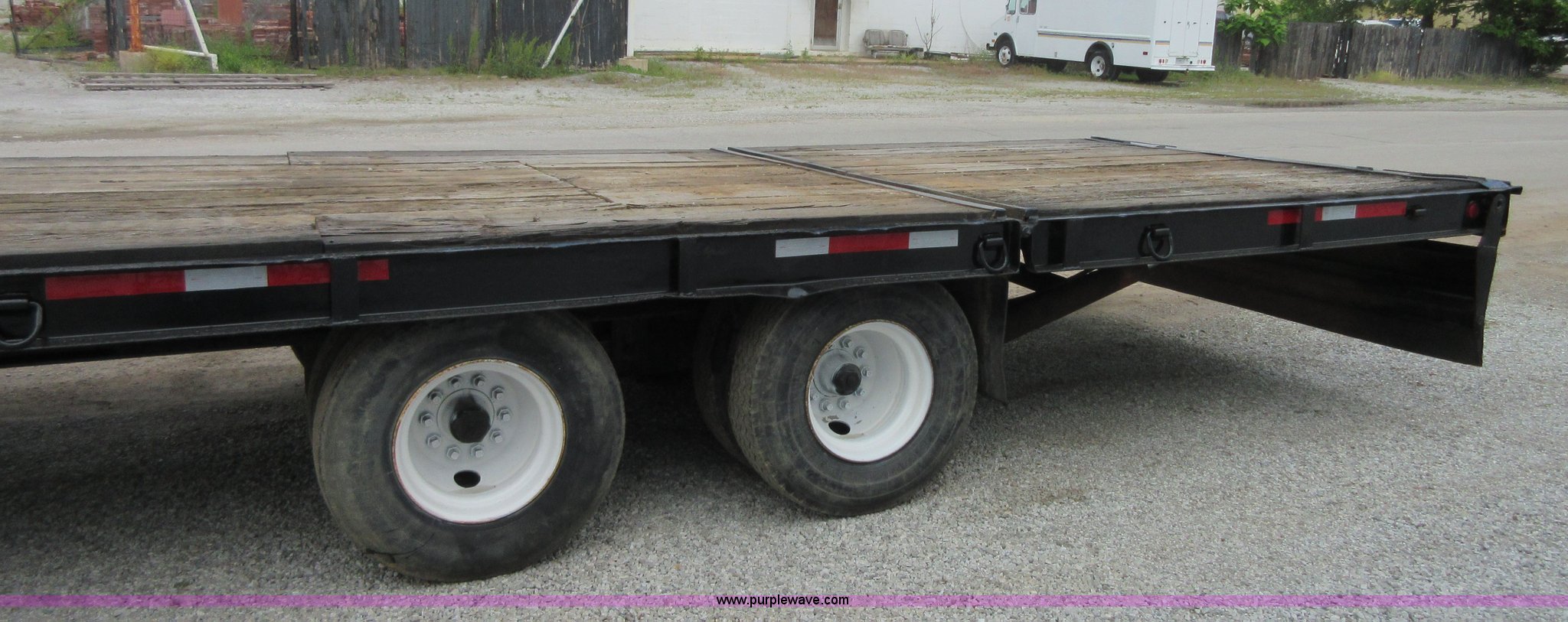 Purple Wave is selling a used Equip. Trailer in Oklahoma. This item is a 1994 Trail-Eze equipment trailer with the following: 28'L x 102"W, 8'L hydraulic folding dovetail, 2'L folding ramps, Wood deck, Hydraulic winch, D-ring tie downs, Spring suspension, Electric brakes, 10R17.5 tires, GVWR 39,120 lbs, GAWR 15,000 lbs per axle