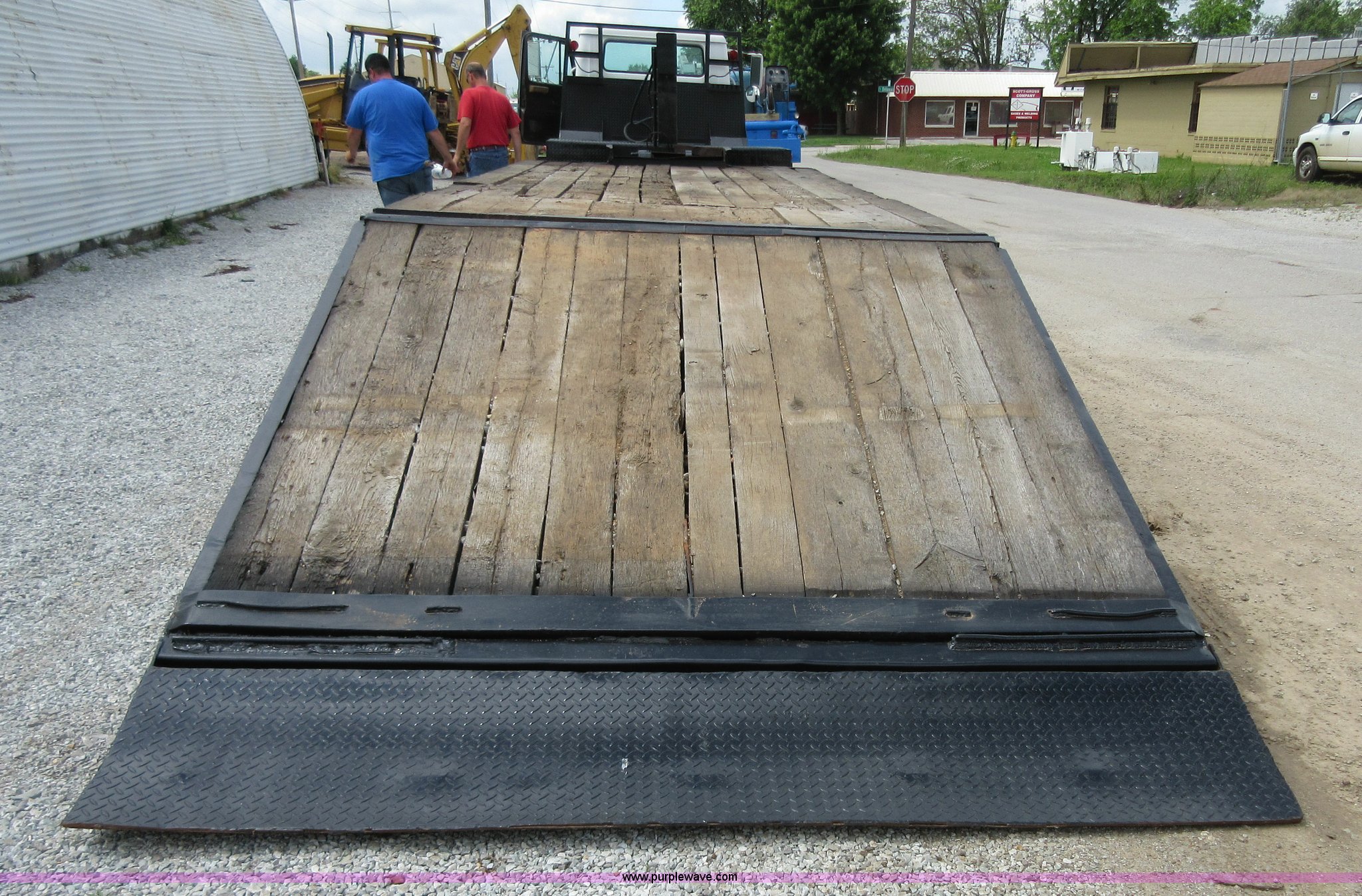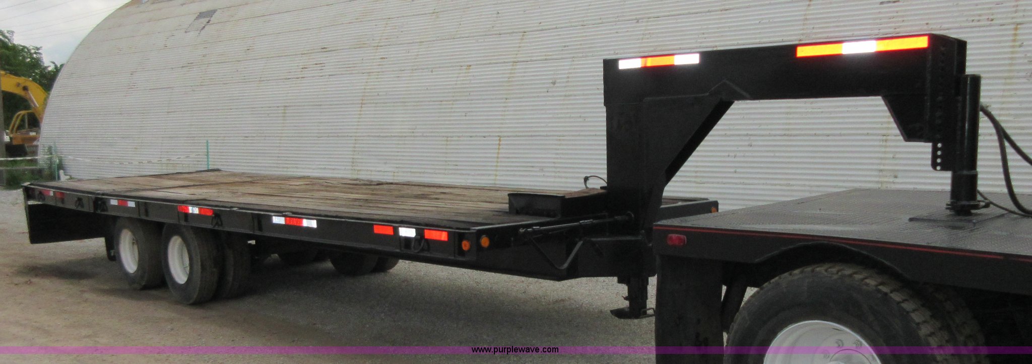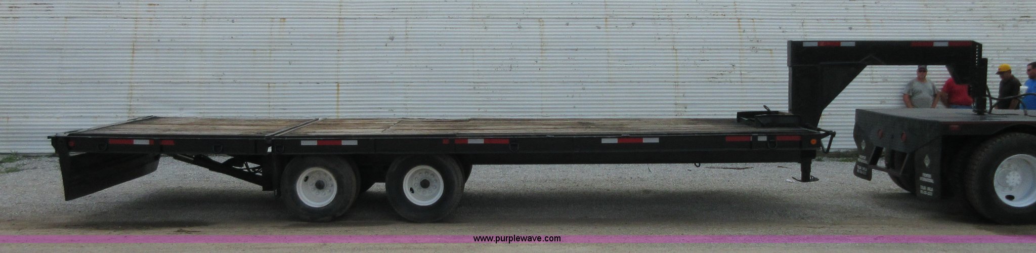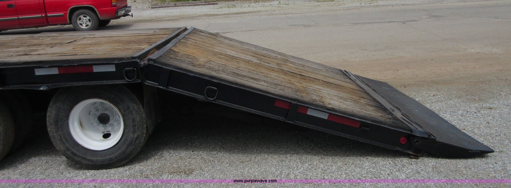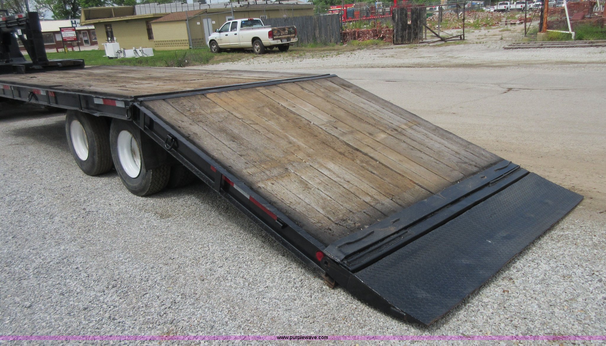 Purple Wave is selling a used Equip. Trailer in Oklahoma. This item is a 1994 Trail-Eze equipment trailer with the following: 28'L x 102"W, 8'L hydraulic folding dovetail, 2'L folding ramps, Wood deck, Hydraulic winch, D-ring tie downs, Spring suspension, Electric brakes, 10R17.5 tires, GVWR 39,120 lbs, GAWR 15,000 lbs per axle