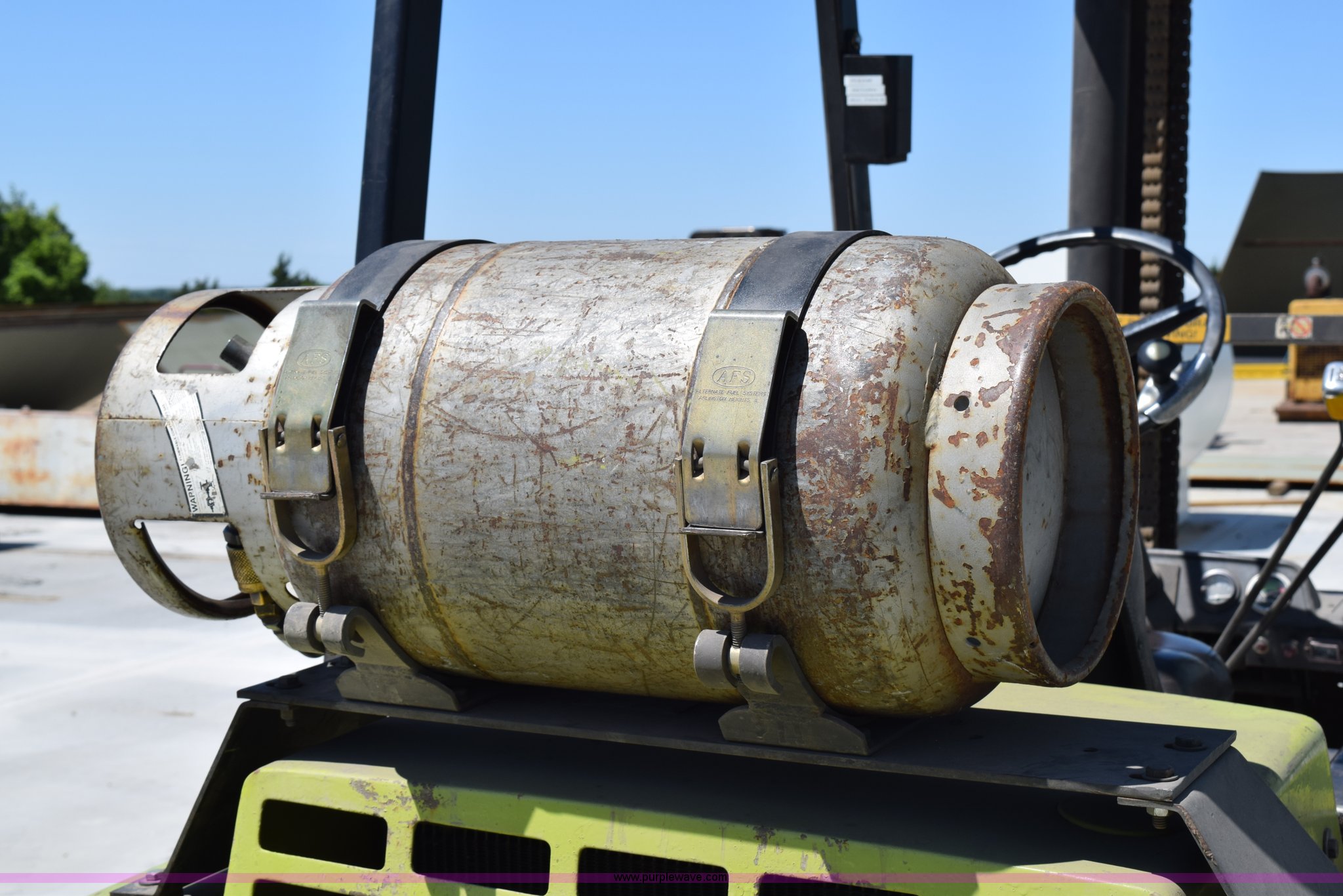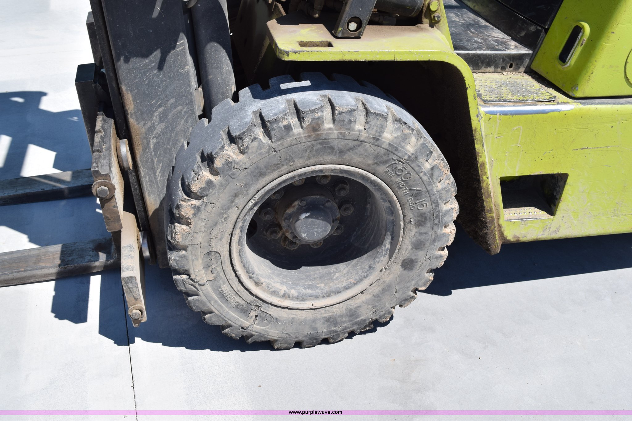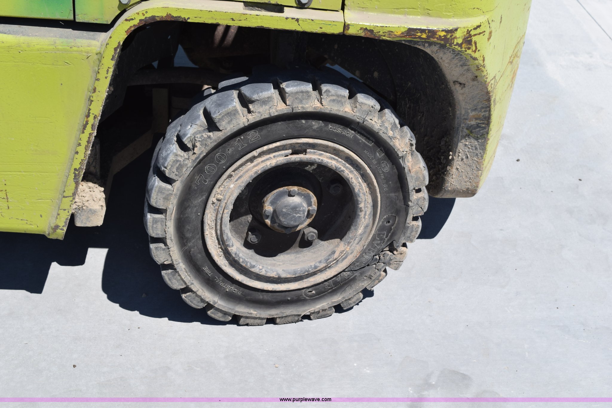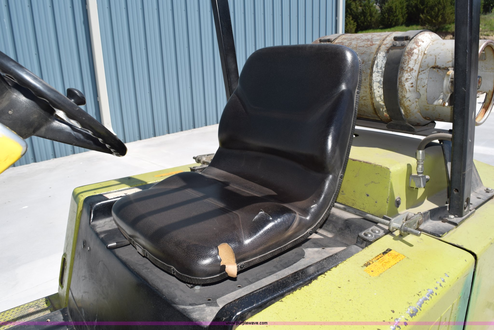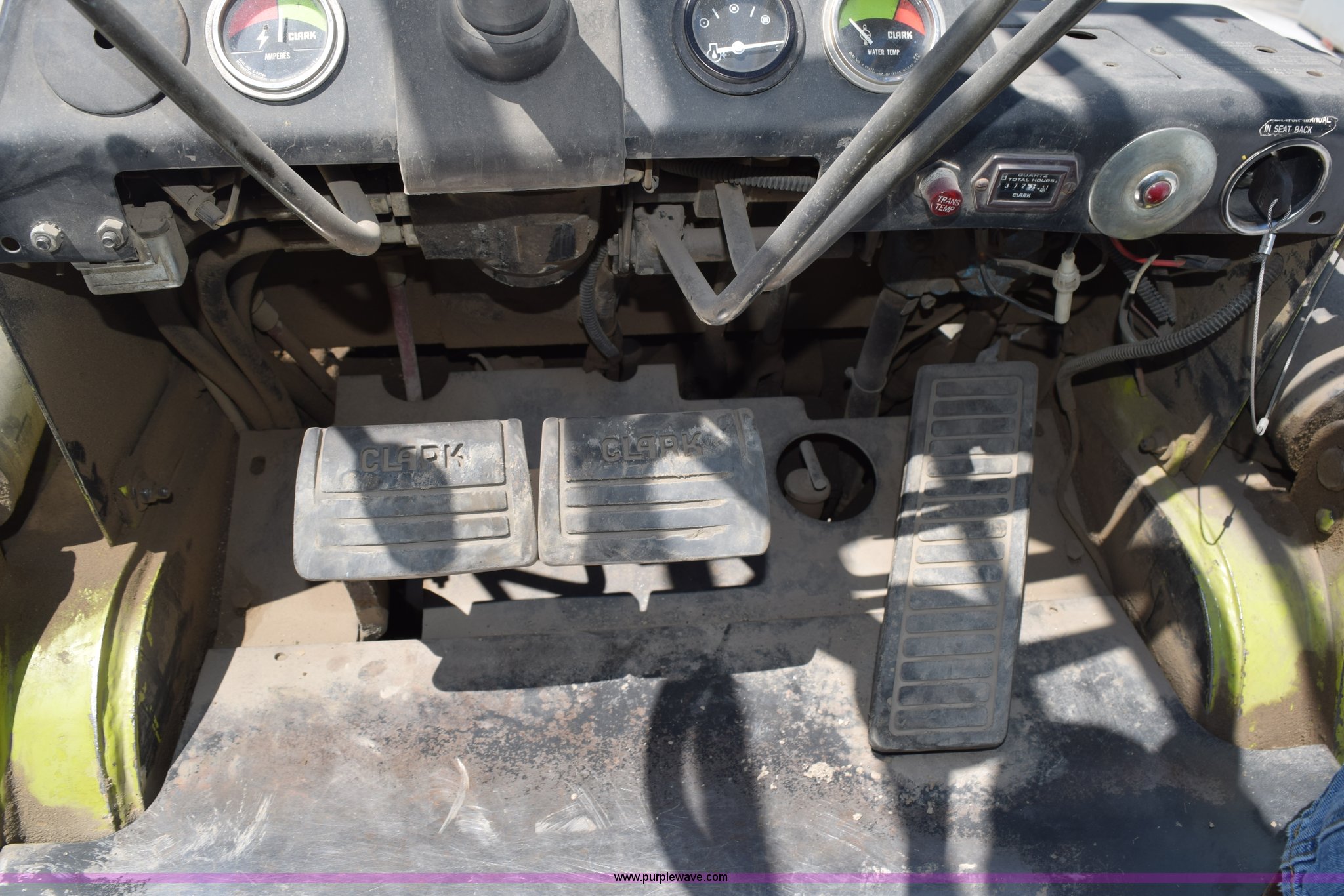Purple Wave is selling a used Cushion Tire or Pneumatic Forklift in Kansas. This item is a Clark C500-YS80 forklift with the following: 7,373 hours on meter, Four cylinder propane engine, Shuttle shift transmission, 8,000 lbs maximum lift capacity, 3.5'L forks, 7.50 x 15 solid front tires, 7.00-12 solid rear tires, Serial Y685-0215-9215K0F