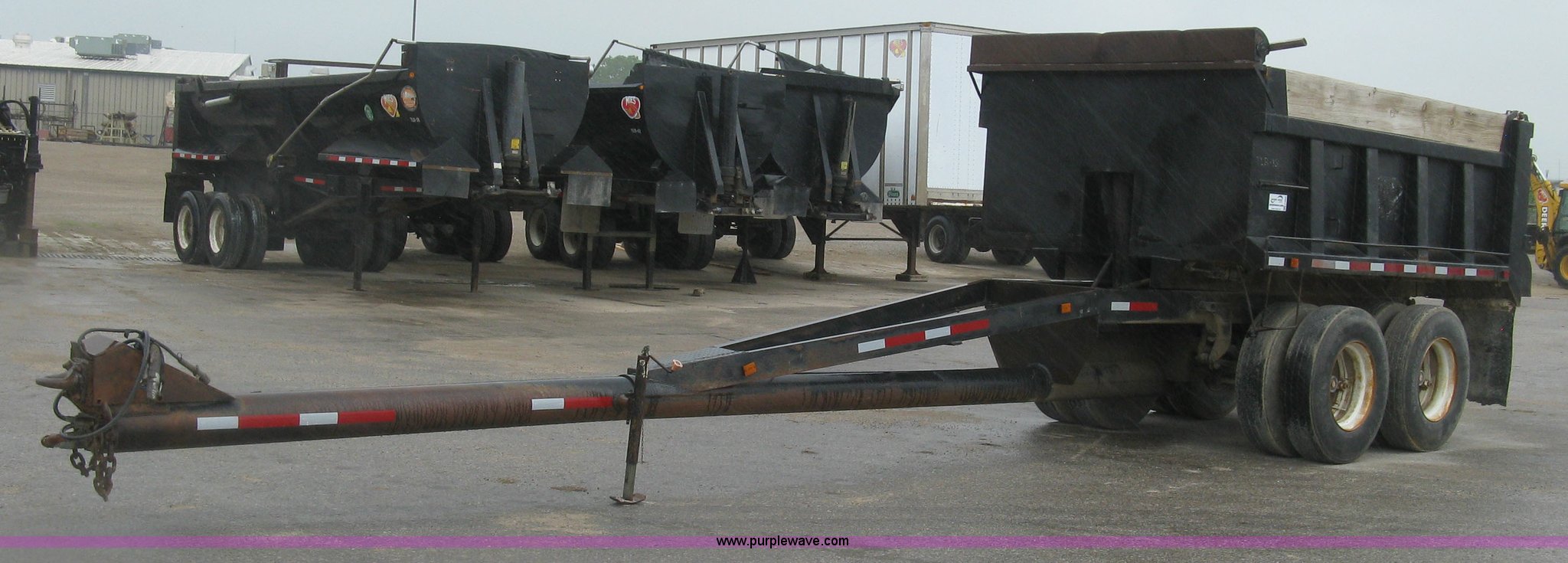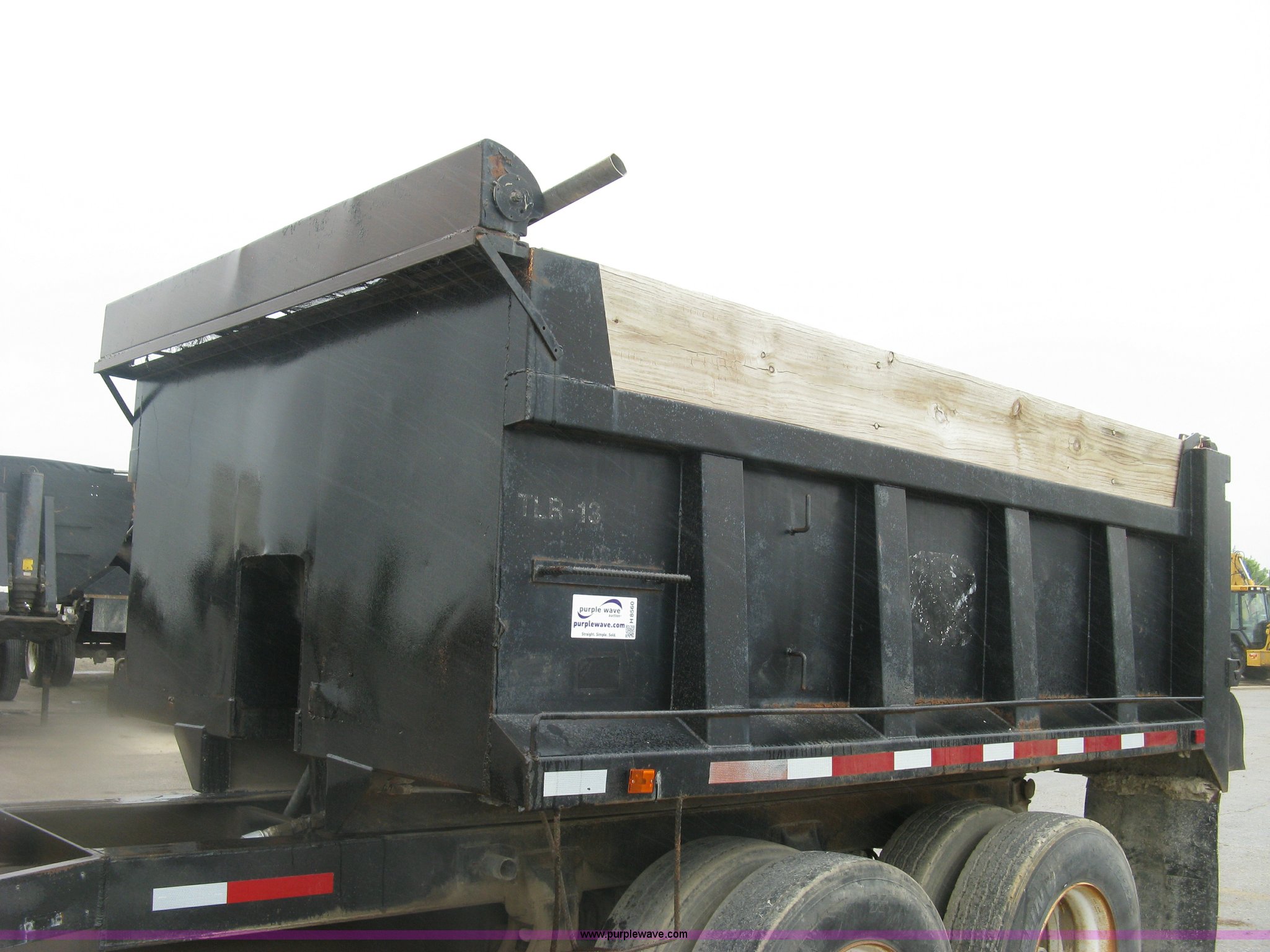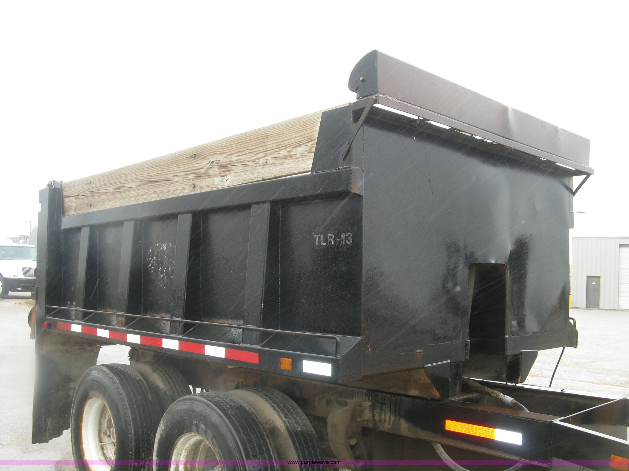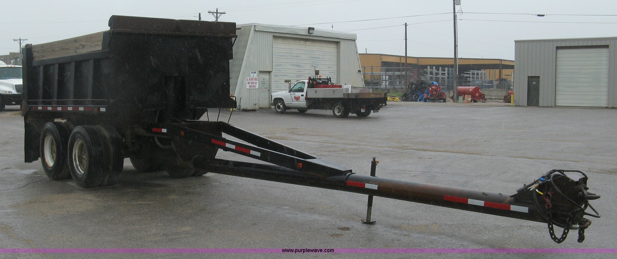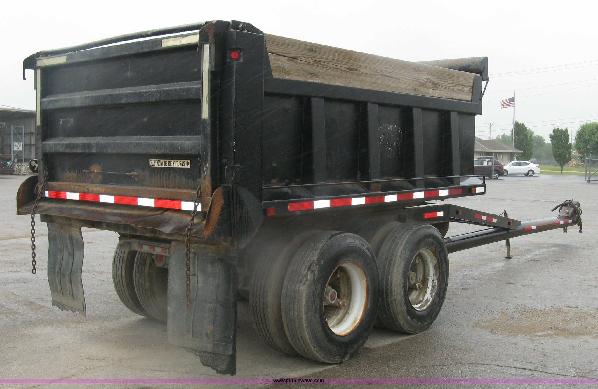 Purple Wave is selling a used End Dump Rock Trailer in Kansas. This item is a 1985 CP pup dump trailer with the following: 12'L x 94"W, Approximately 32"H sideboards, 12"H tip top boards, Roll-over tarp, Wet lines, Electric plug in, Single ram hoist, Pintle hitch, Oil bath hubs, Spring suspension, Air brakes, 11R22.5 tires, Unit# TLR-13