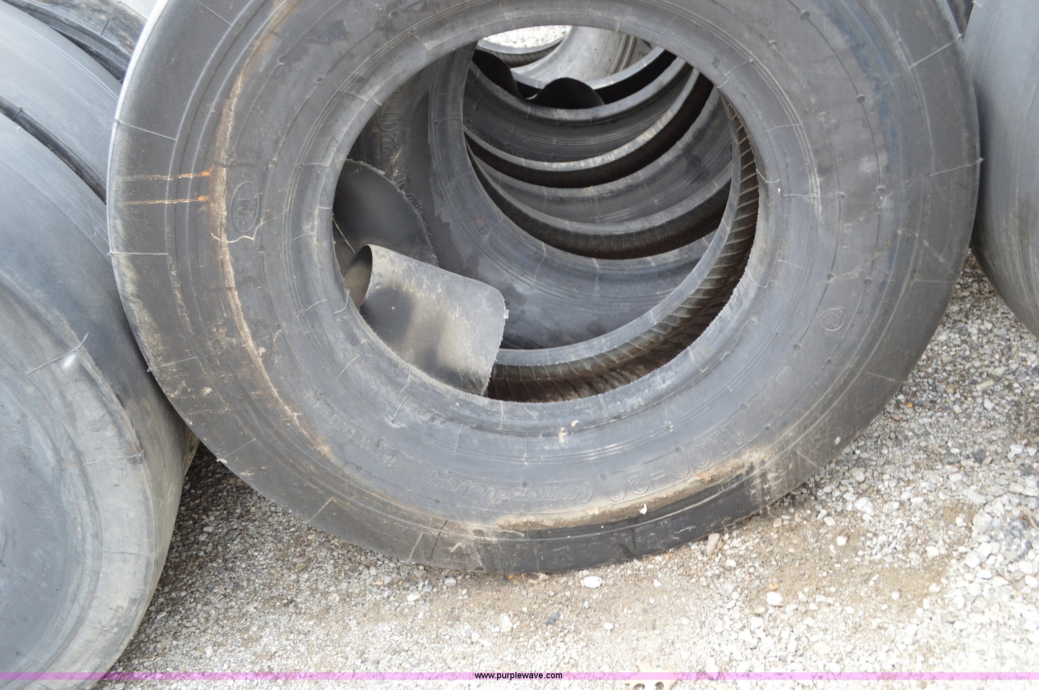 Purple Wave is selling a used Industrial Tires or Tracks in Missouri. This item is a (9) pneumatic roller tires with the following: 11-20, Six ply, Unused