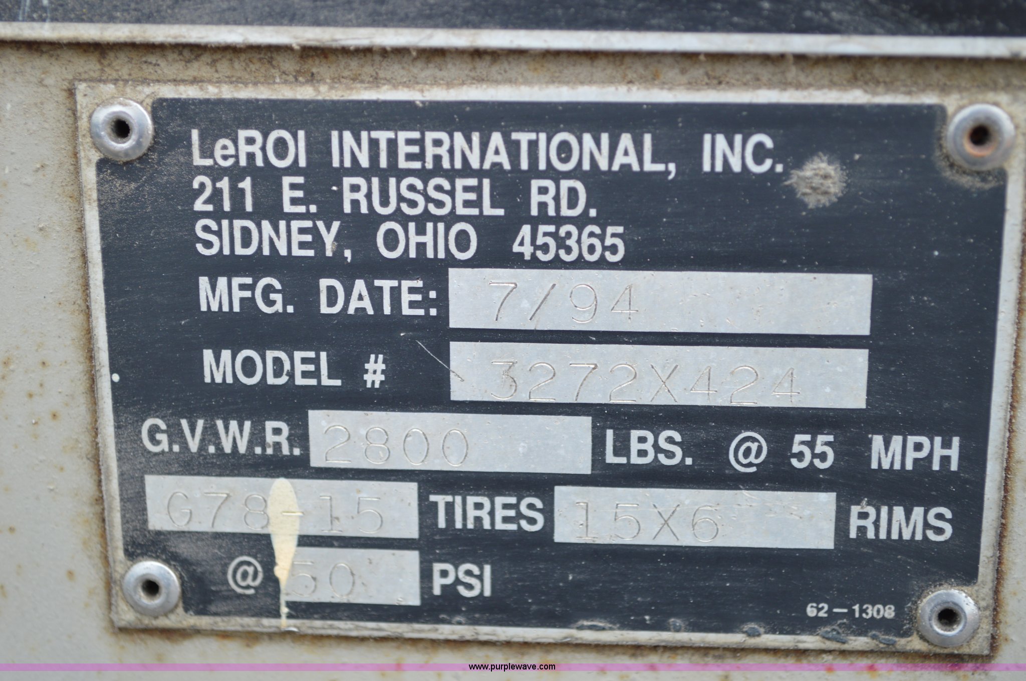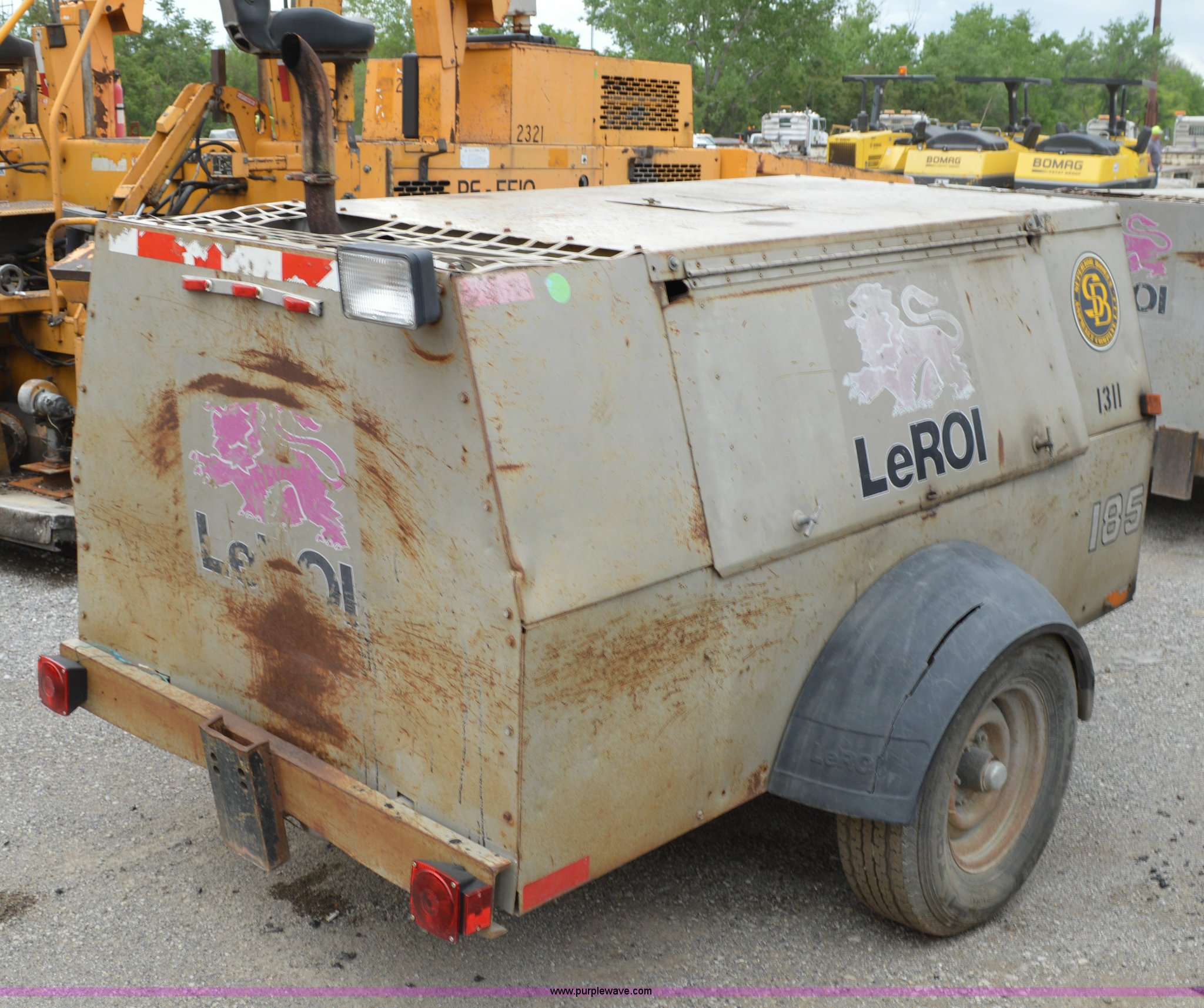Purple Wave is selling a used Air Compressor in Missouri. This item is a Leroi 185 air compressor with the following: 4,325 hours on meter, John Deere four cylinder diesel engine, Serial CD4039D170258, Jack stand, Pintle hitch, Unit# 1311