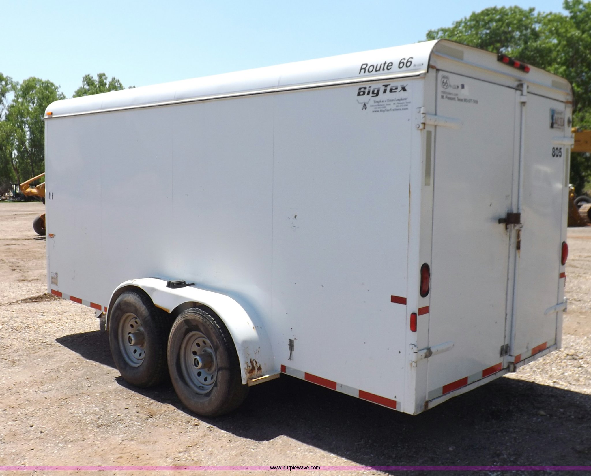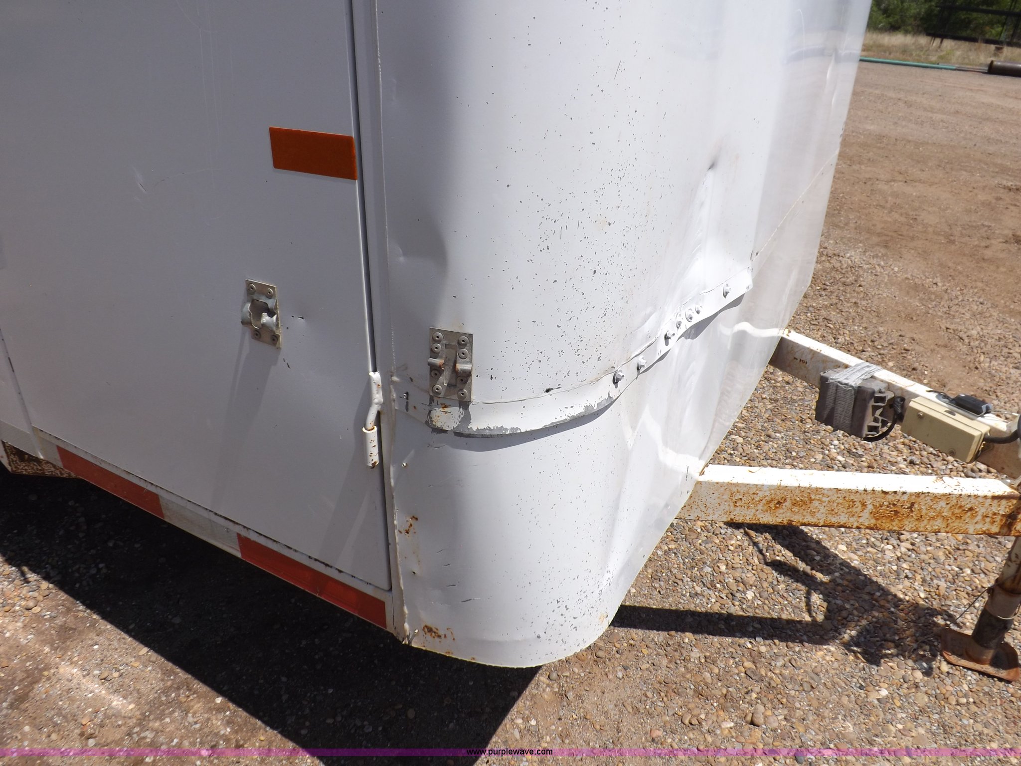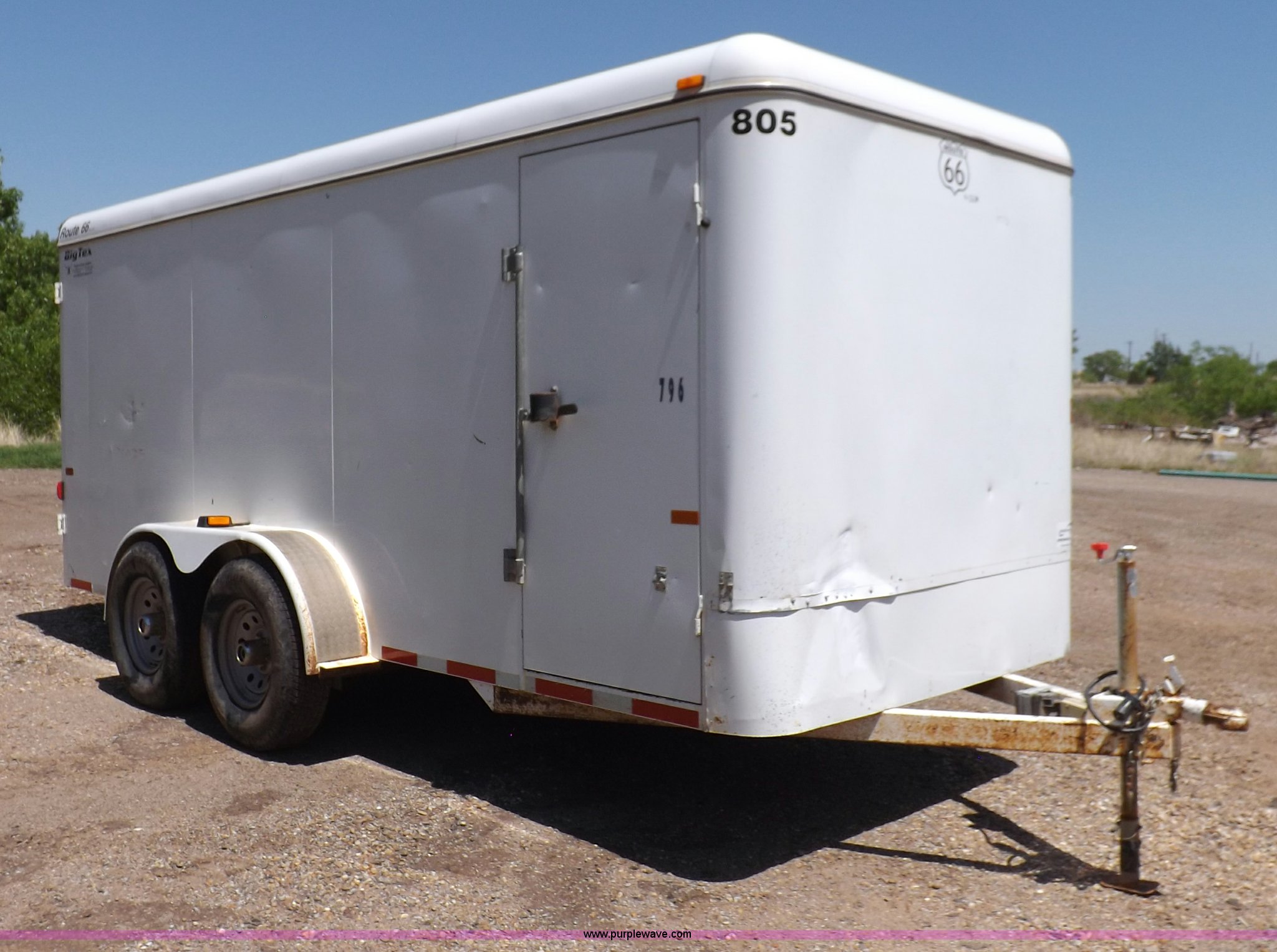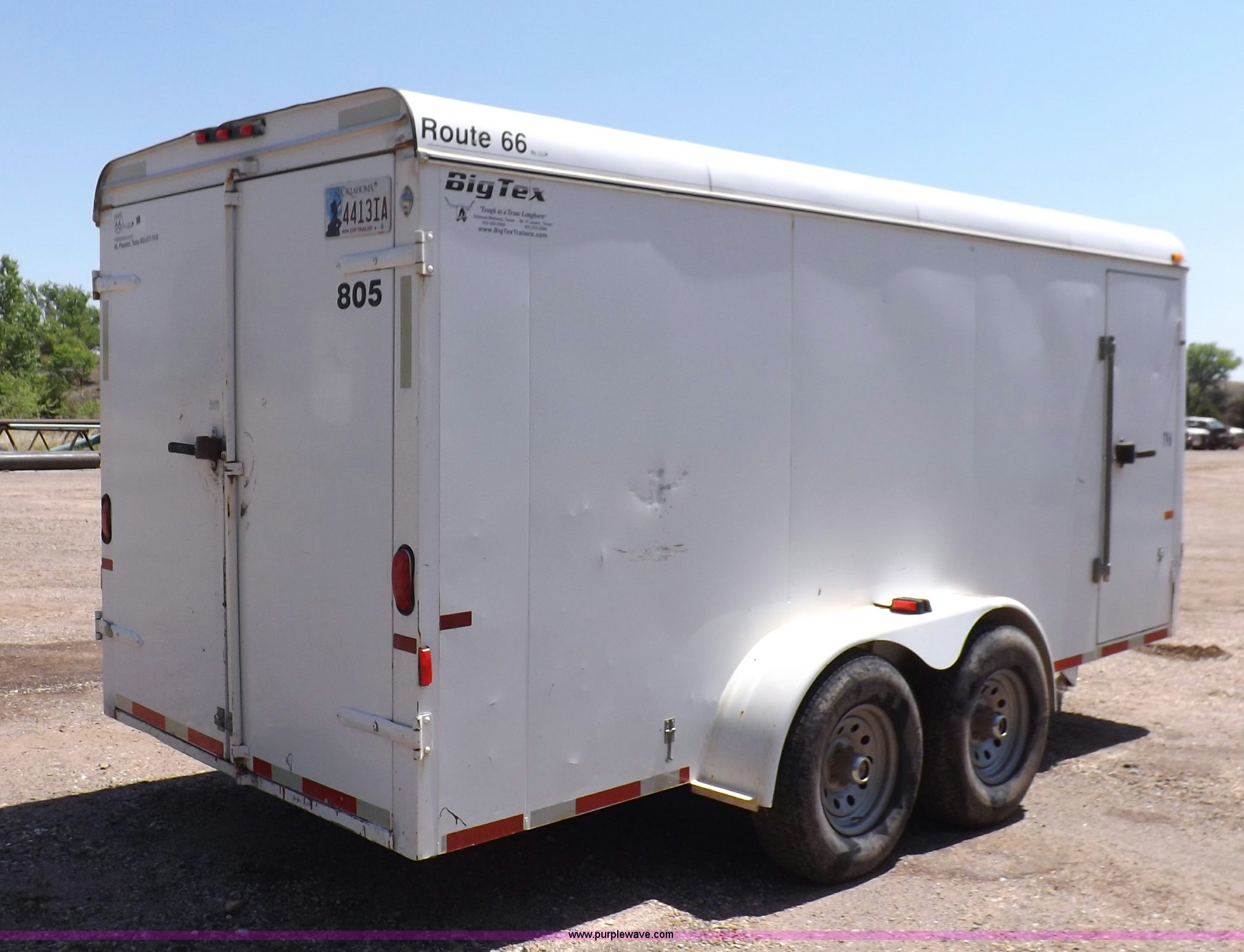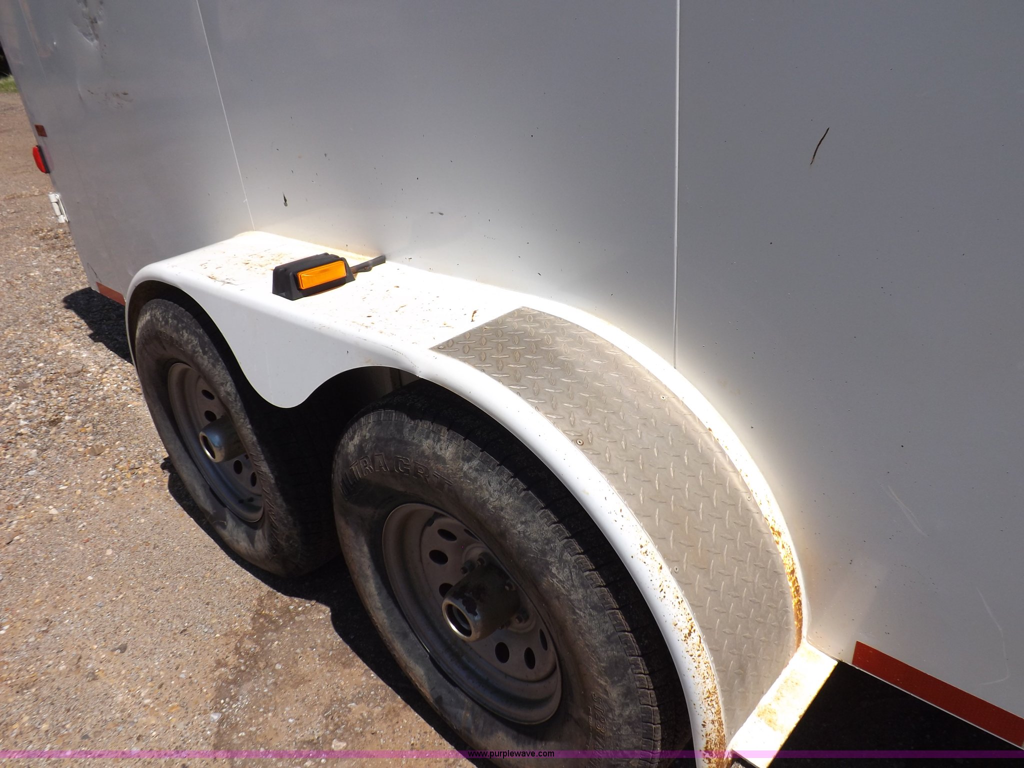 Purple Wave is selling a used Car or Utility Trailer in Oklahoma. This item is a 2007 CM enclosed trailer with the following: 16'4"L x 6'8"W x 6'8"H, 3'L tongue, Side entry door, Dual rear swing-out doors, Wood deck, Interior shelving, Bull dog jack stand, 2 5/16" ball hitch, Safety break-away system, Seven pin trailer wiring, 235/85R16 tires, GVWR 10,400 lbs, Sheet metal damaged, Lamp damaged