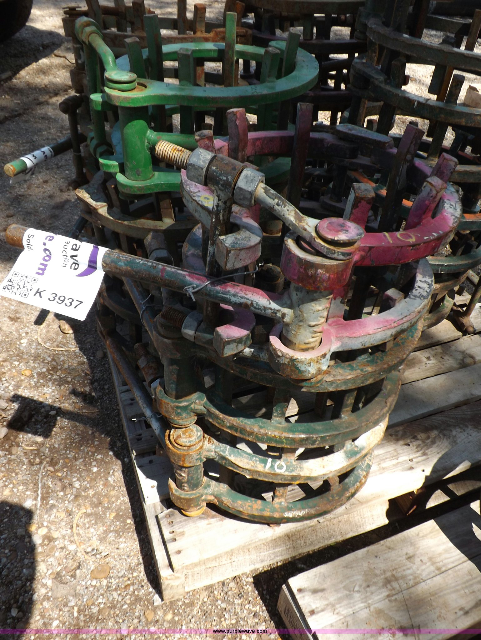 Purple Wave is selling a used Tools in Oklahoma. This item is a (6) pipe line up clamps with the following: 10"